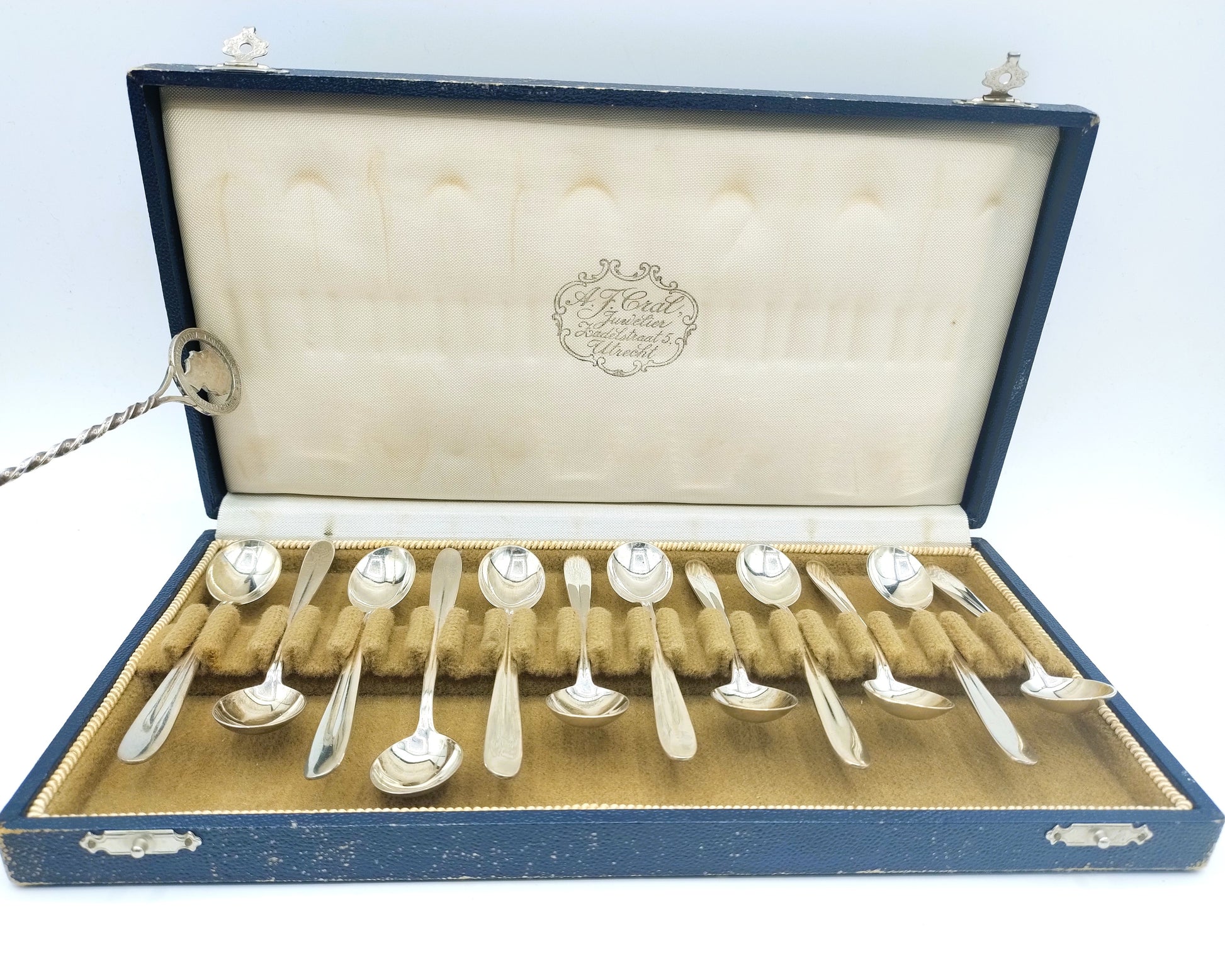 12 silberne Teelöffel, hergestellt von der Kon. Gerritsen und van Kempen aus Zeist. Aktiv zwischen 1924 und 1960.