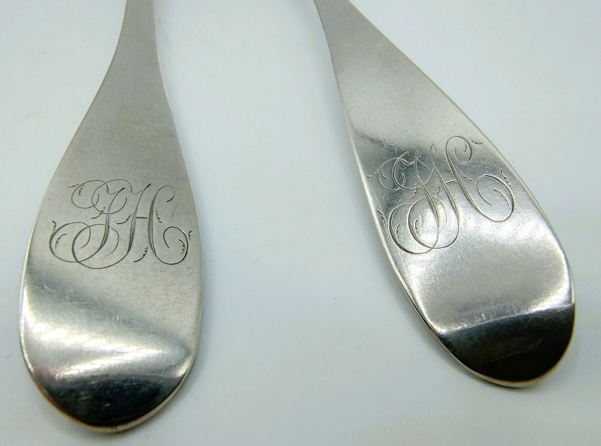 Die Löffel sind mit einem Monogramm JH versehen.