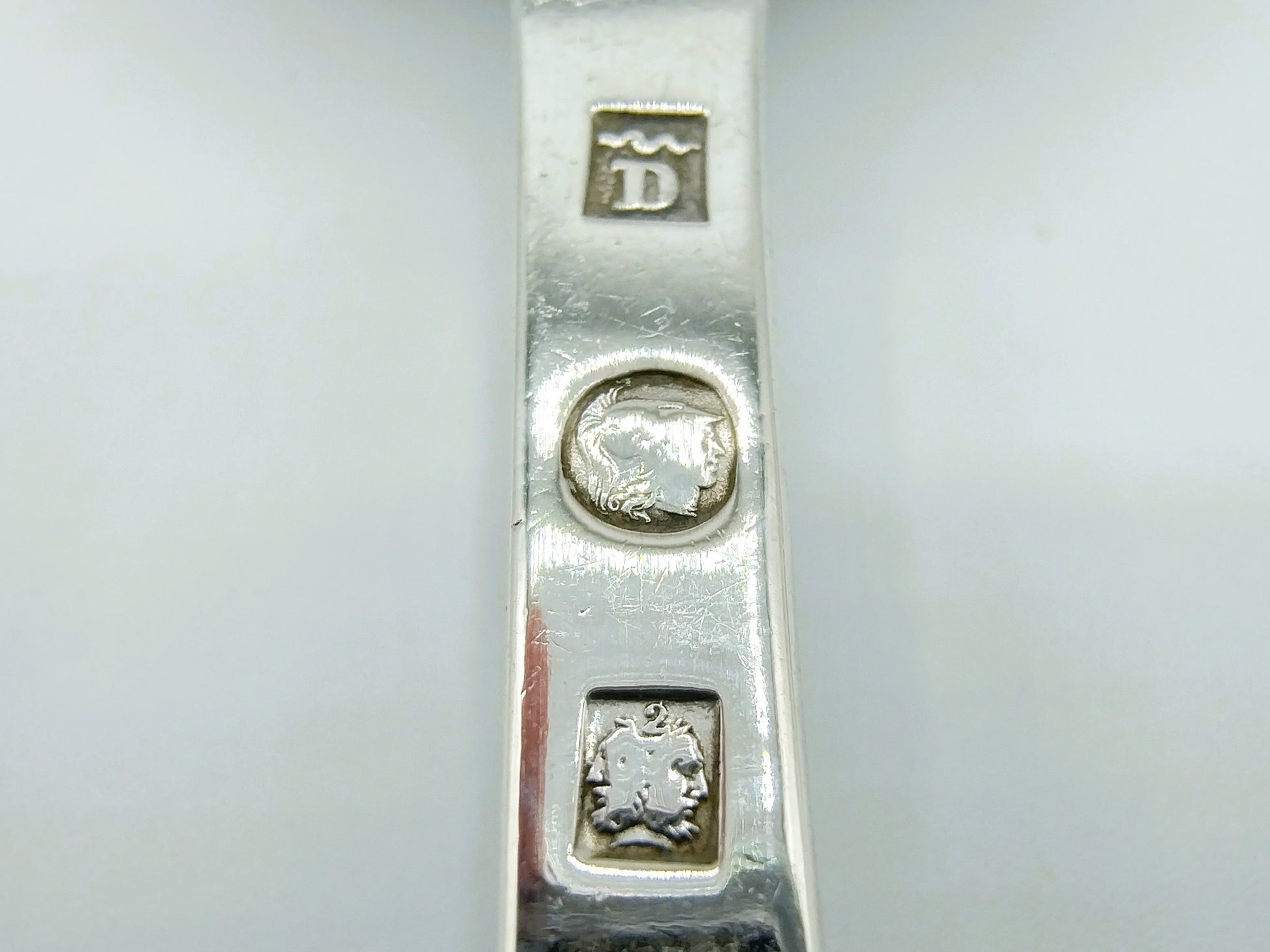 Die Löffel sind mit der Meistermarke D unter einer Schlange, der Marke 2. Qualität und dem Kopf der Minerva gekennzeichnet.