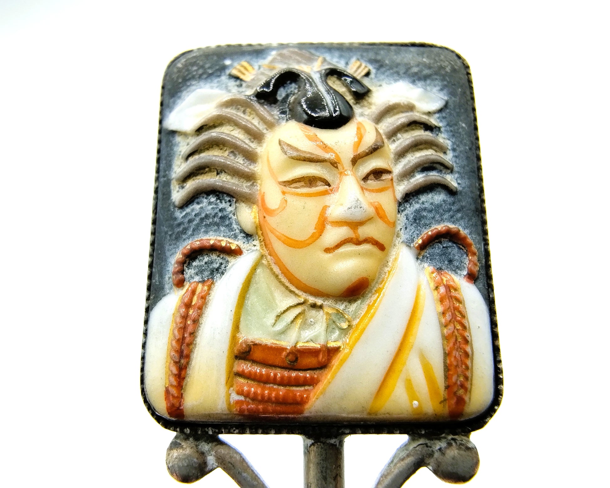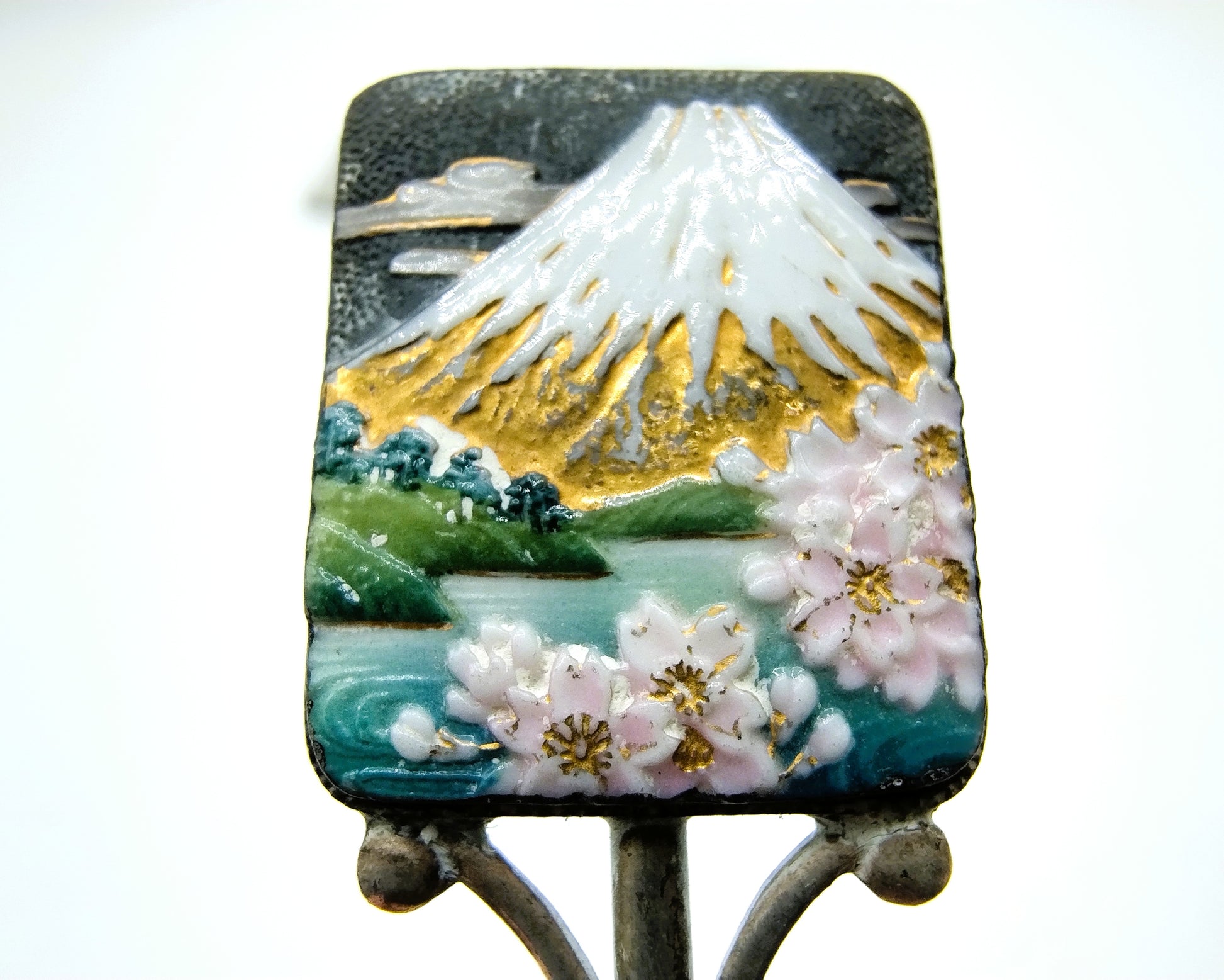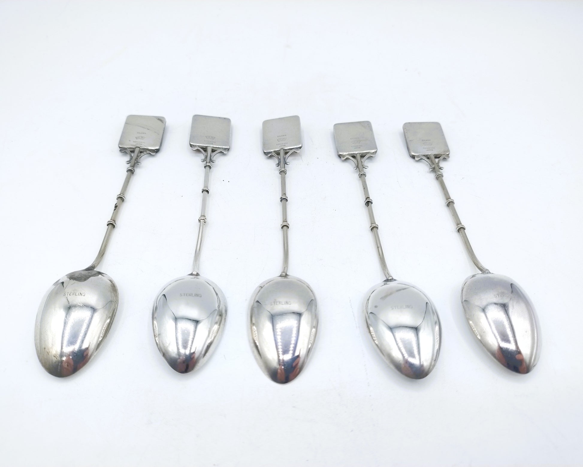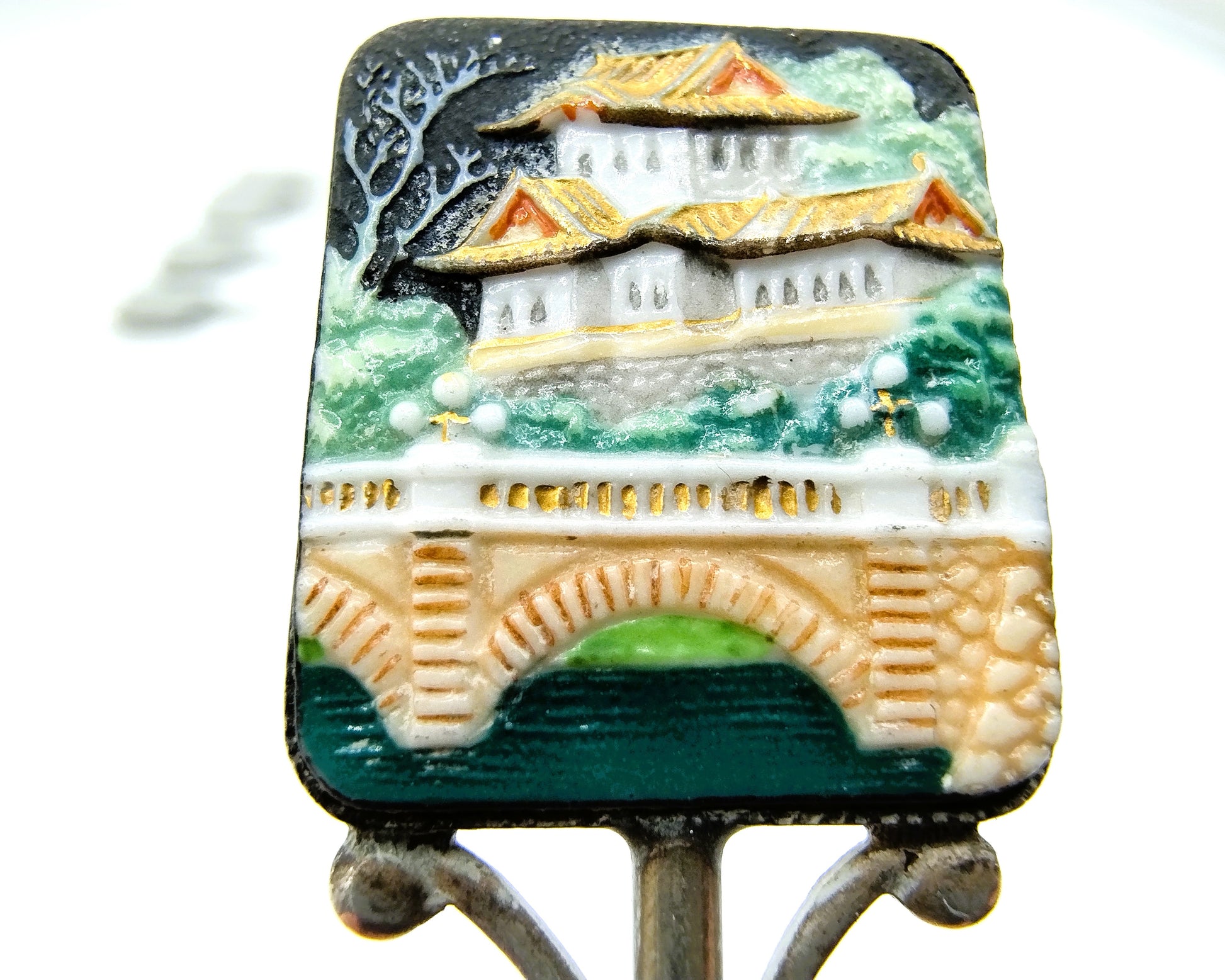 5 Vintage-Löffel mit Porzellanfliesen unter anderem vom Berg Fuji.
