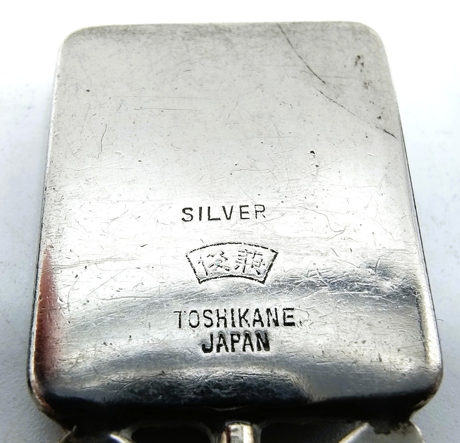 Das Unternehmen Toshikane aus Tokio, Japan, stellte von etwa 1930 bis 1960 Porzellanschmuck und mit Silber ummantelte Objekte her.