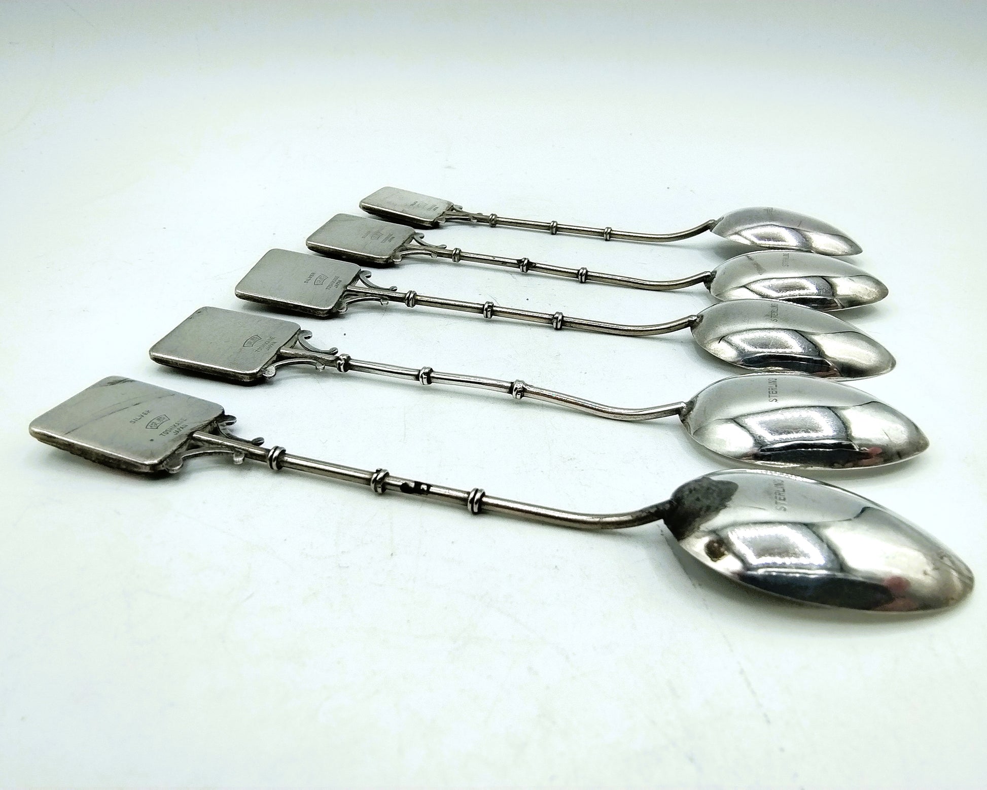 Die Löffel sind mit einem fächerförmigen Banner mit dem Toshikane-Logo in japanischer Schrift, Japan und Sterling für Silber der 1. Klasse gepunzt.