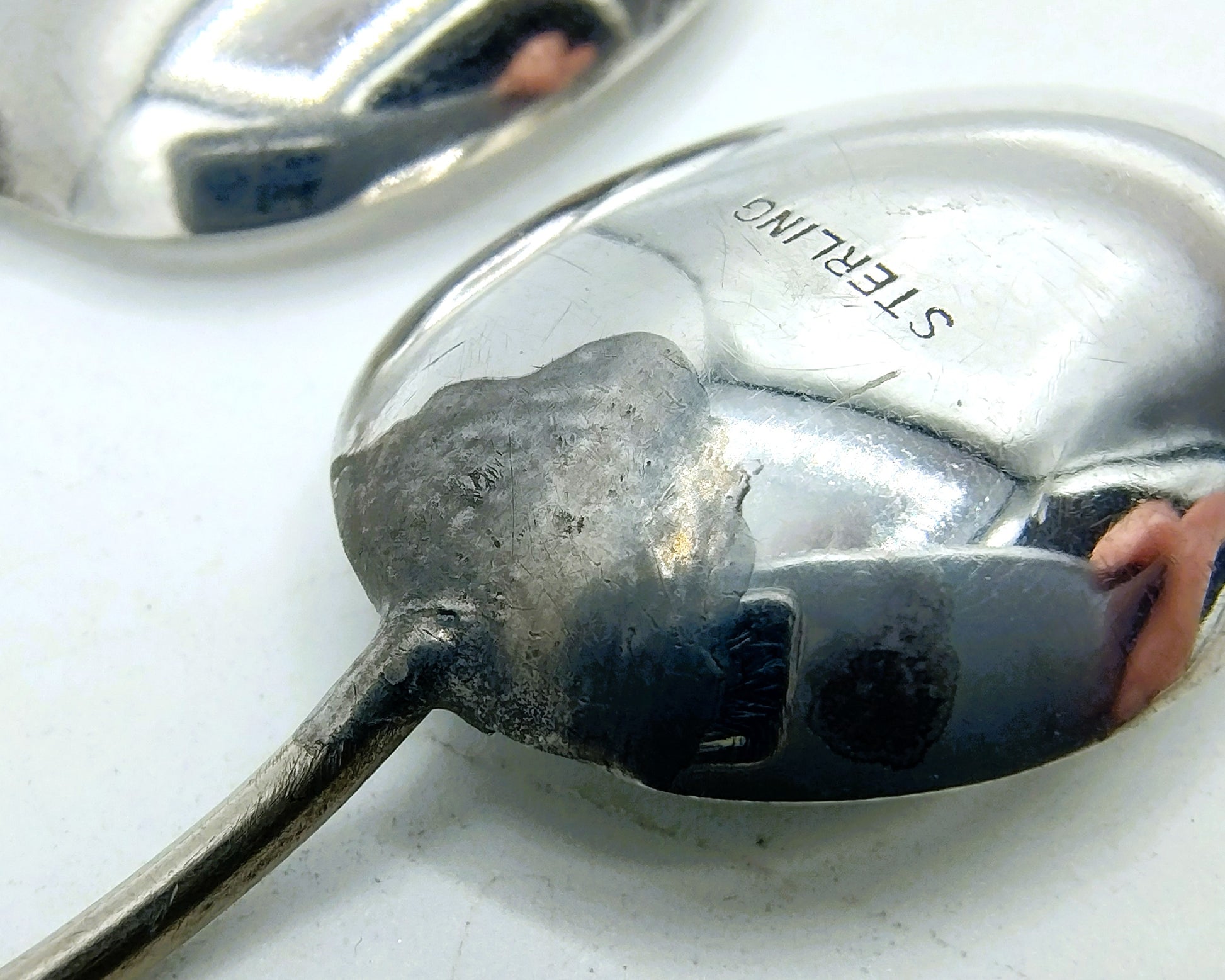 1 Löffel weist Lötspuren an der Griffbefestigung auf. Siehe auch das Foto.