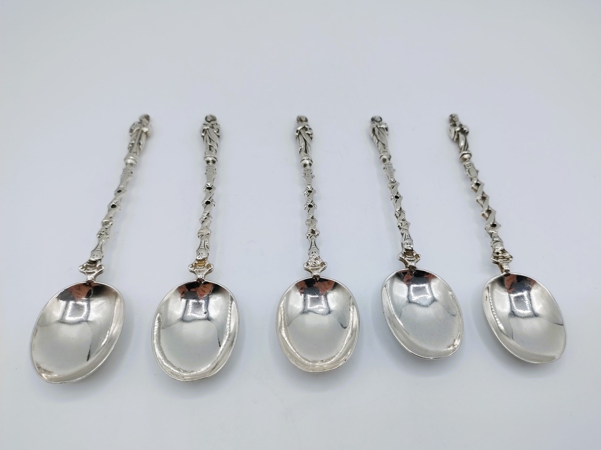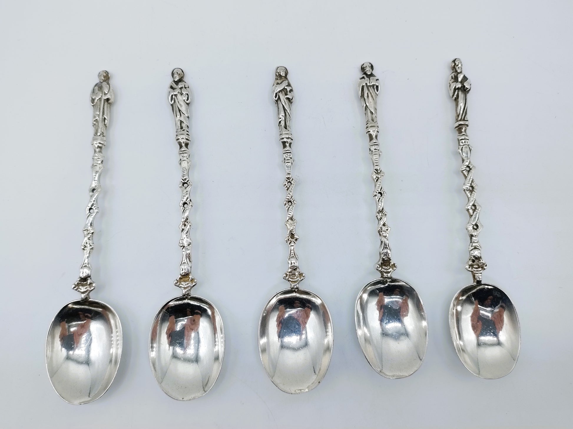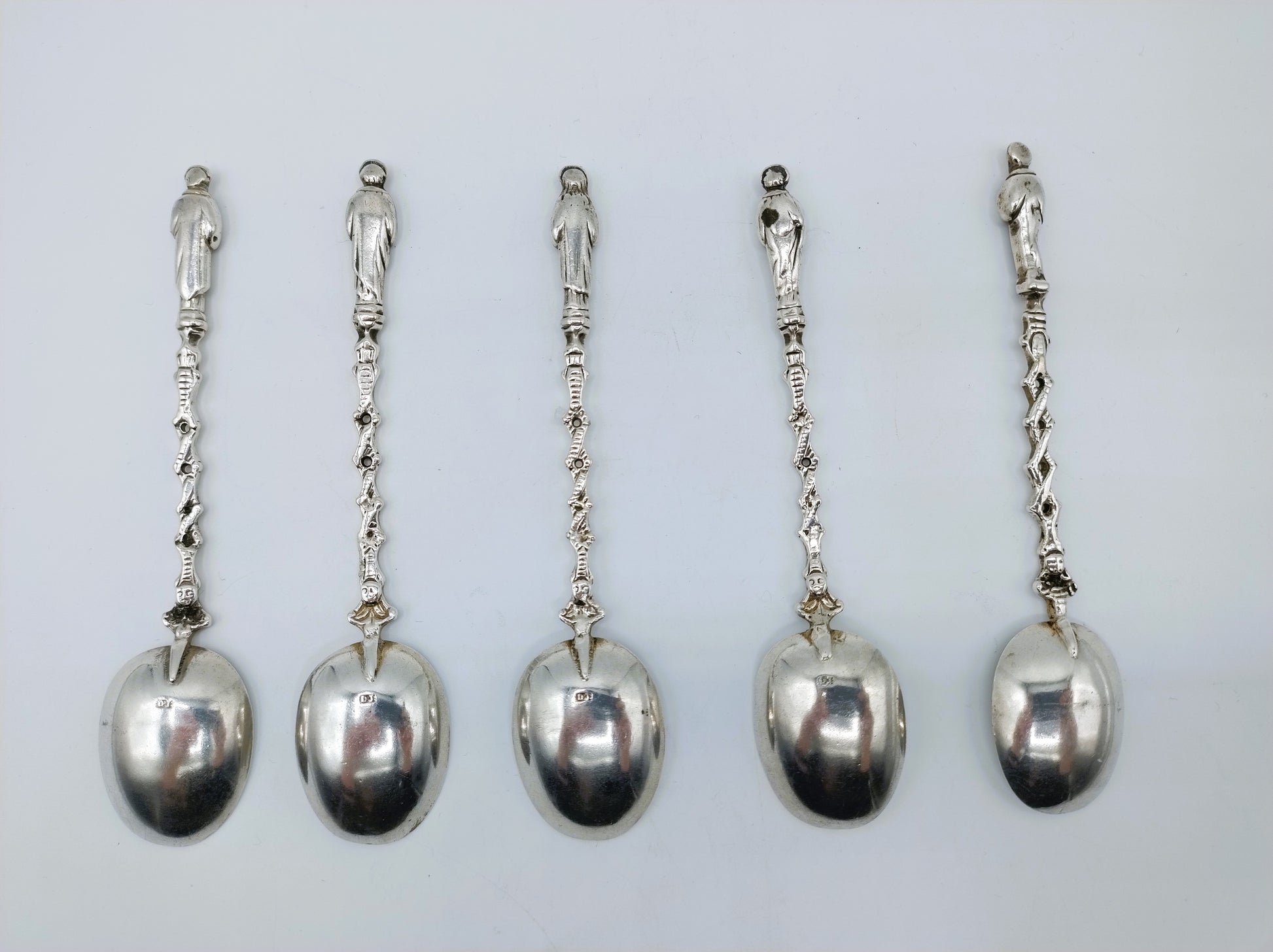 5 silberne Apostellöffel, D. de Jong Wzn, Groningen, 20. Jahrhundert