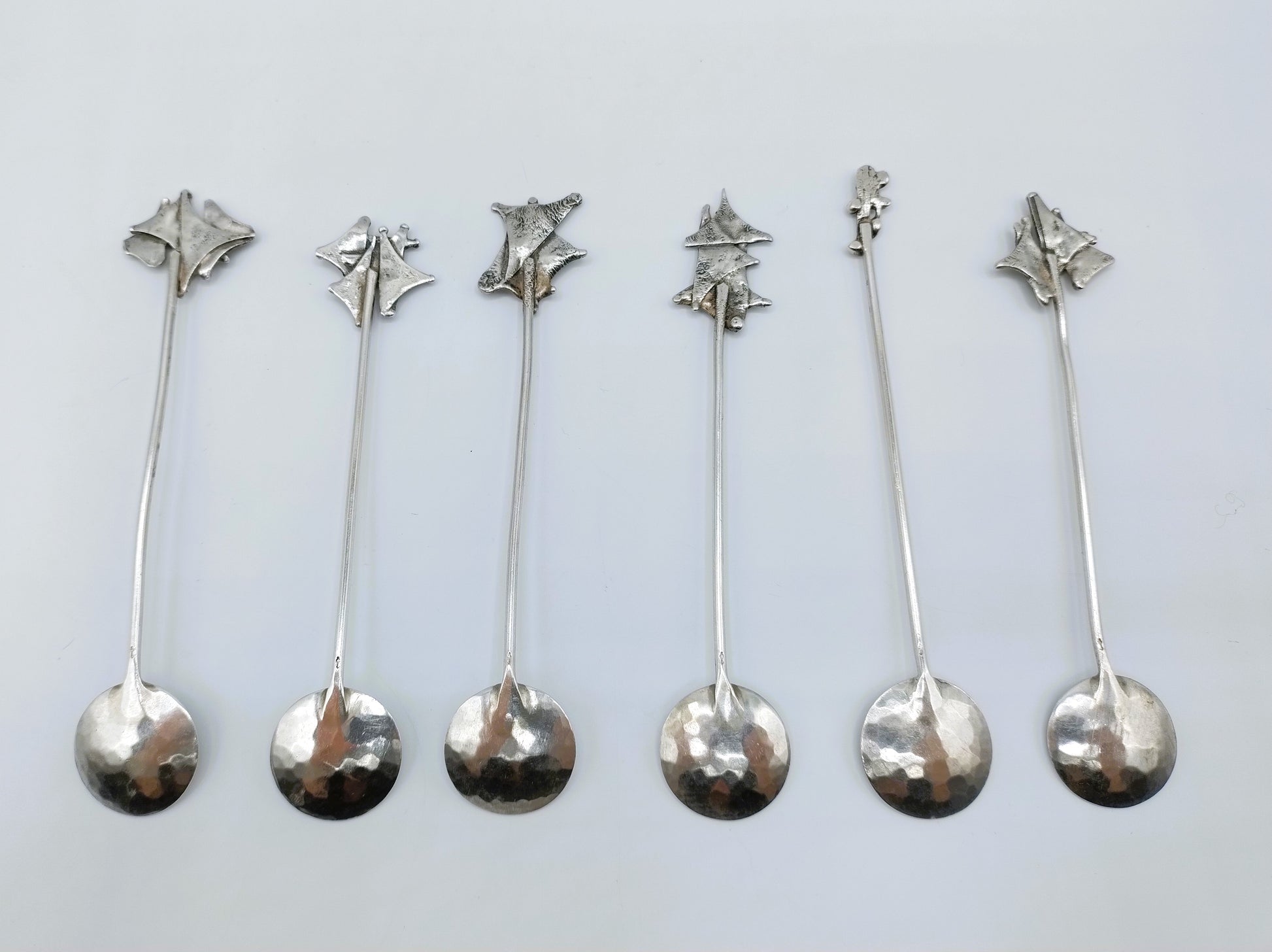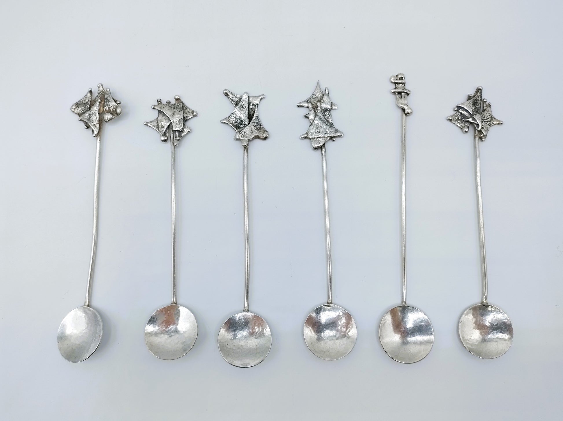Set mit 6 silbernen Design-Teelöffeln, hergestellt vom Silberschmied Hendrik van der Ruimte aus Joure, der von 1920 bis 1961 arbeitete.