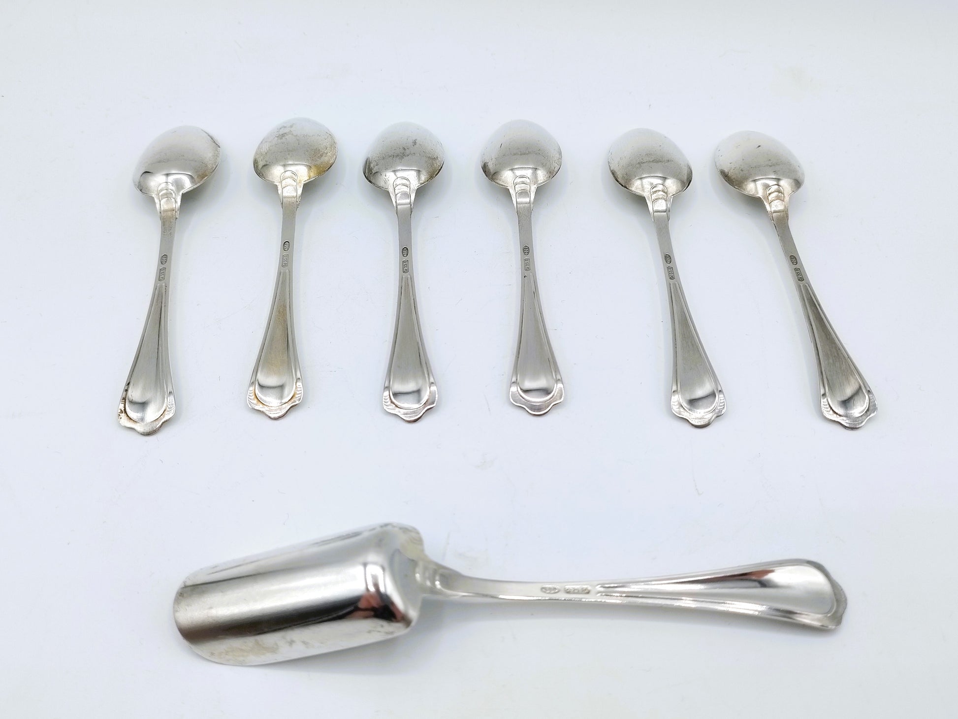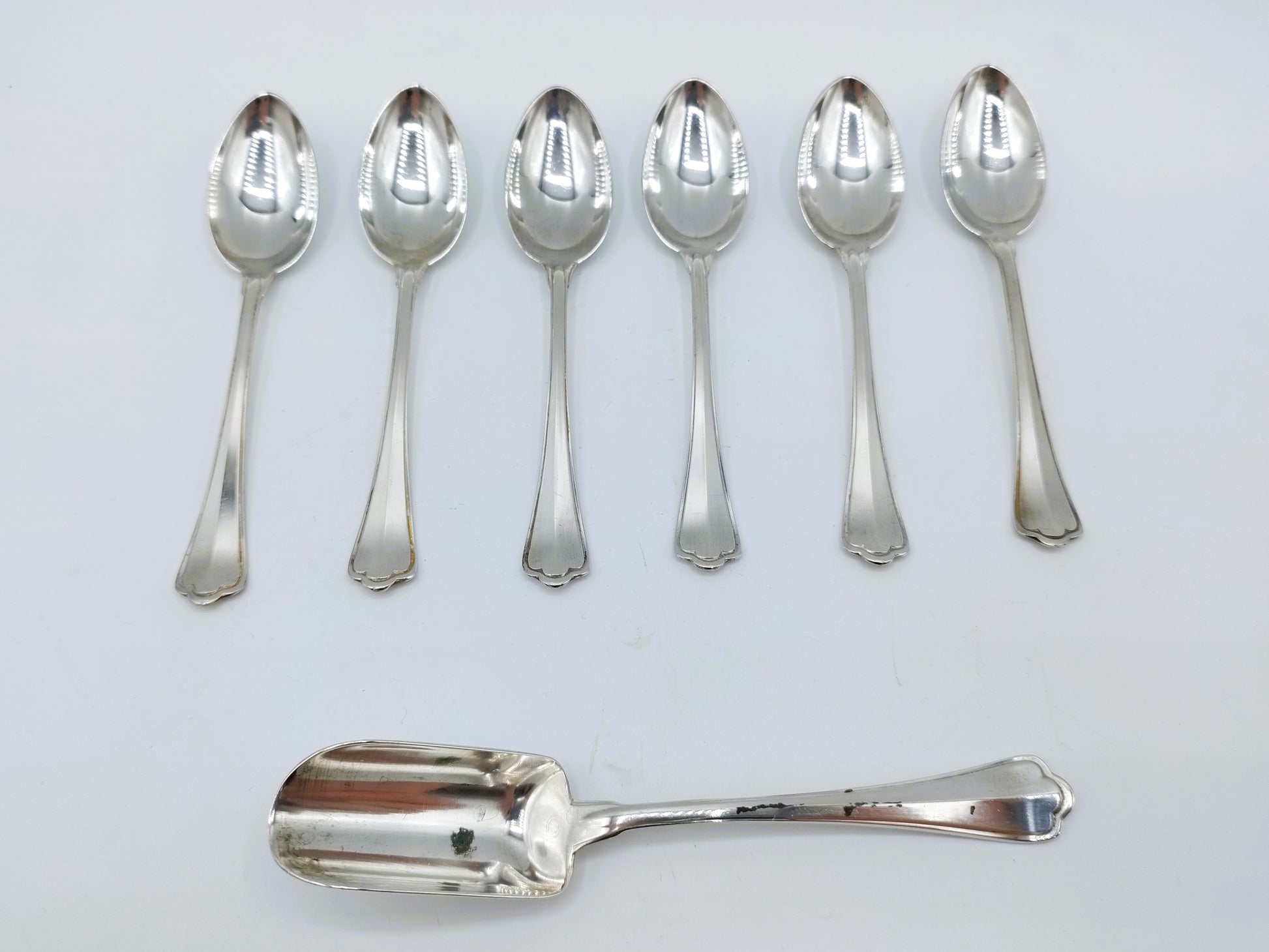 6 silberne Teelöffel und ein Zuckerlöffel aus Italien.