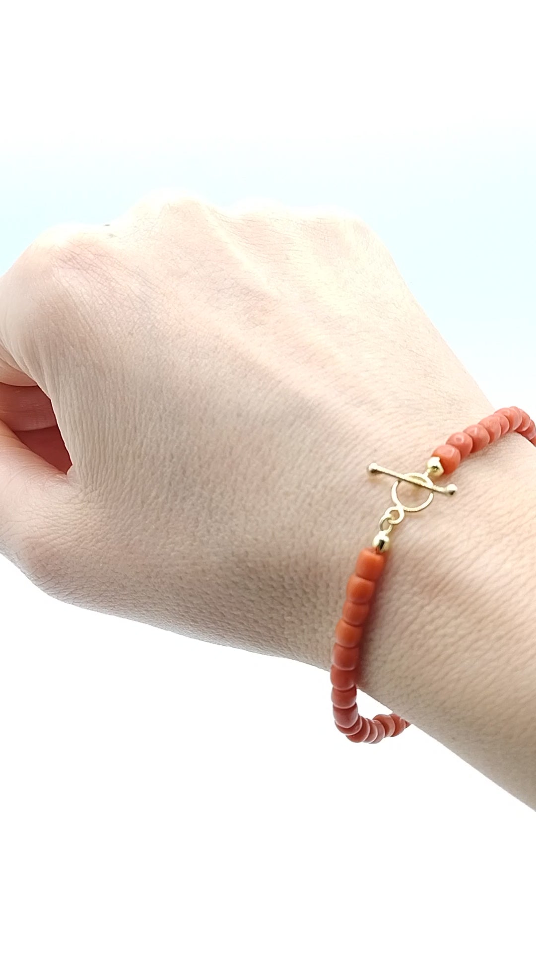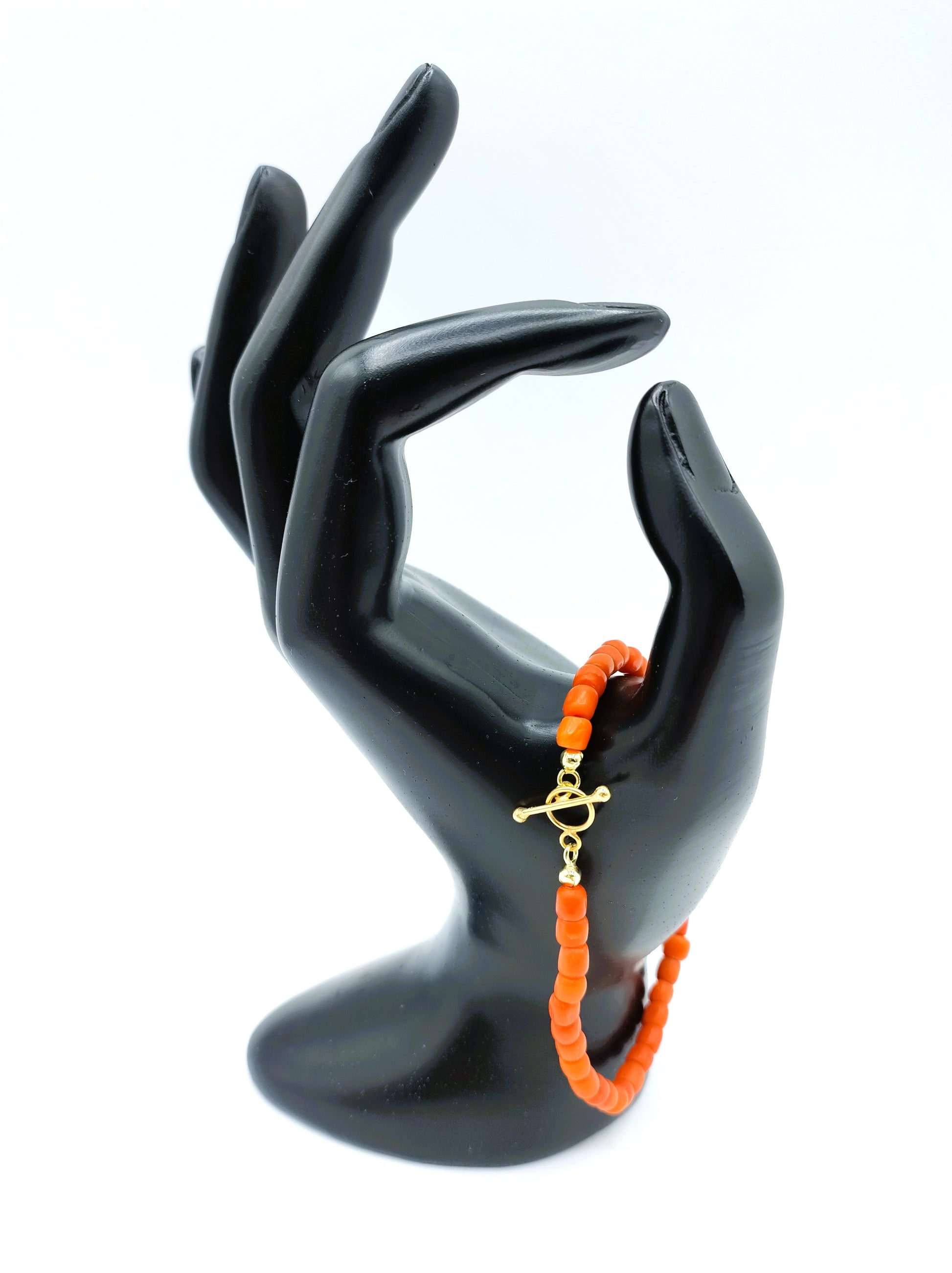 Rotes Korallenarmband mit goldenem Knebelverschluss