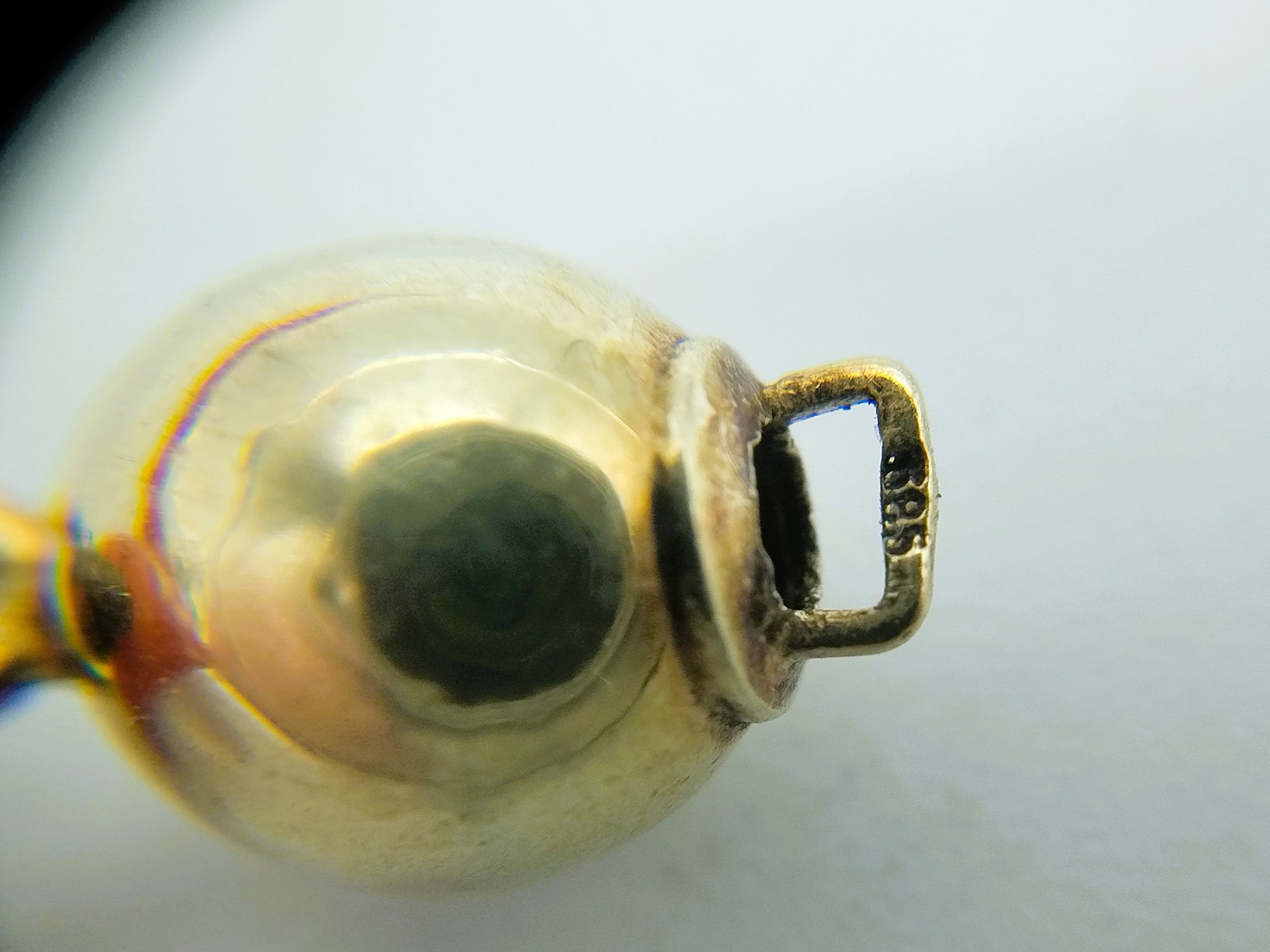 Der Goldverschluss ist mit 585 für 14 Karat Gold gestempelt.