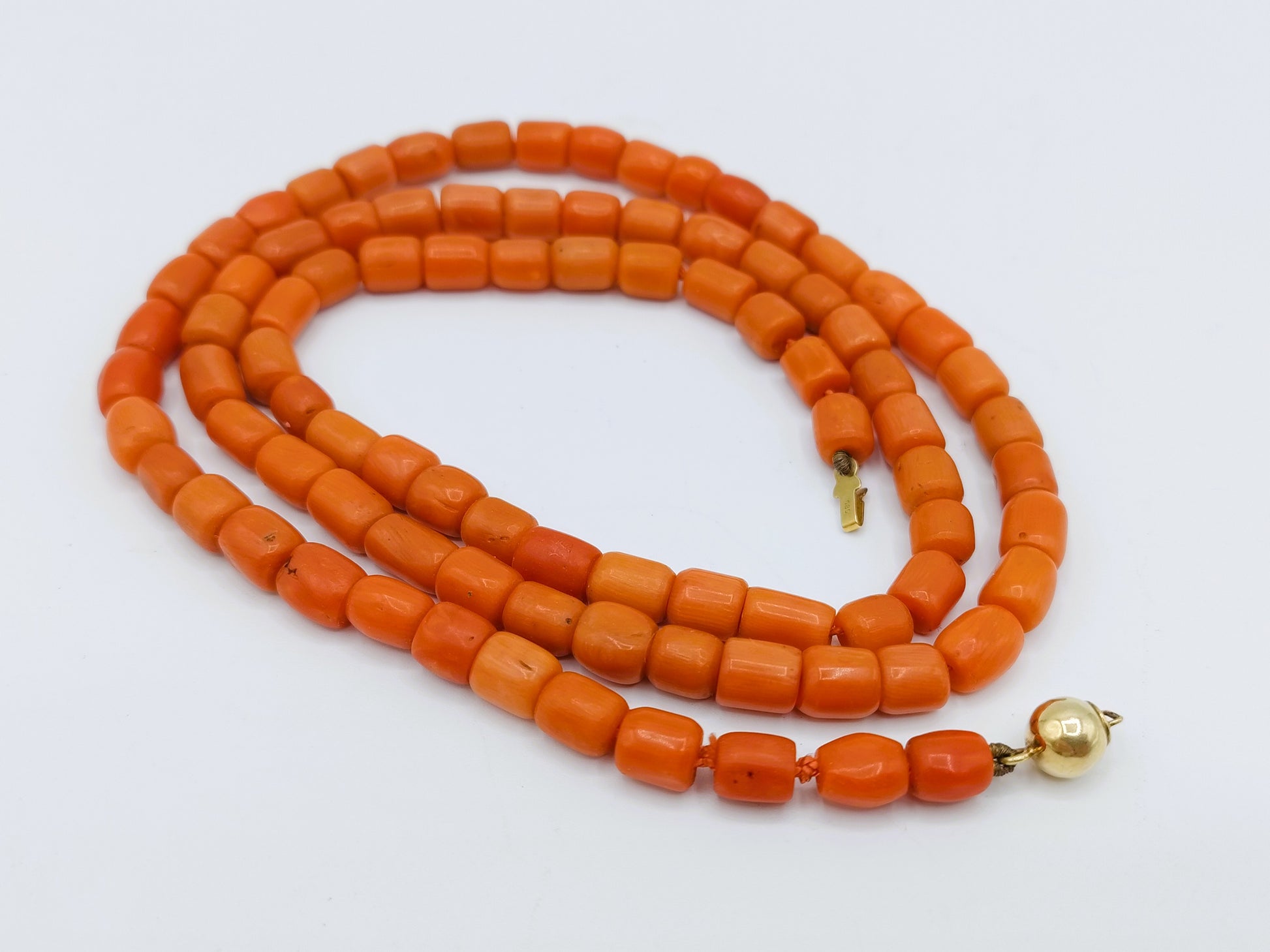 Blutkorallenkette mit goldenem Kugelverschluss, 57,5 cm