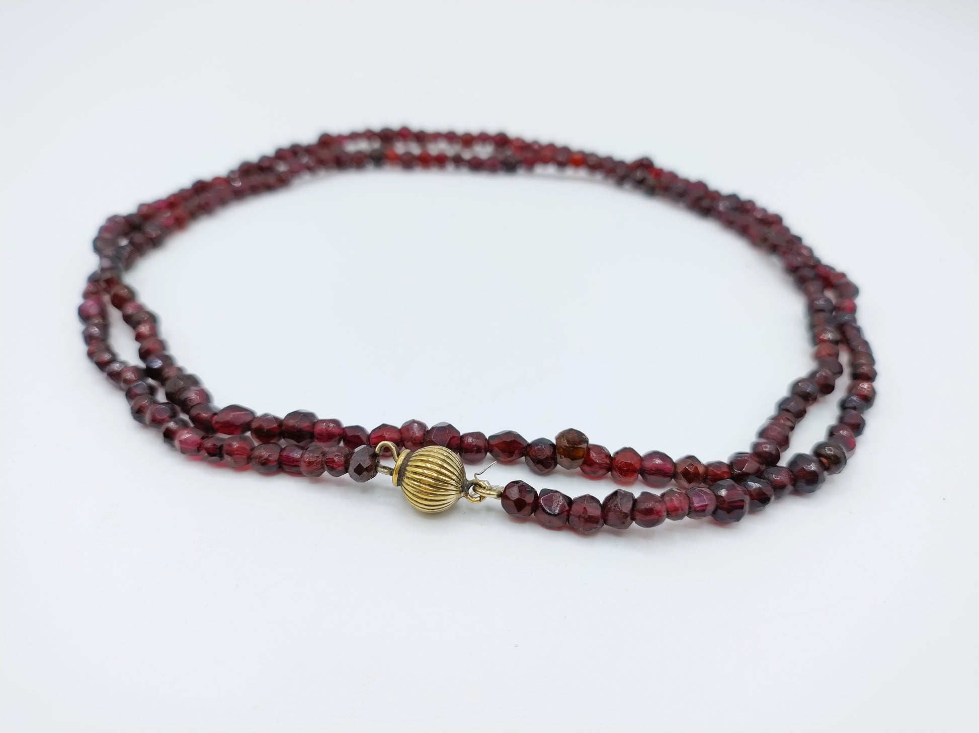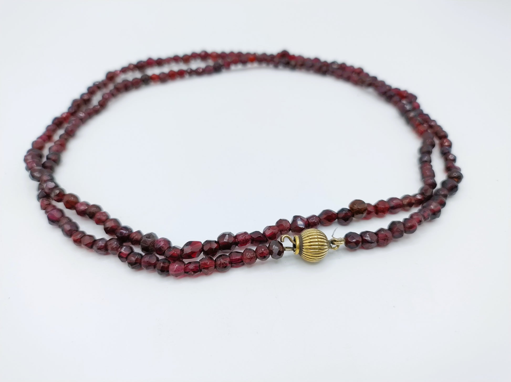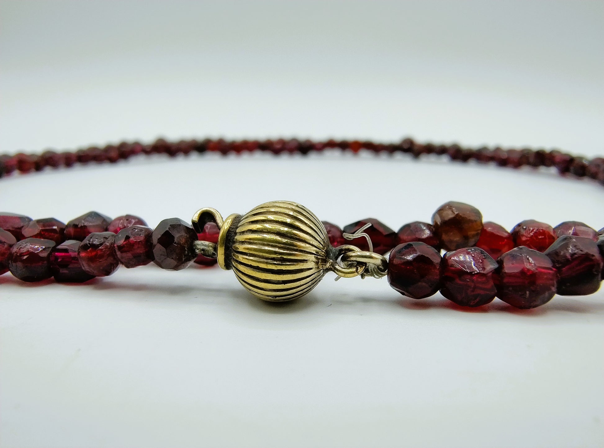 Bauerngranatenkette mit vergoldetem Silberkugelverschluss.