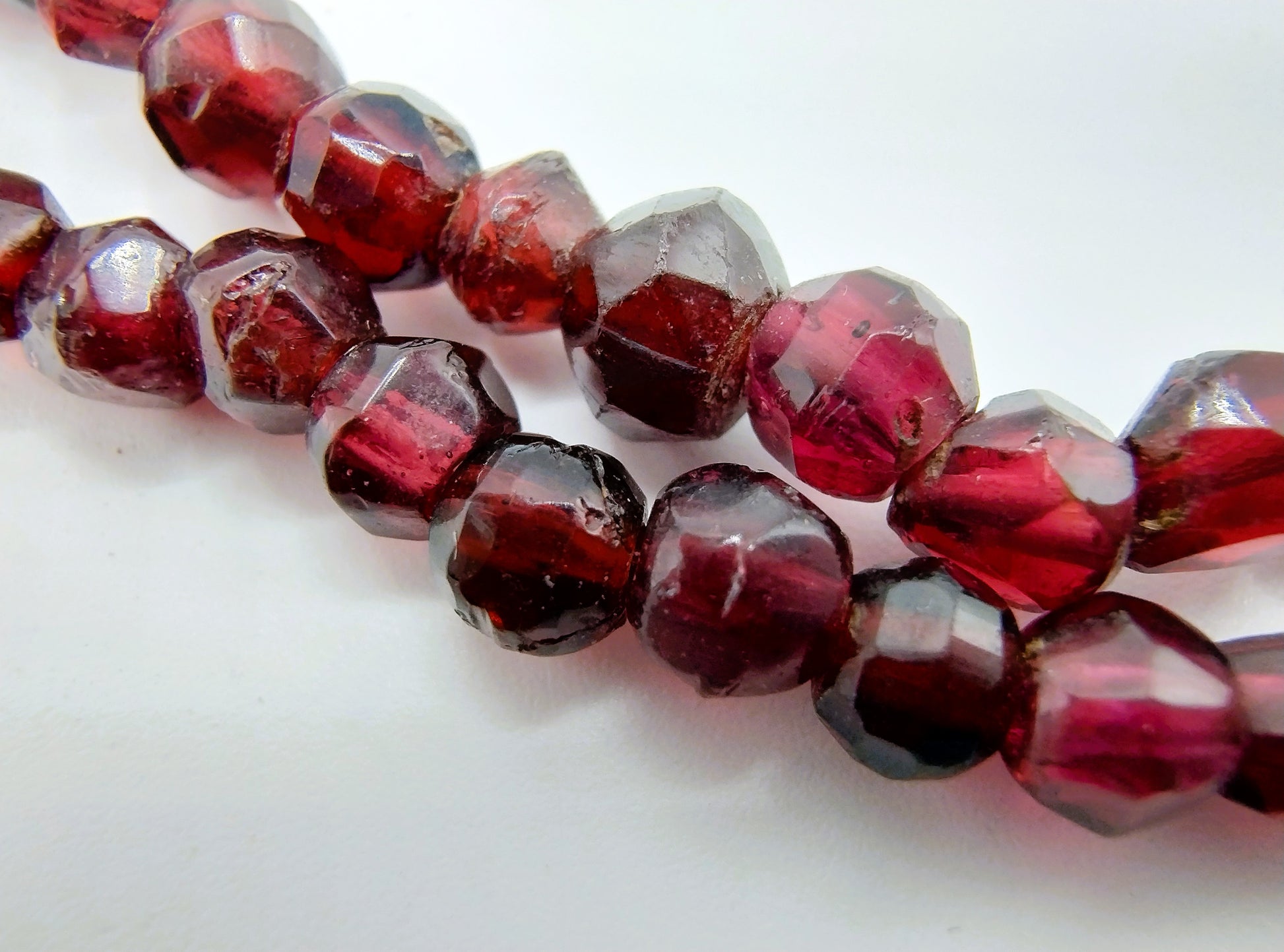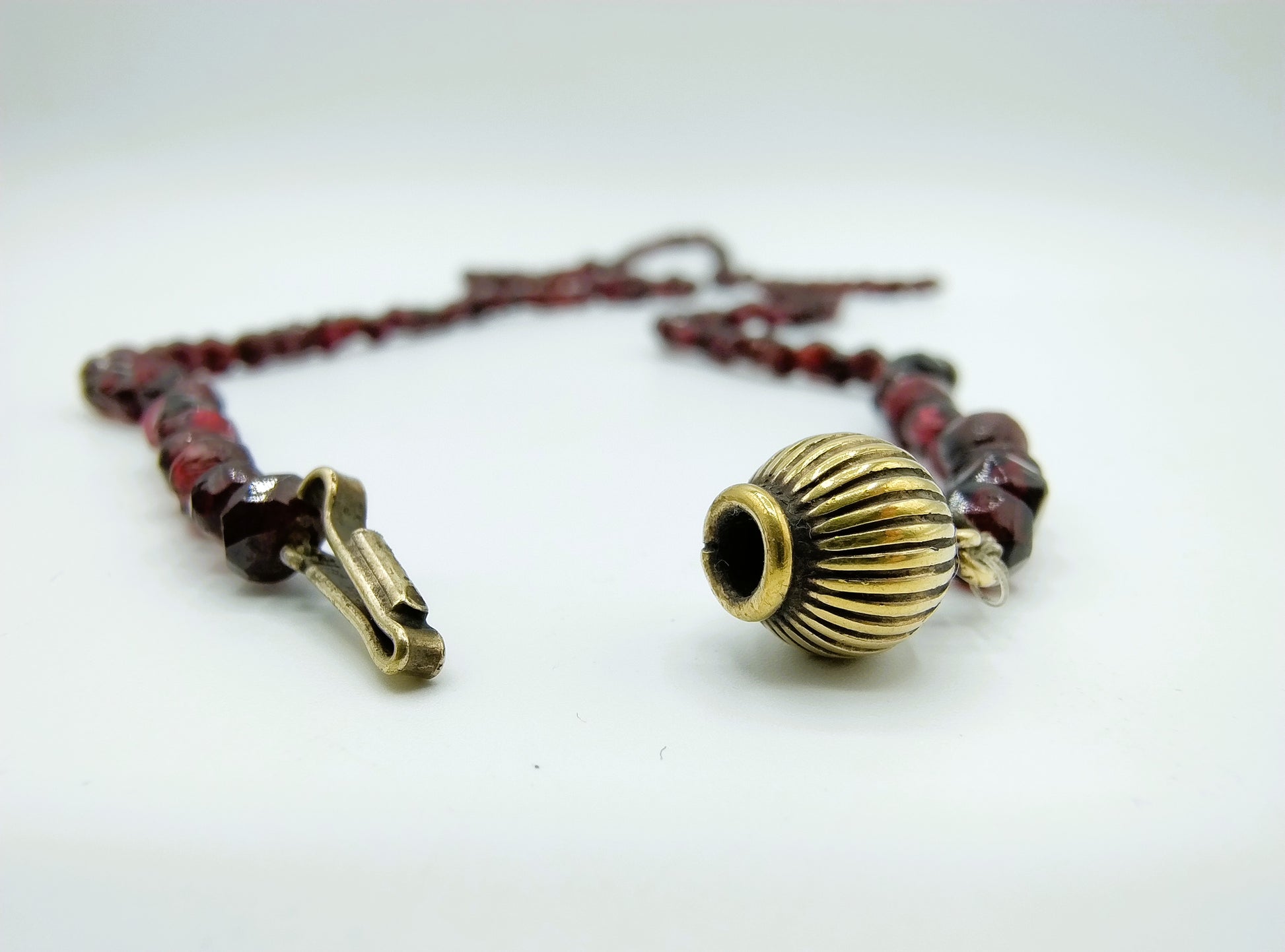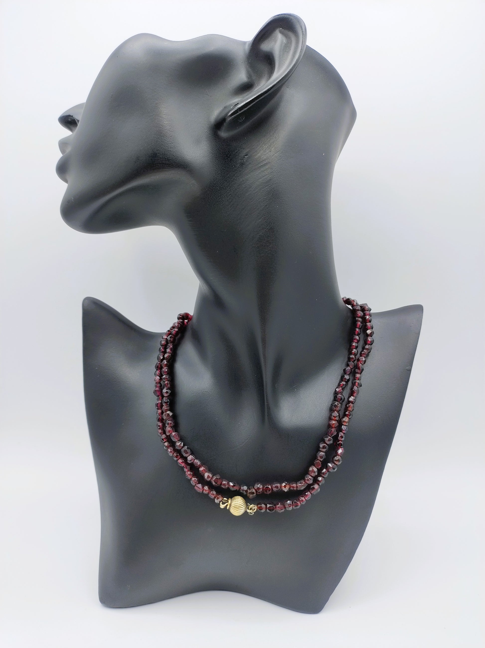 Bauerngranatenkette mit vergoldetem Silberkugelverschluss.
