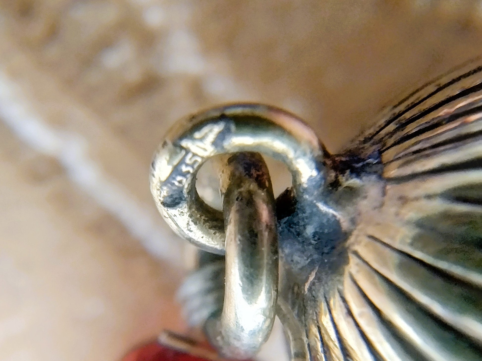 Der Silberverschluss ist mit dem Schwert 835 für Silber 2. Feingehalt gestempelt.