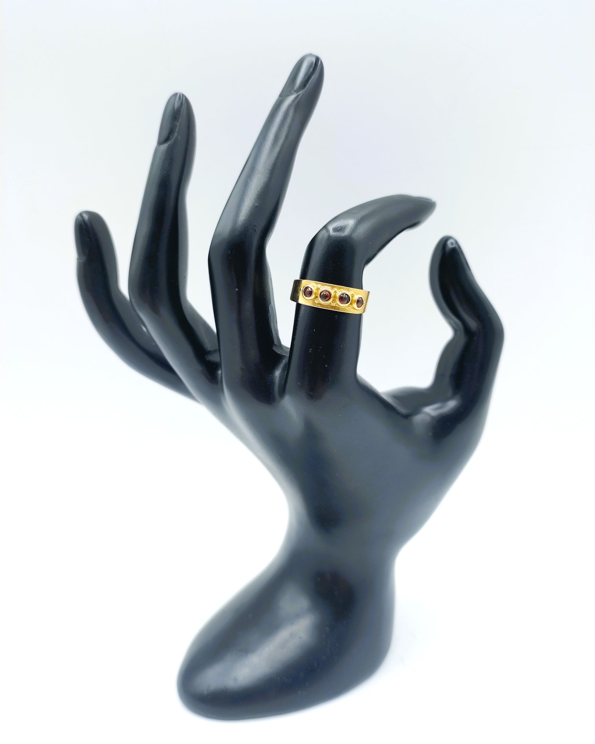 Ring aus 14 Karat Gold, besetzt mit 4 Granaten. Die Granaten haben einen Durchmesser von 2 mm.