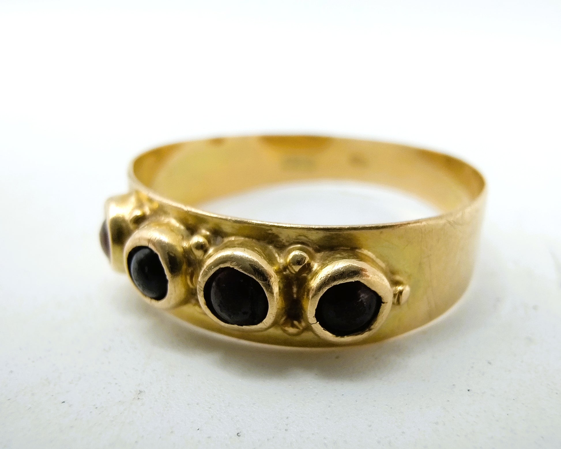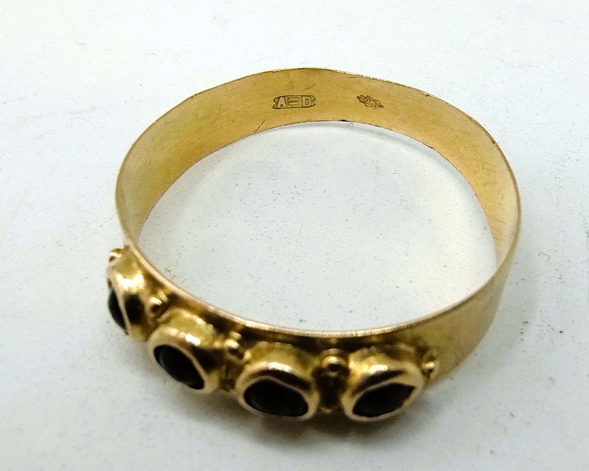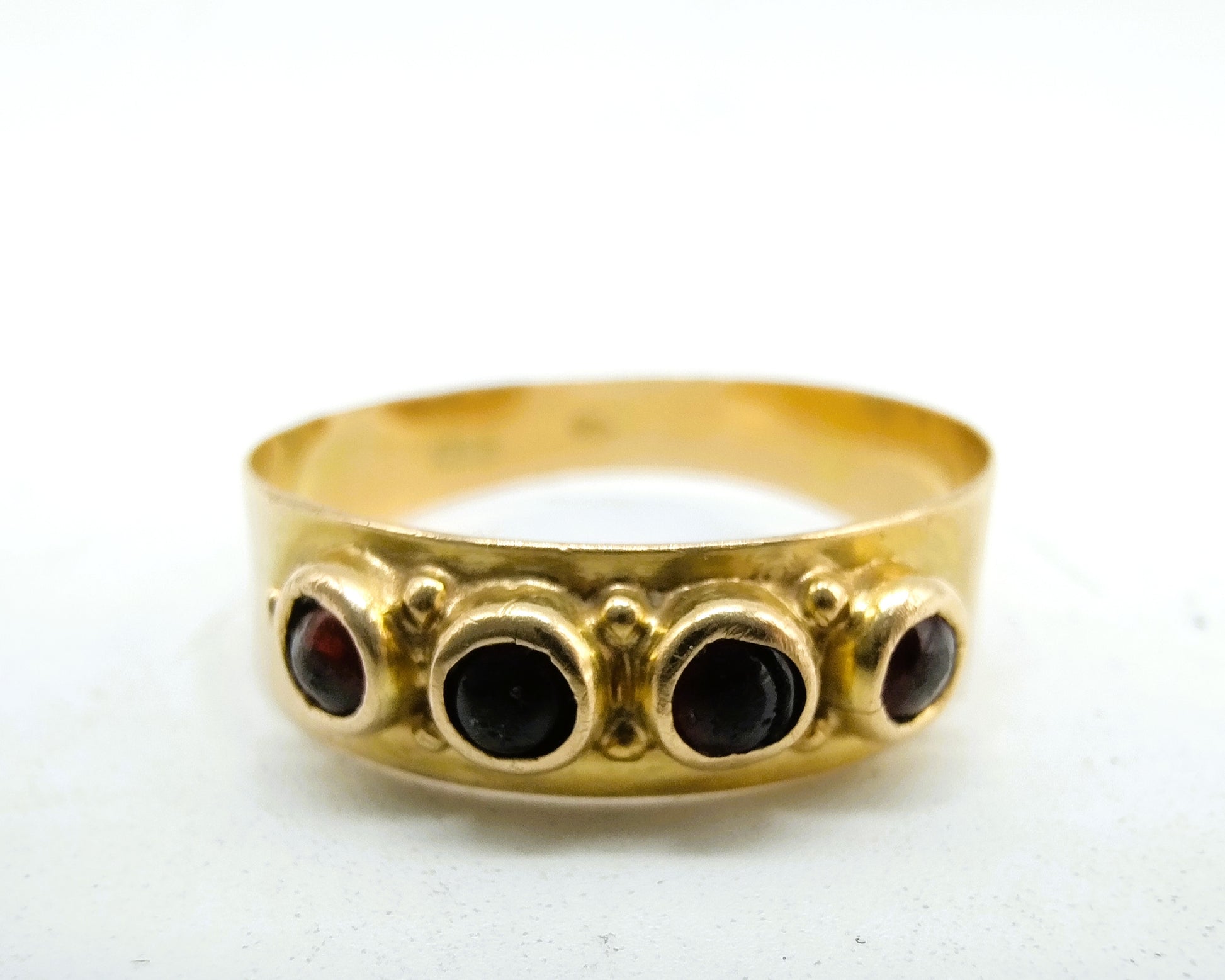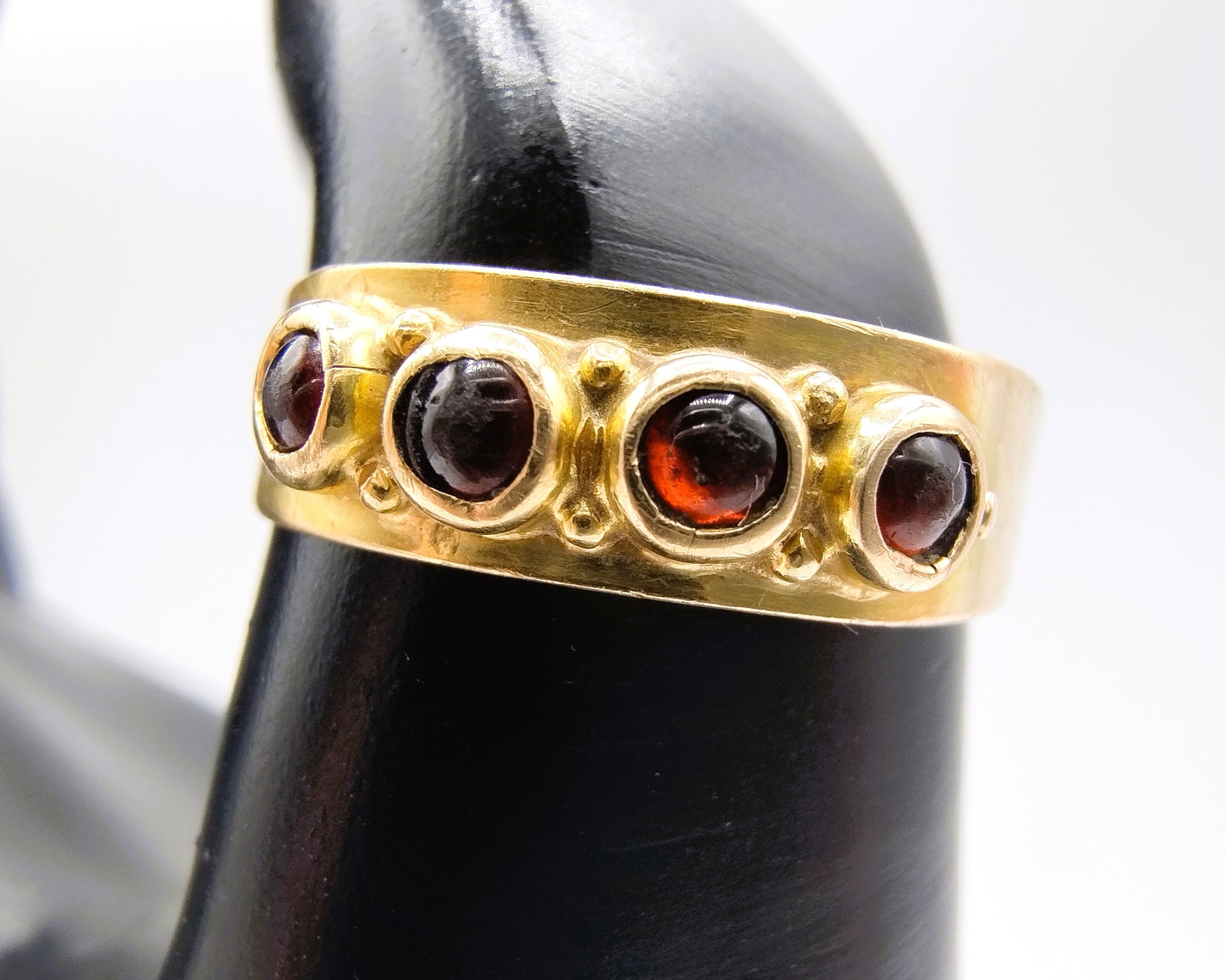 Goldring mit 4 Granaten, 14 Karat, 17,5 mm.