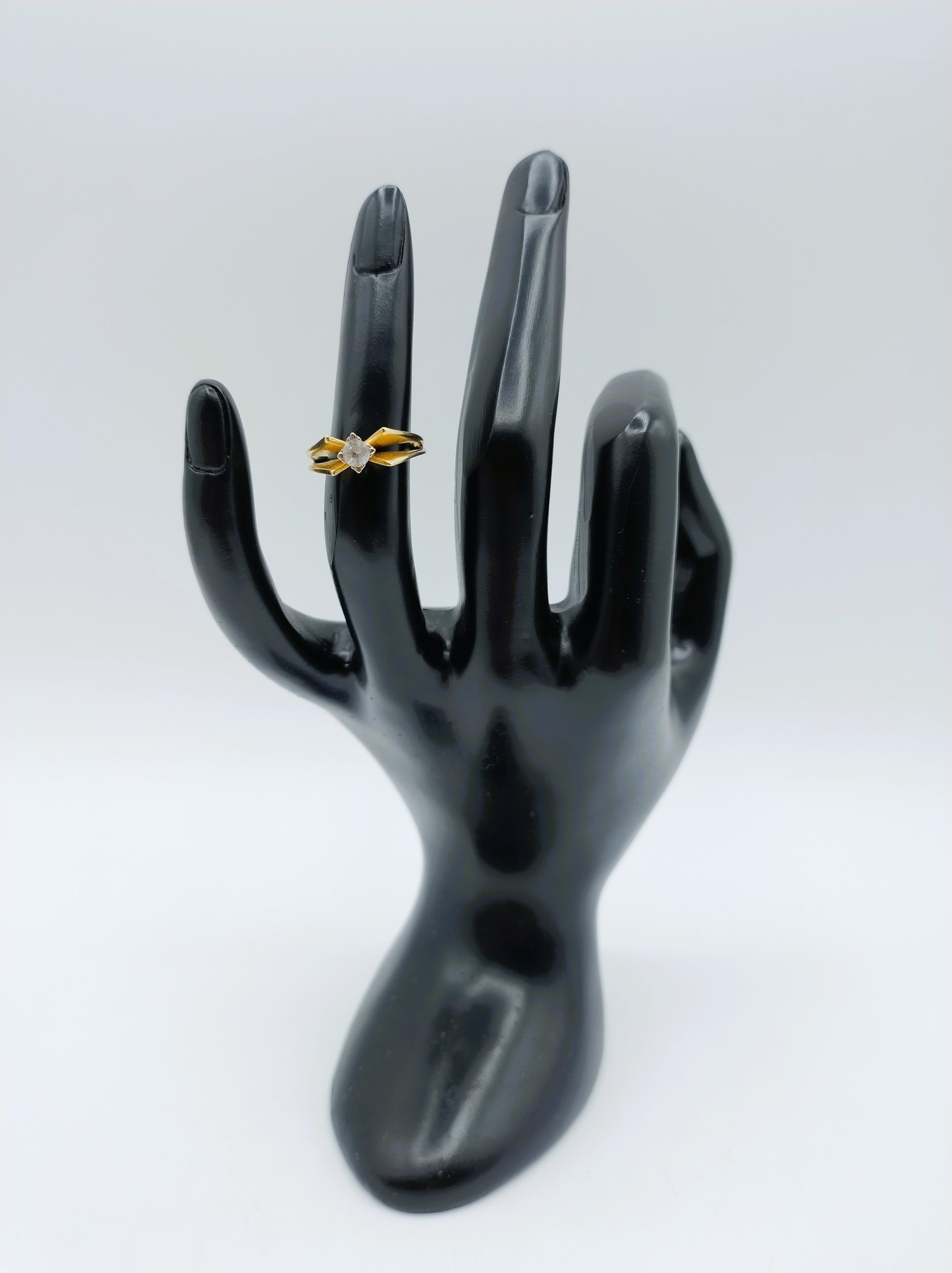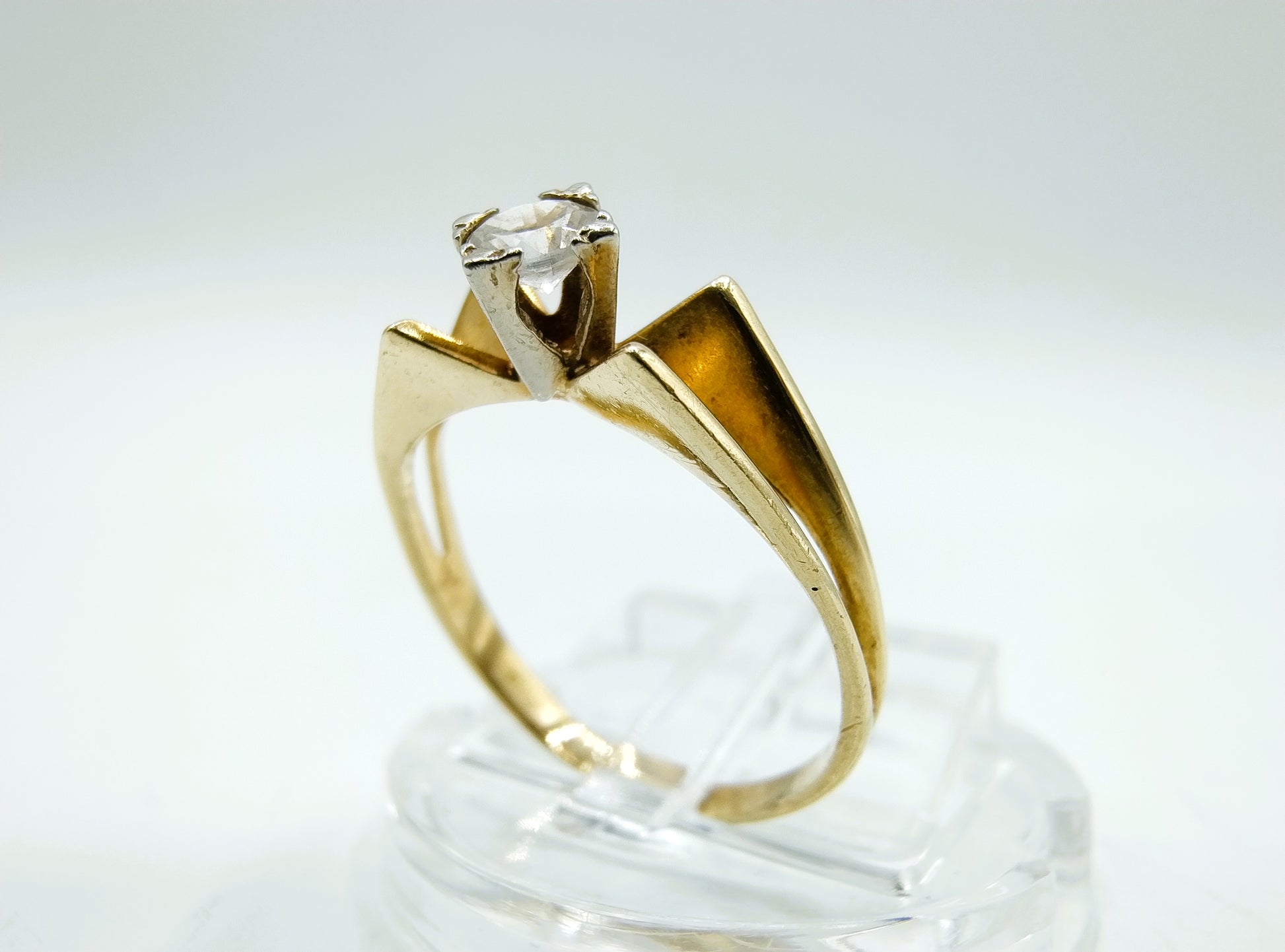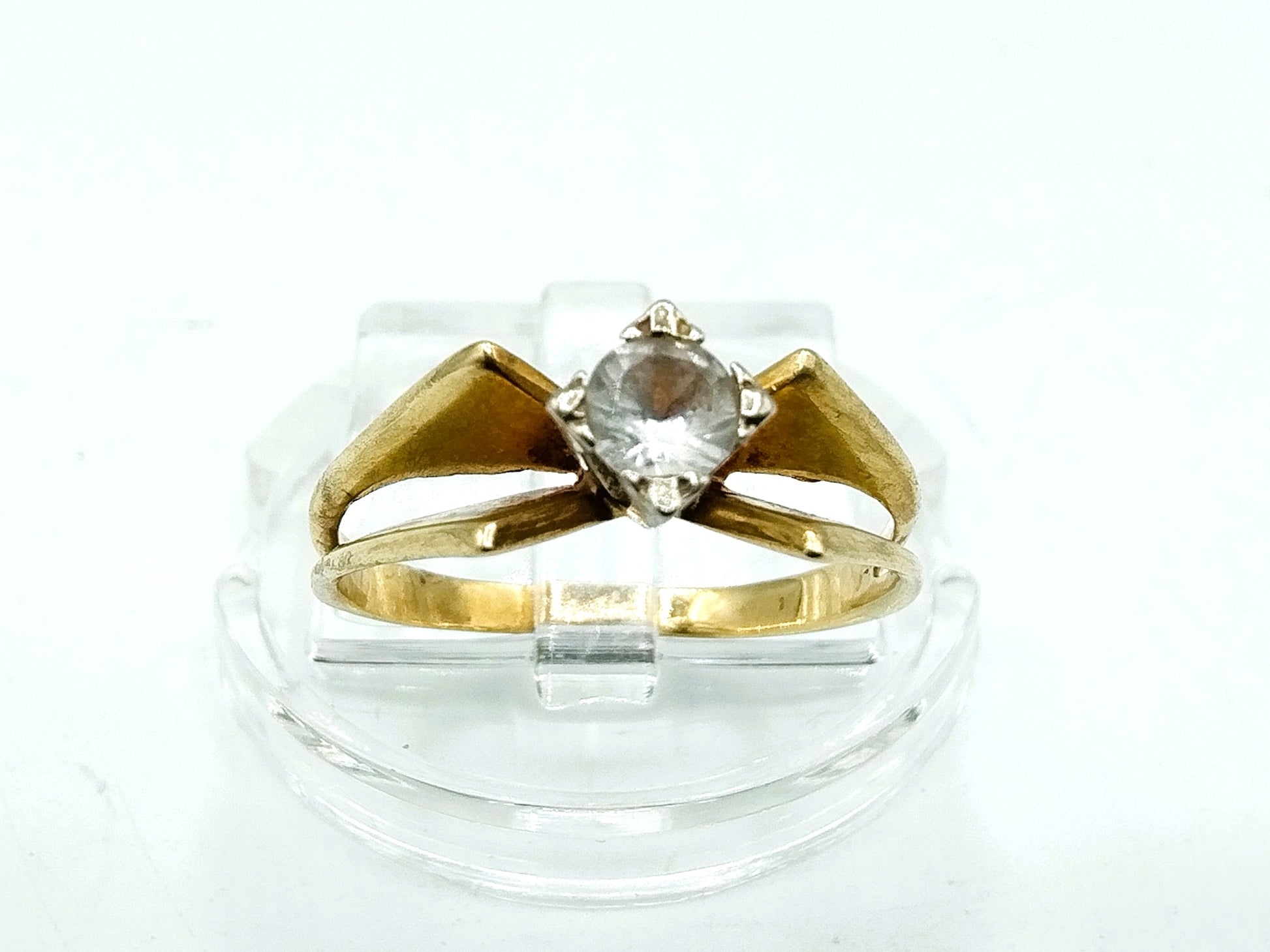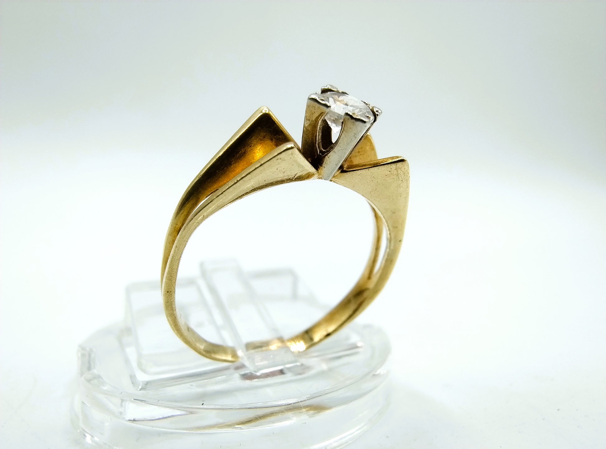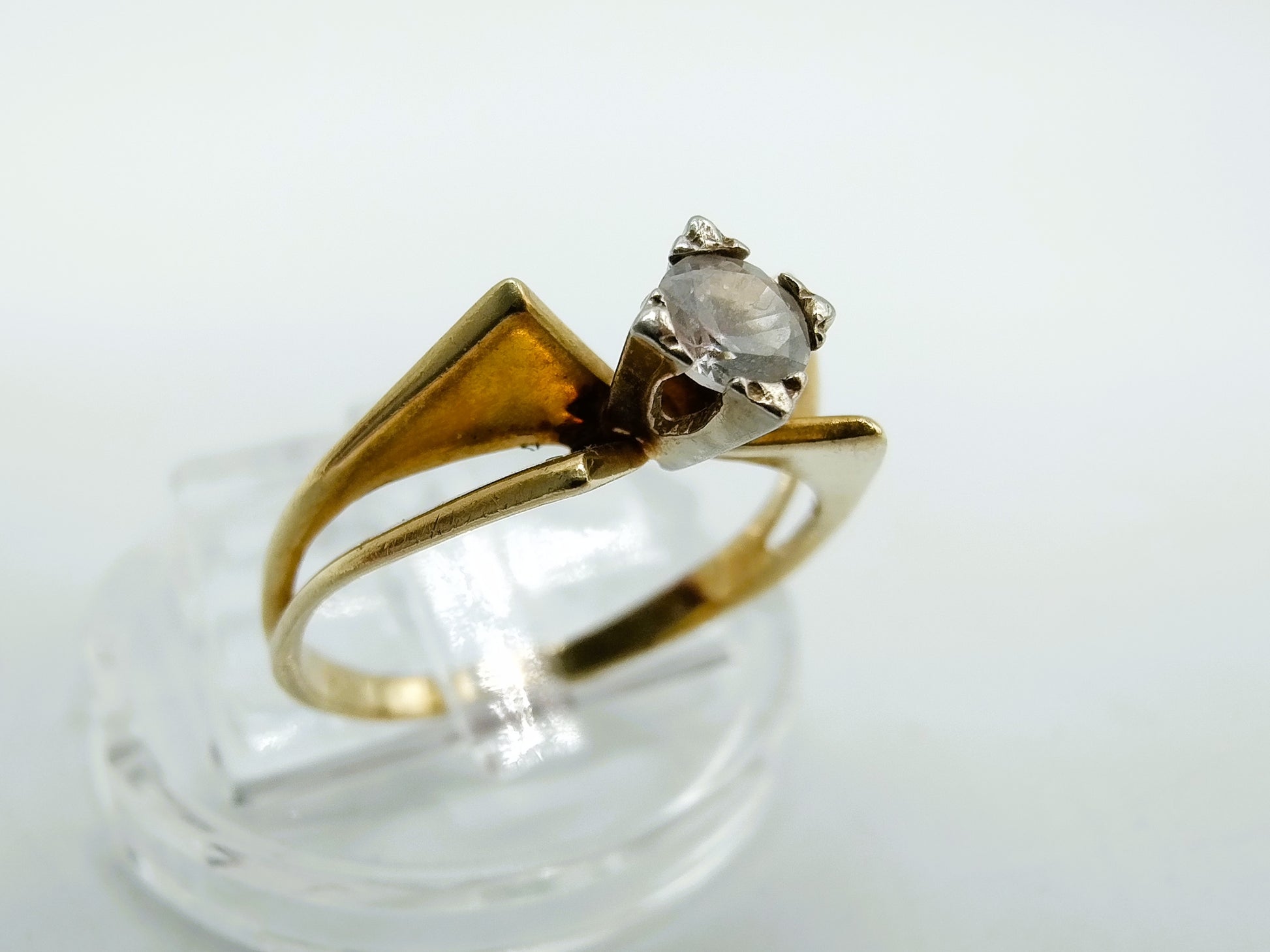 Gold-Solitärring, besetzt mit einem geschliffenen Stein mit einem Durchmesser von 4 mm.