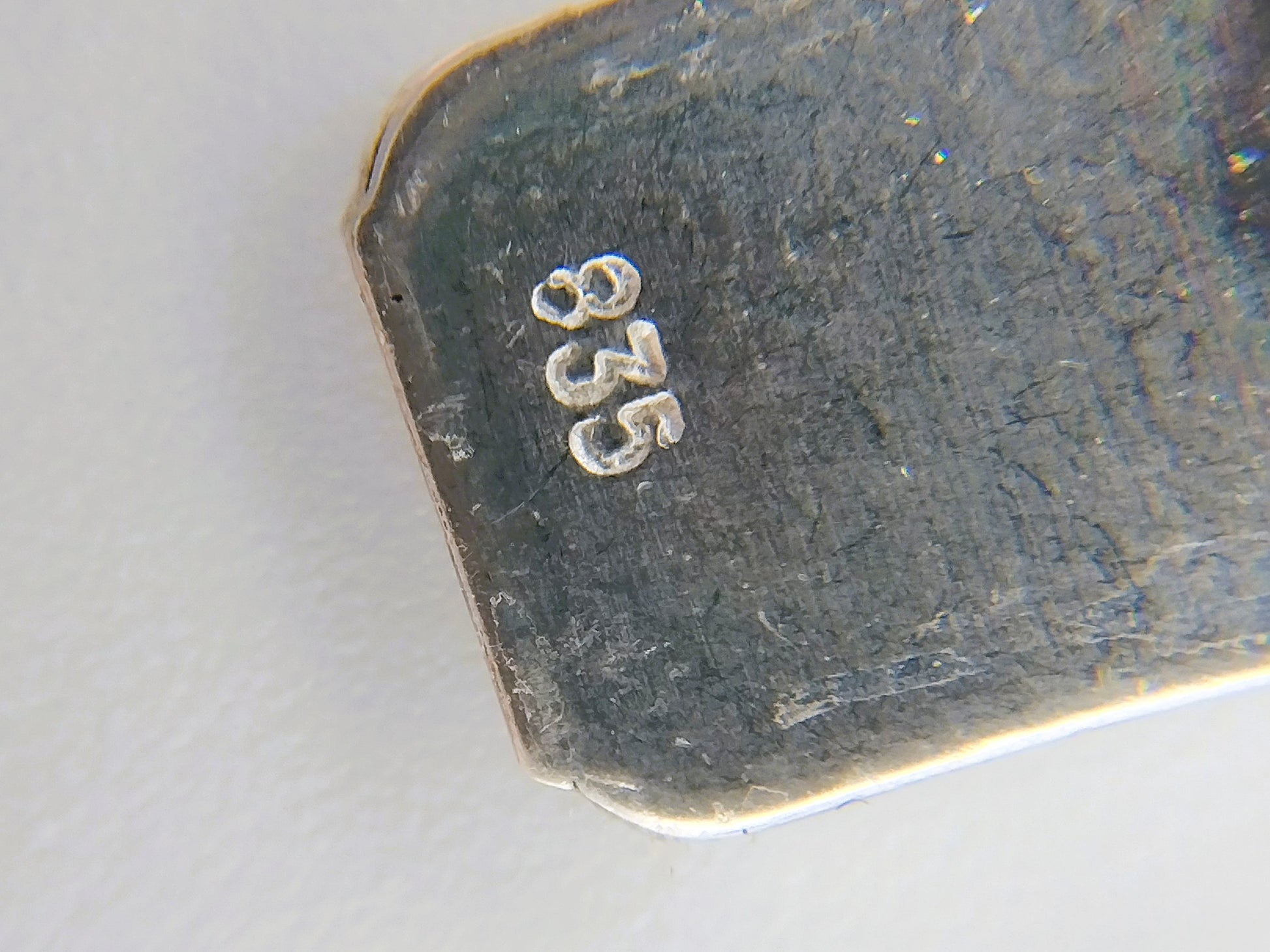 Der Silberverschluss ist mit 835 und Z11 für Silber 2. Güteklasse gestempelt.