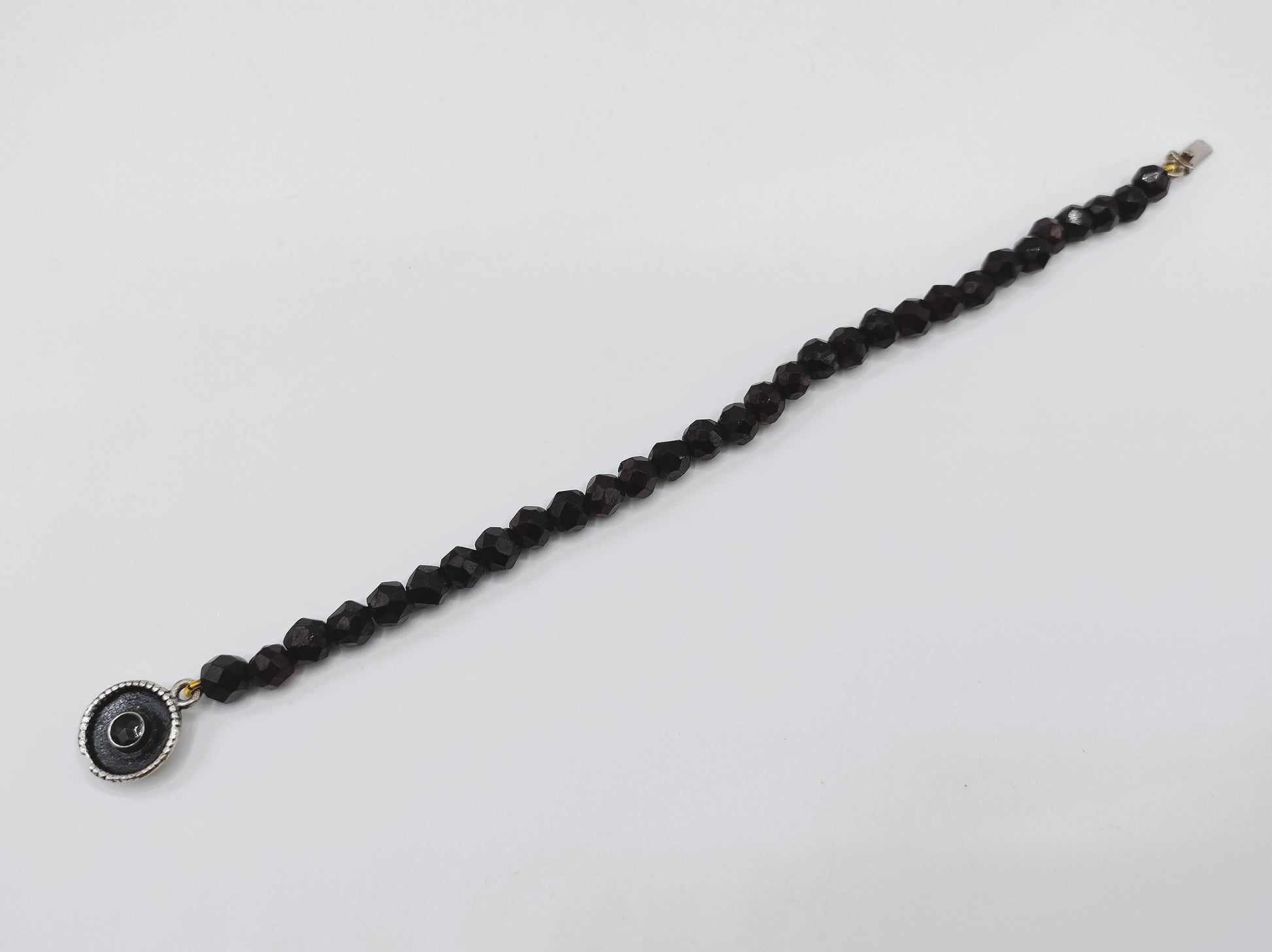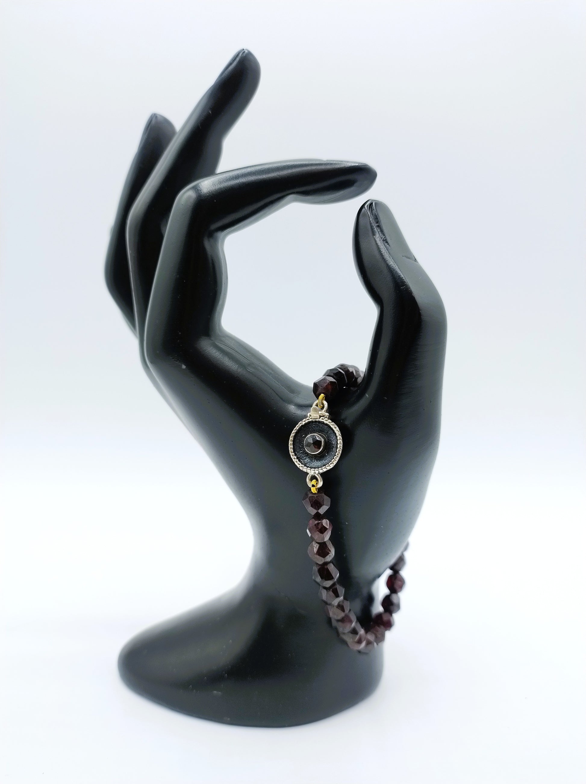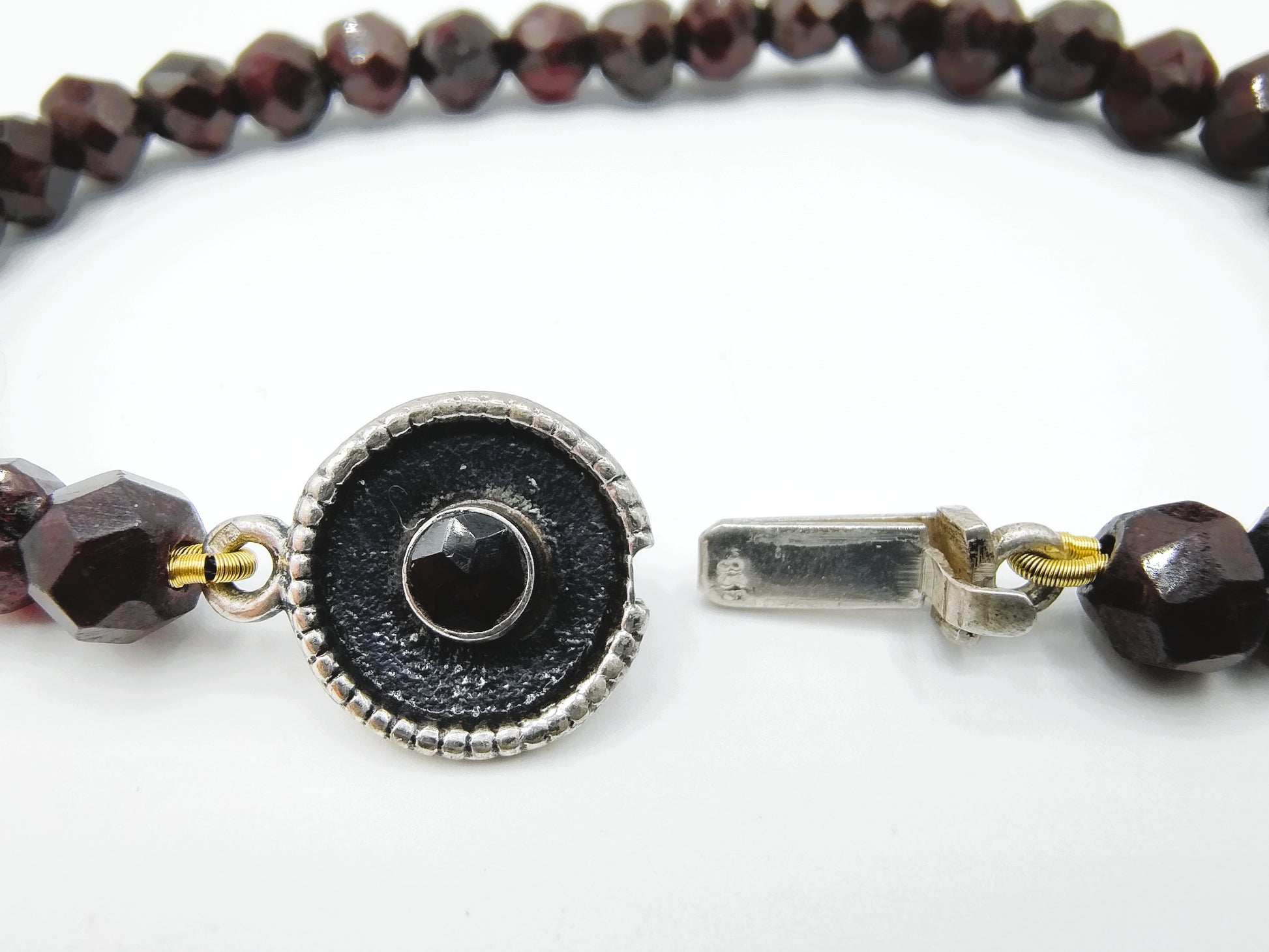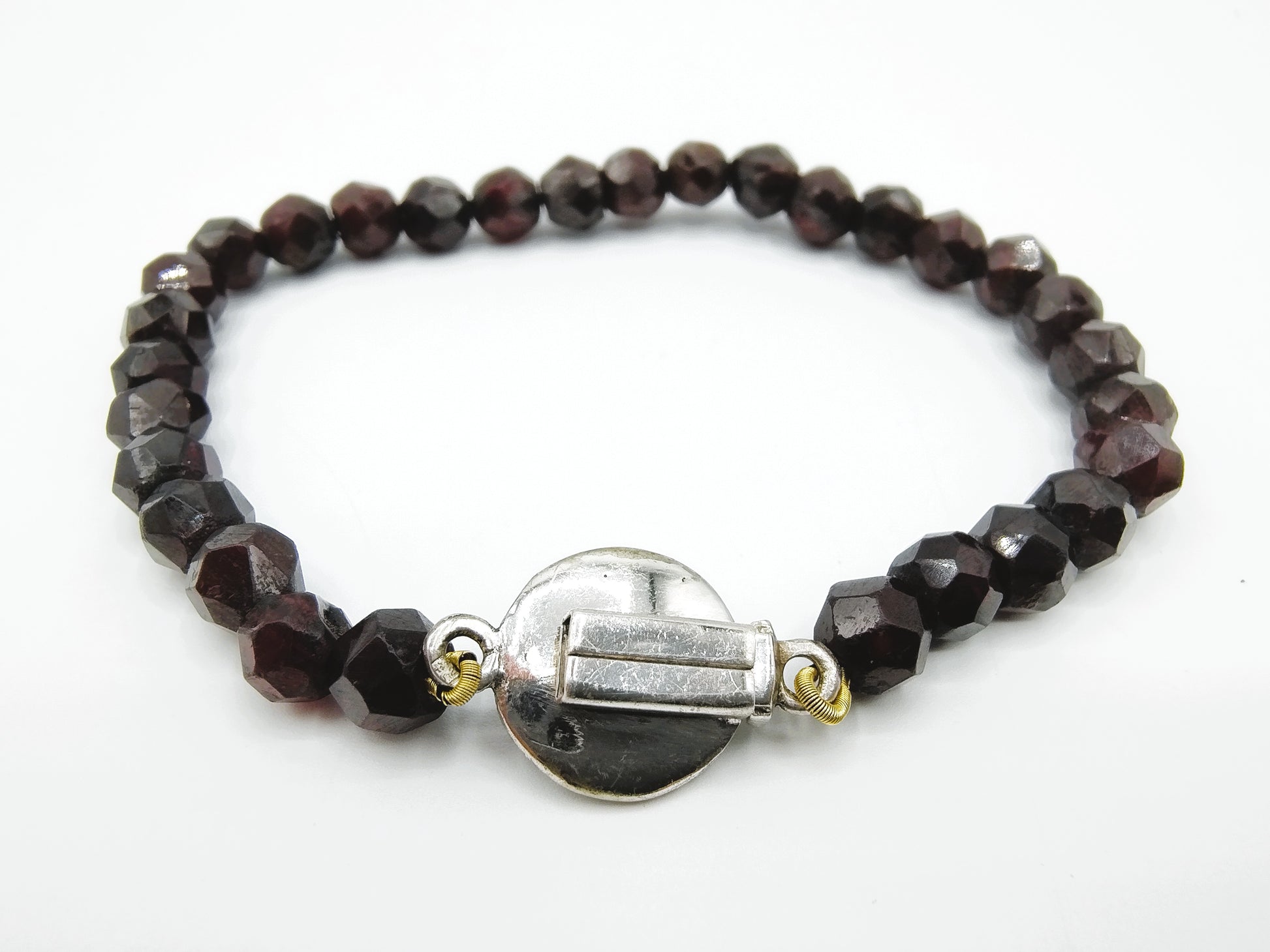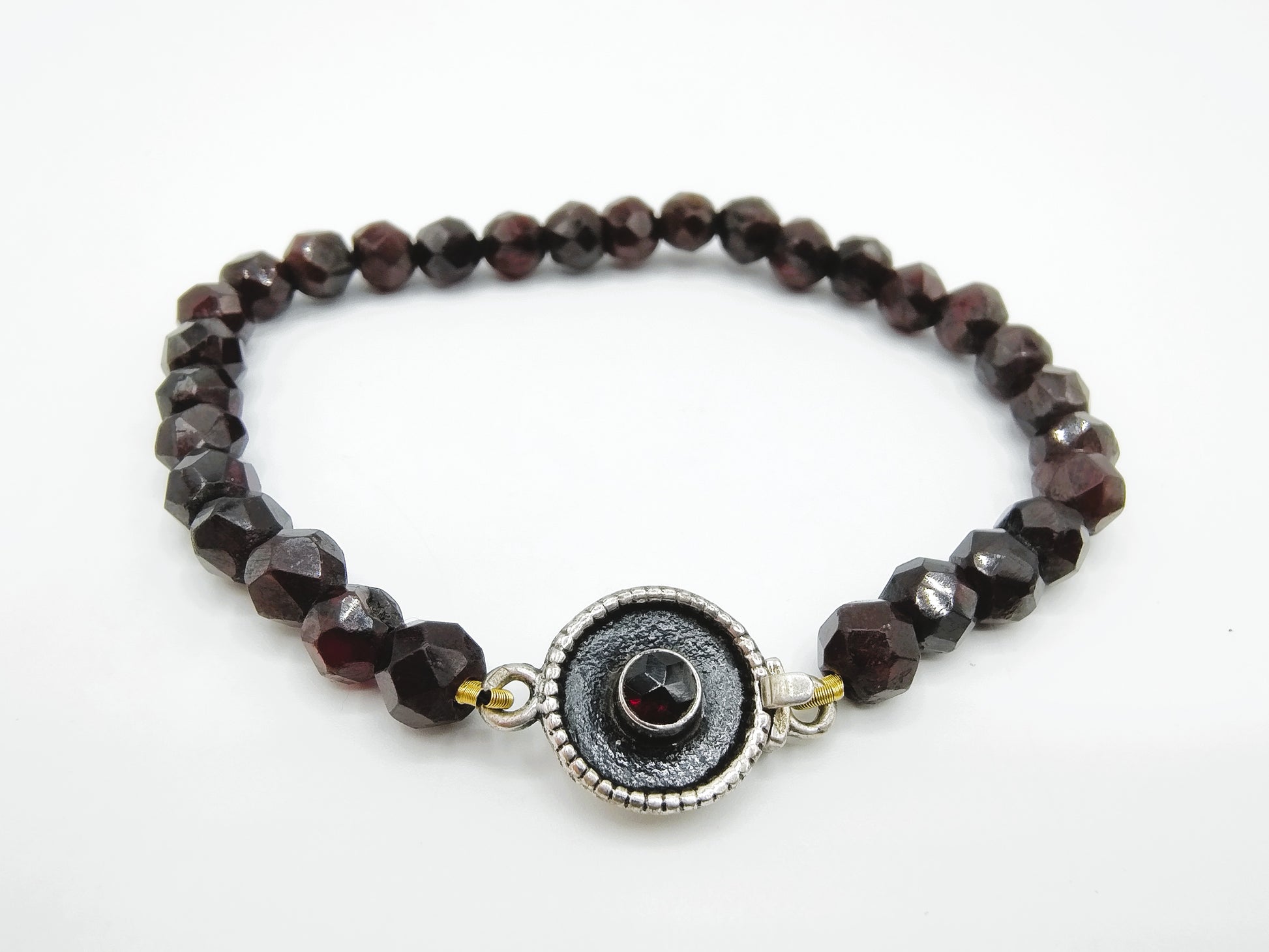 Granatarmband mit Vintage-Silberverschluss. Der Silberverschluss ist mit einer Granate mit 3 mm Durchmesser versehen.