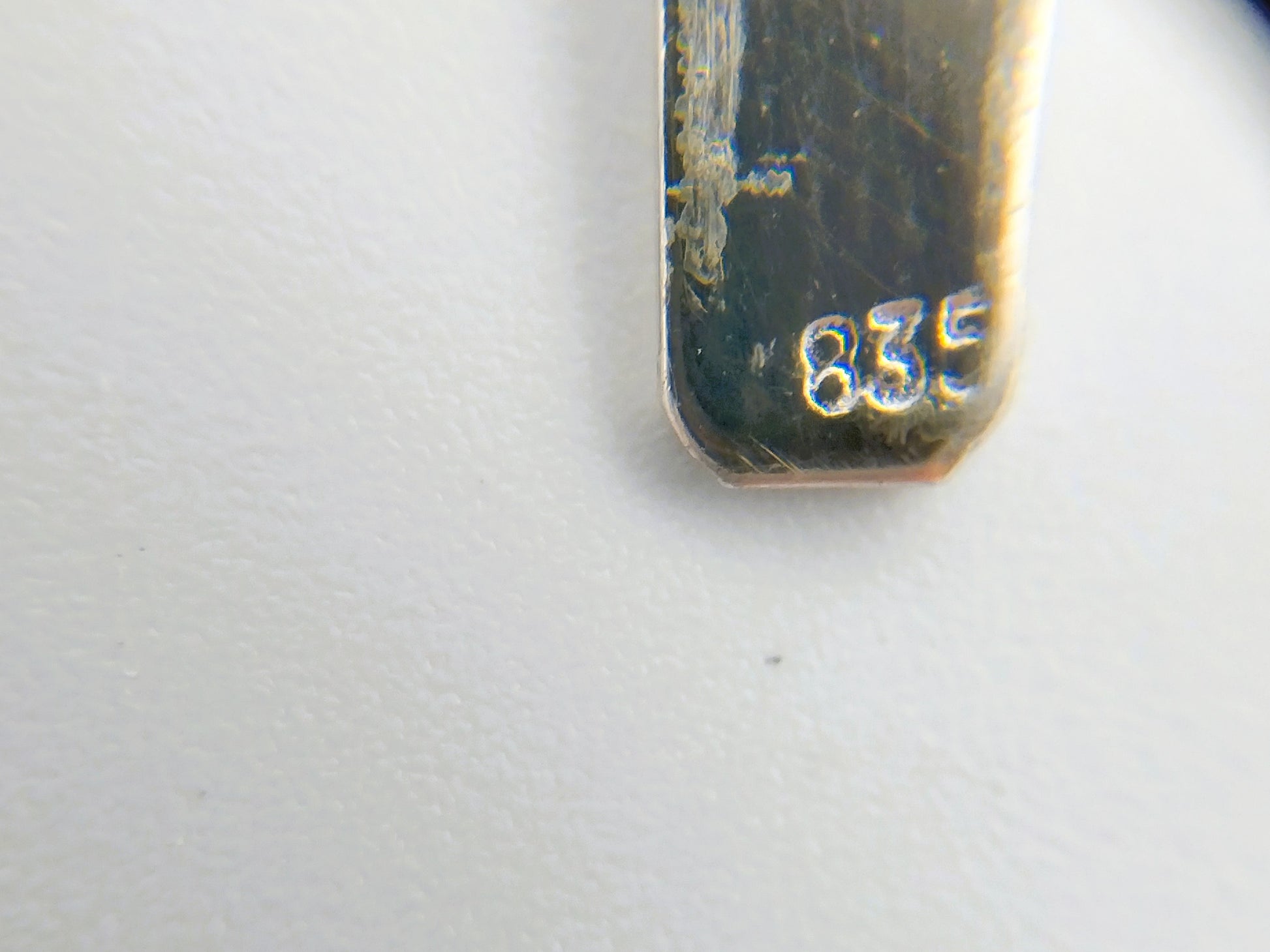 Der Silberverschluss ist mit 835 und Z11 für Silber 2. Güteklasse gestempelt.