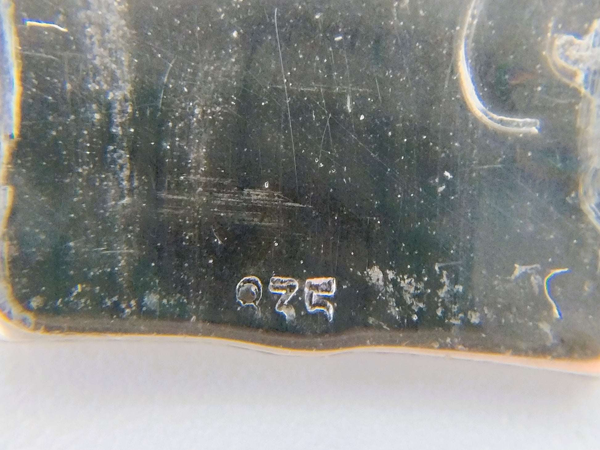Der Silberverschluss ist mit 835 und Z11 für Silber 2. Güteklasse gestempelt.