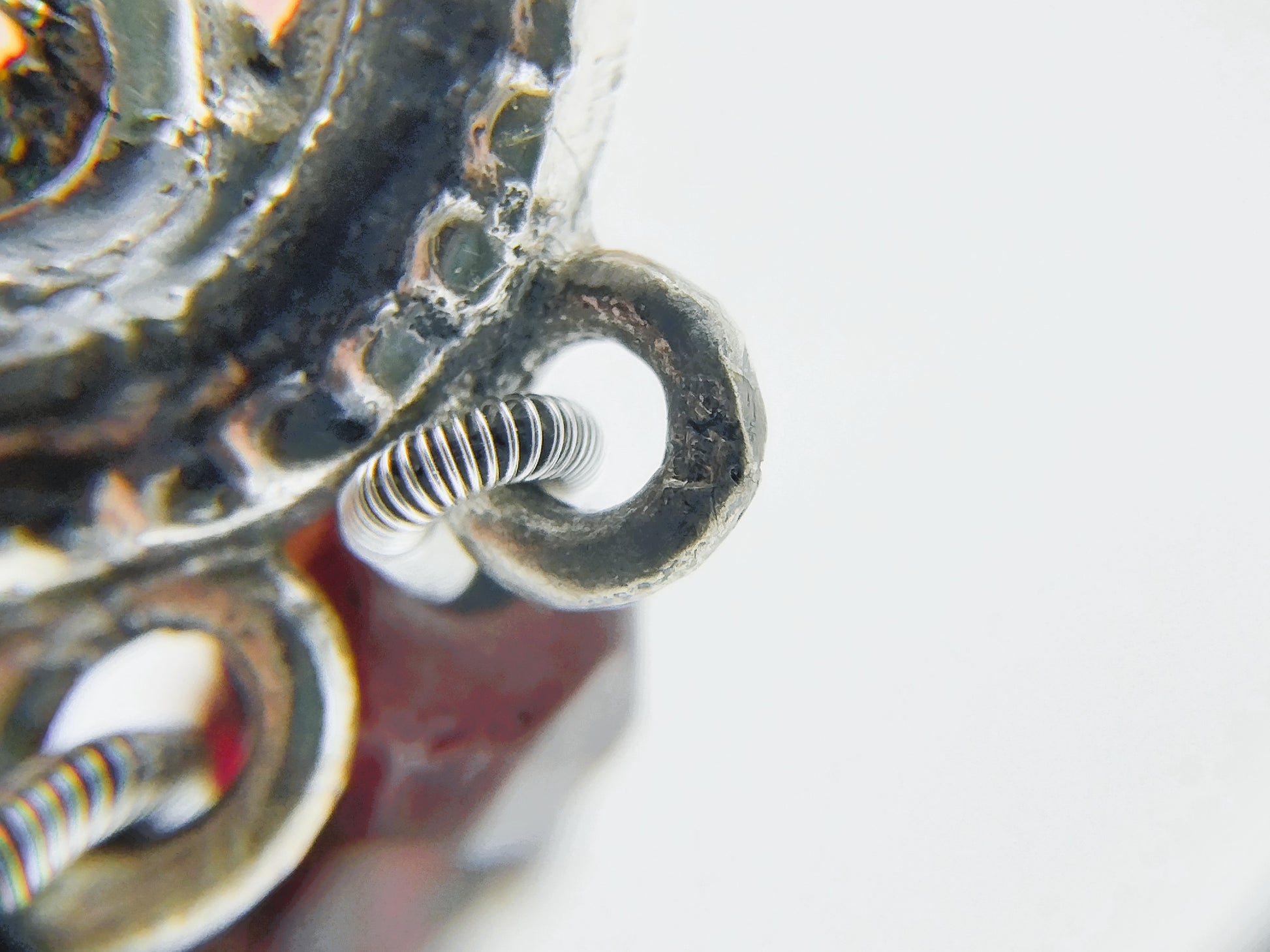 Durchmesser der Granaten: 3-4 mm. Maße des Schlosses: 1,5 x 2 cm.
