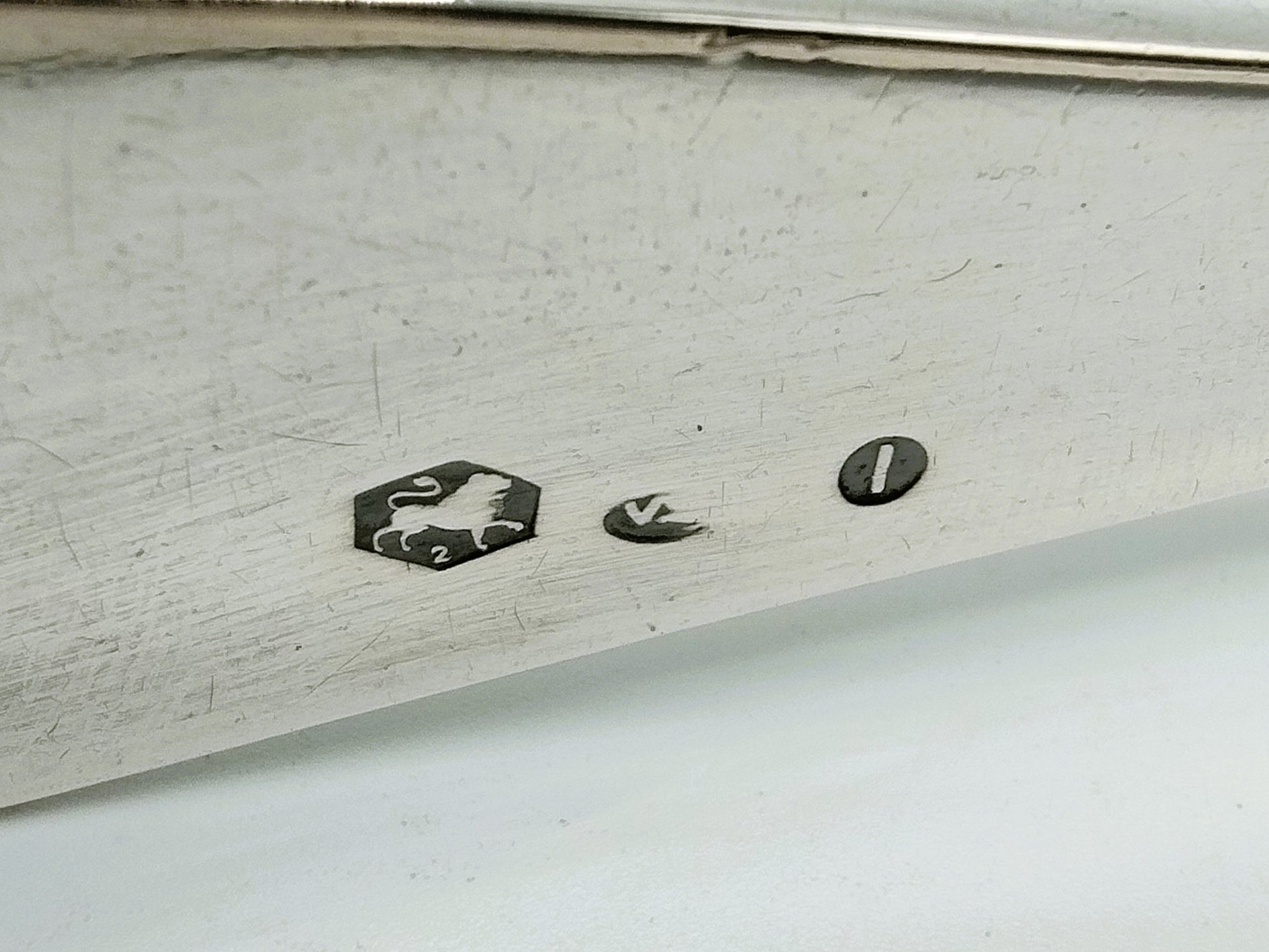 Der Schlüssel ist mit Meistermarke VS, zweiter Feingehaltsmarke und Jahresbuchstabe I für 1918 gekennzeichnet.