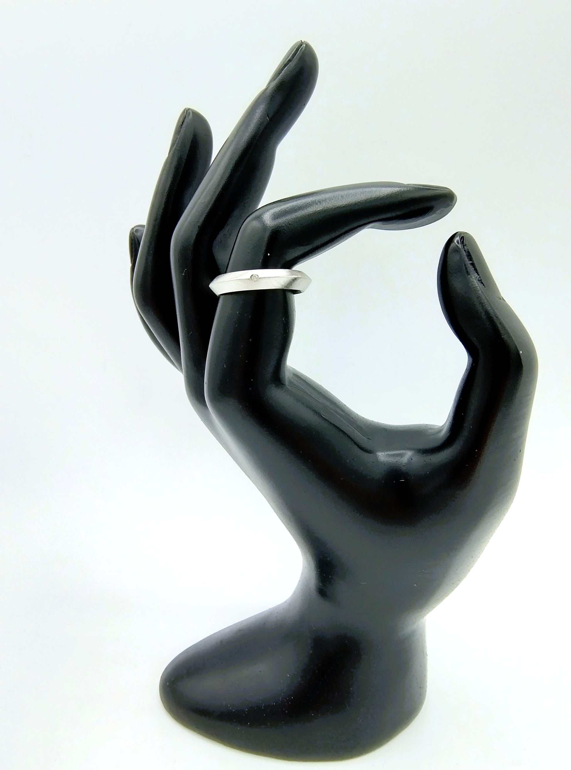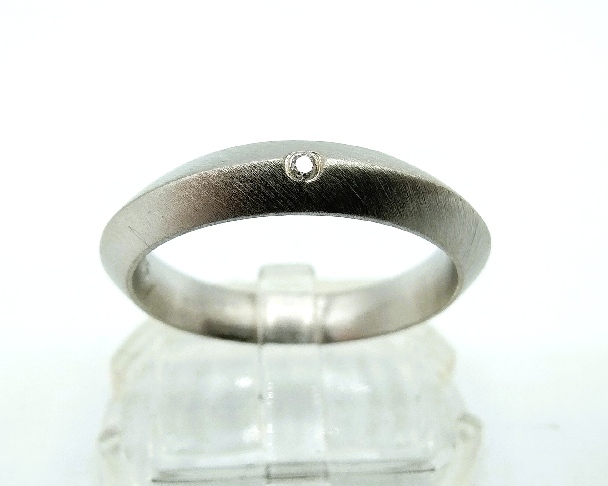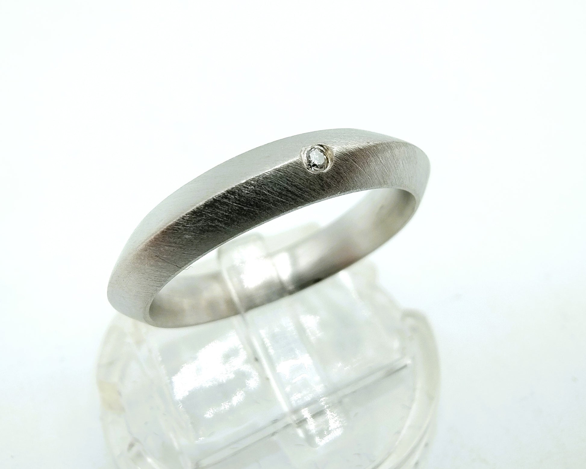 Silberring aus matt gebürstetem Silber. Ausgestattet mit einem echten Diamanten mit einem Durchmesser von: 1 mm.