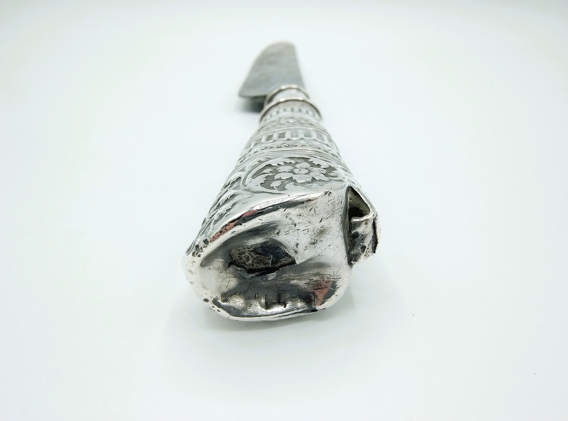 Messer aus dem 18. Jahrhundert mit silbernem Griff. Wahrscheinlich hergestellt vom Amsterdamer Silberschmied Adrianus Koekebakker. Er arbeitete von 1791 bis 1811.