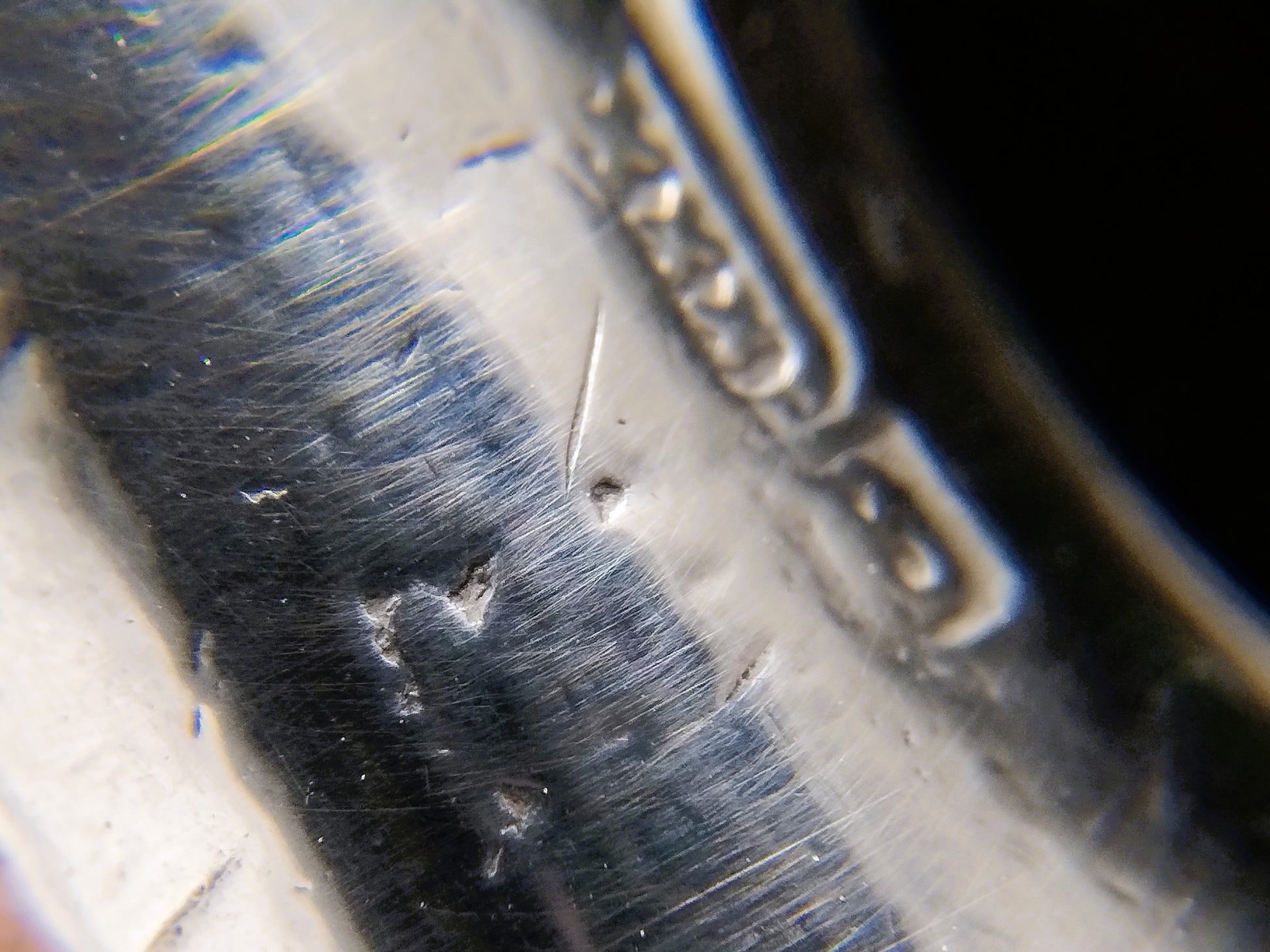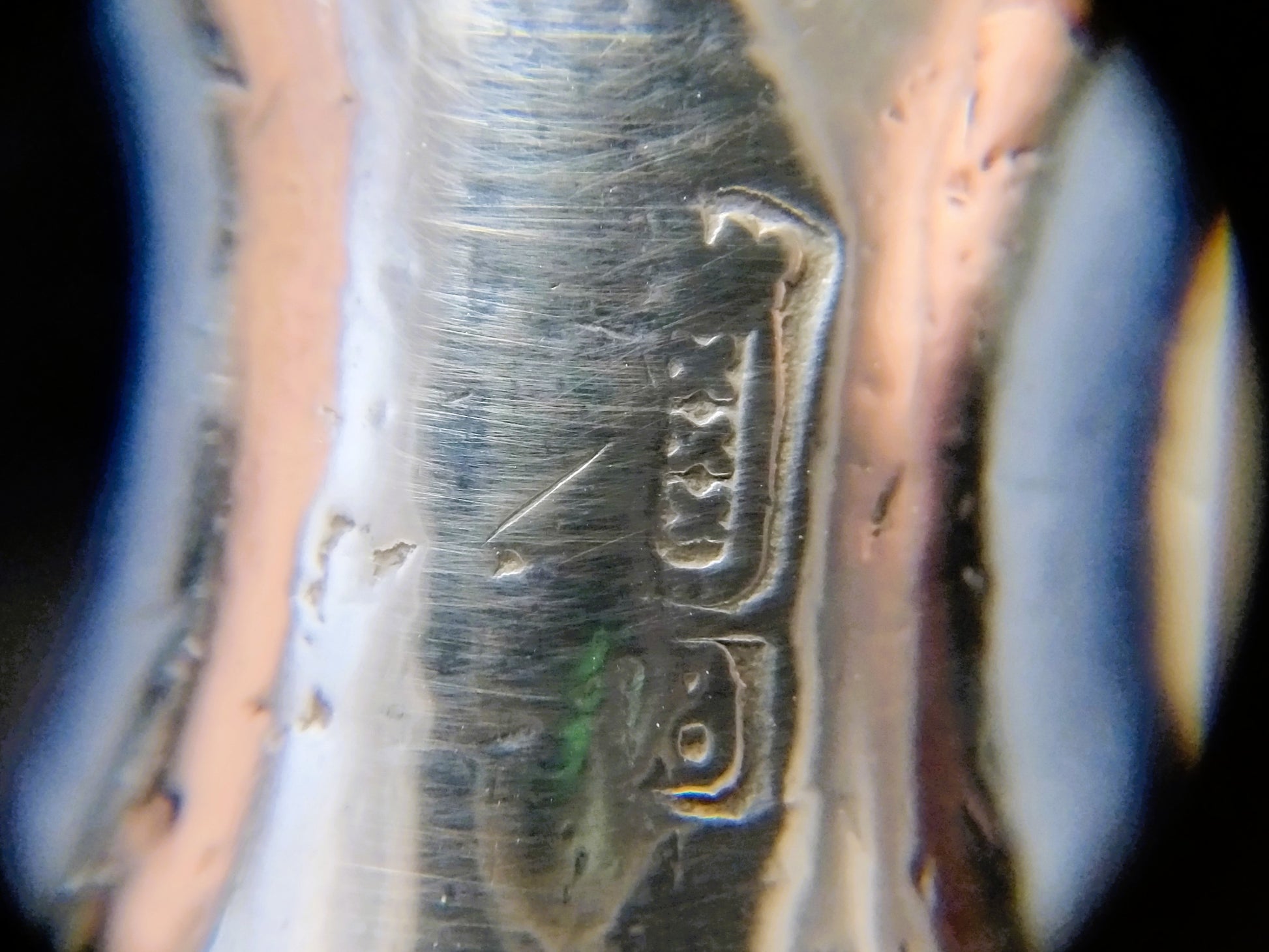 Gepunzt mit schwacher Meistermarke KB, Stadtmarke Amsterdam und Jahresbuchstabe H für 1792.