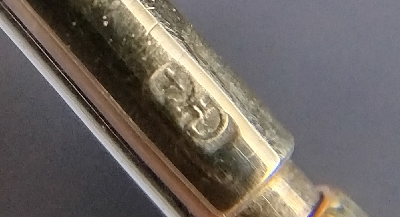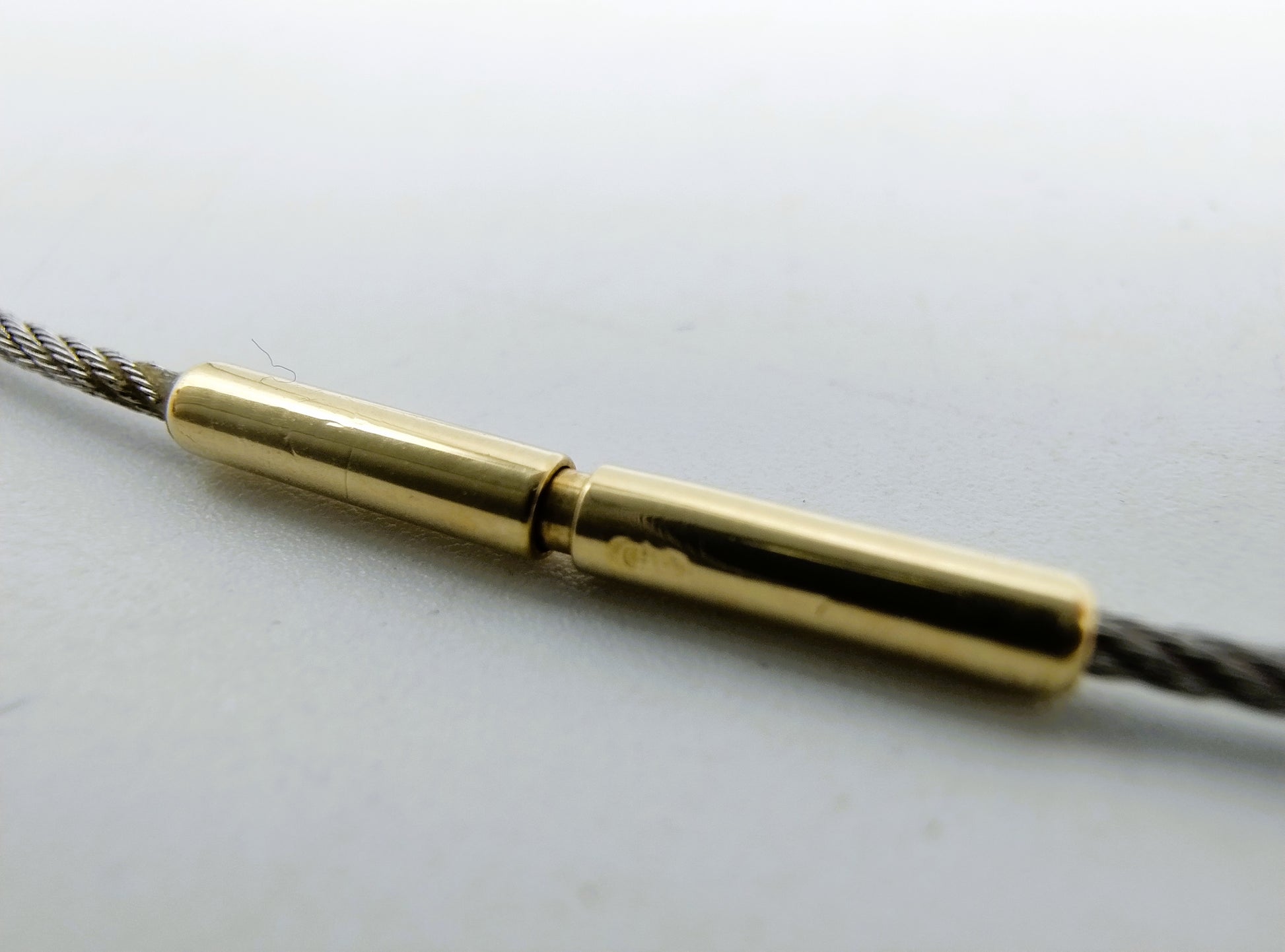 Die Halskette hat einen Goldverschluss mit der Prägung 585 für 14 Karat Gold. Auch geprüft mit Meisterzeichen: G+ (?)