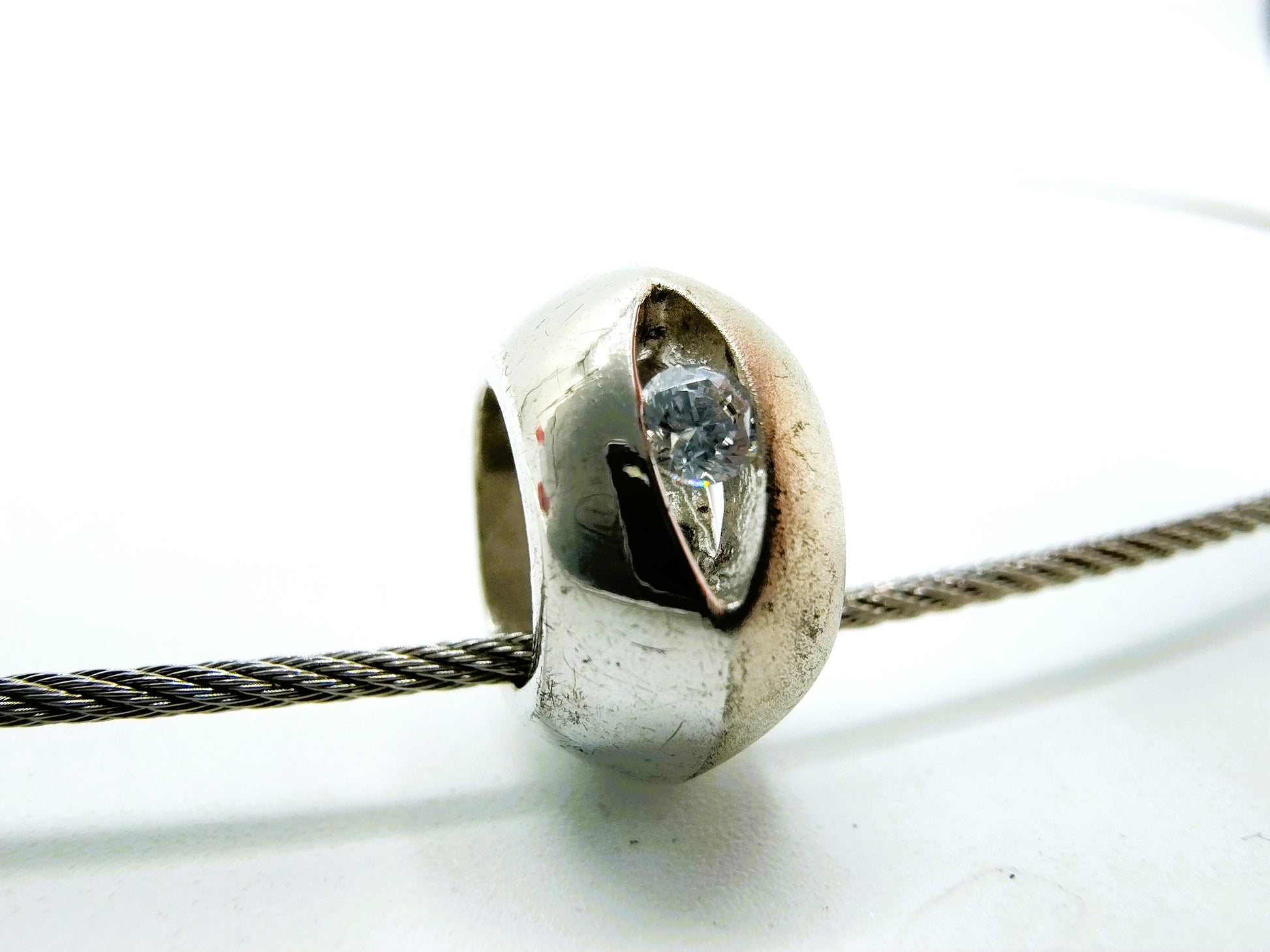 Metallkette mit einem silbernen Anhänger mit Zirkonia, gekennzeichnet mit 925 für Silber erster Güteklasse.