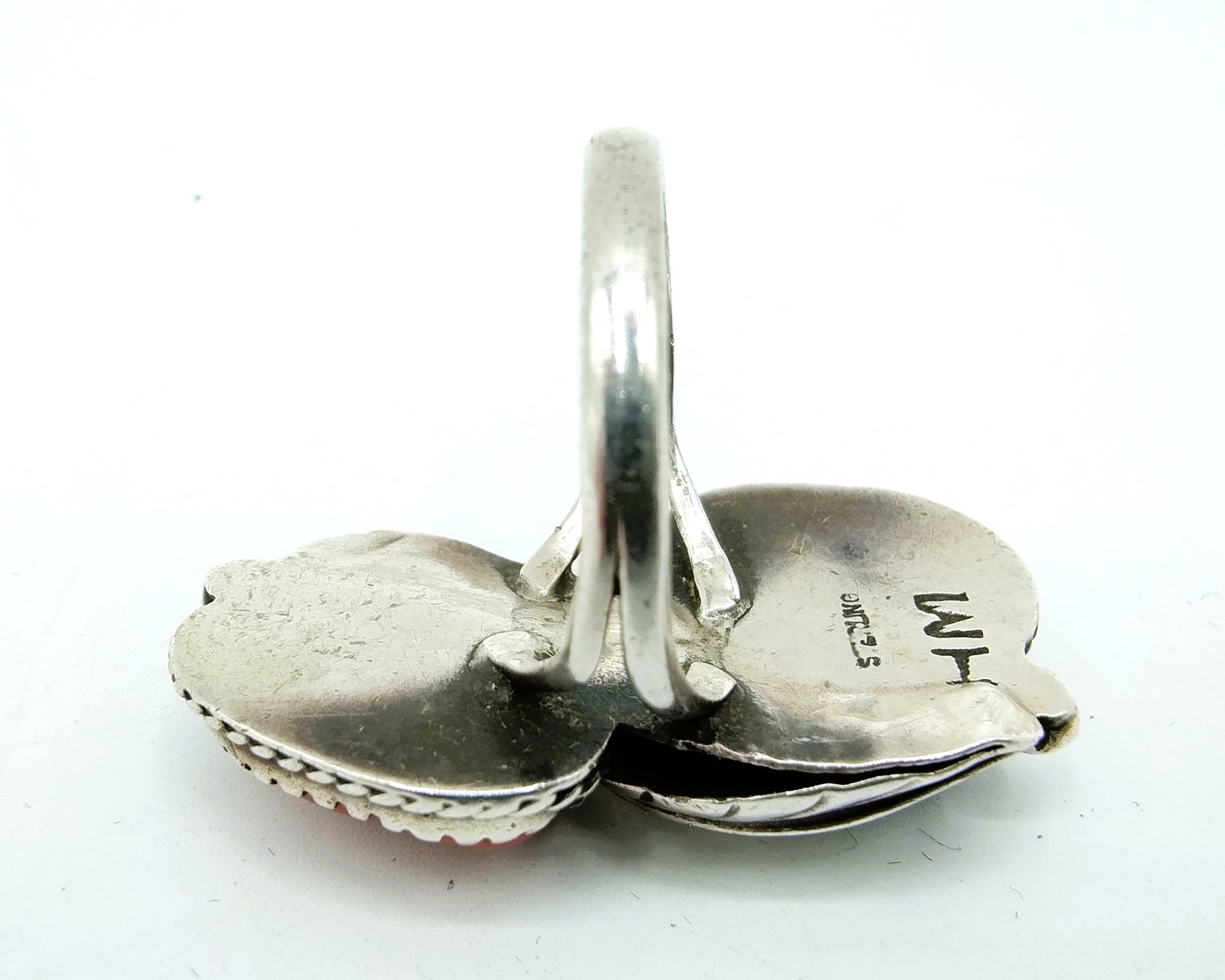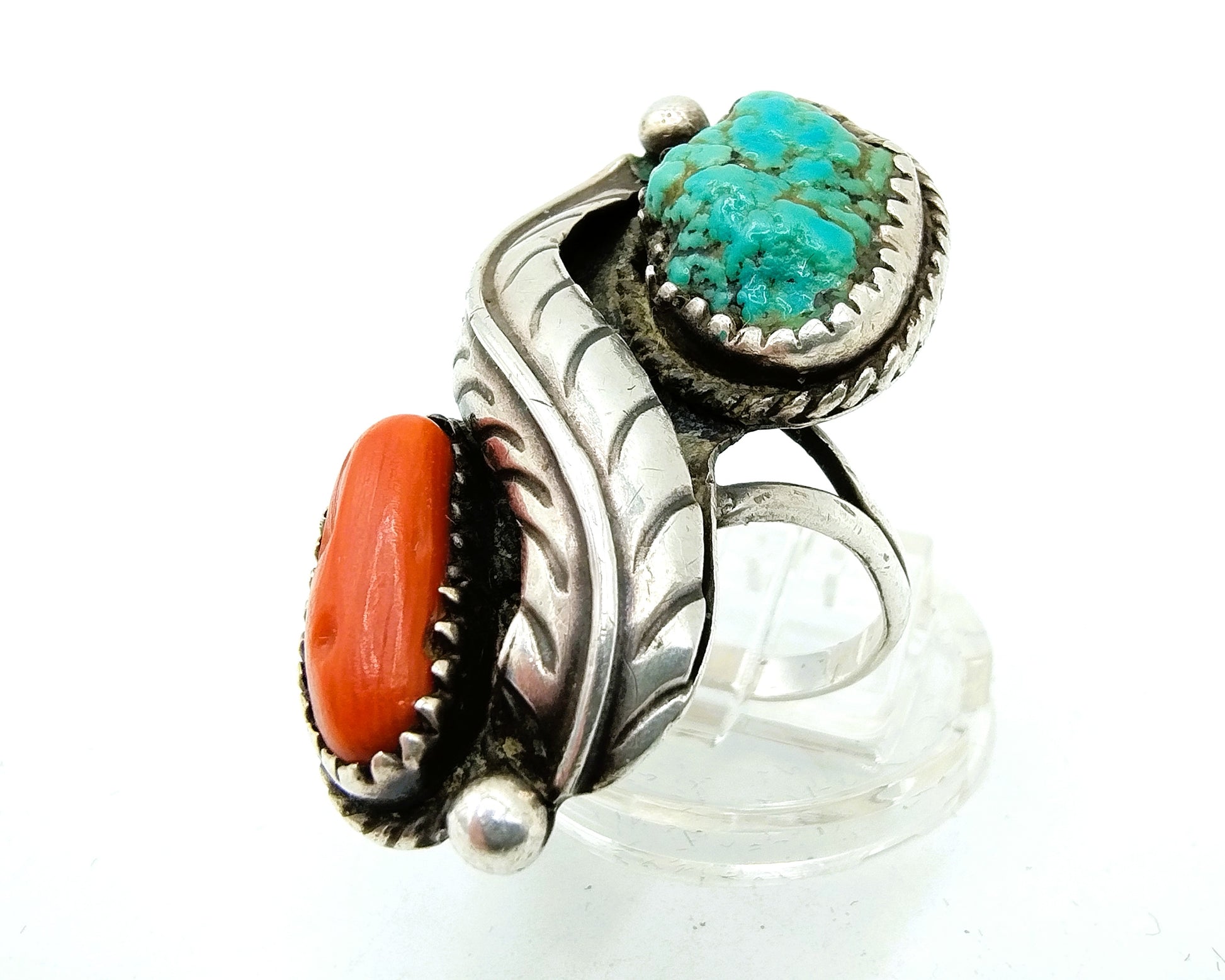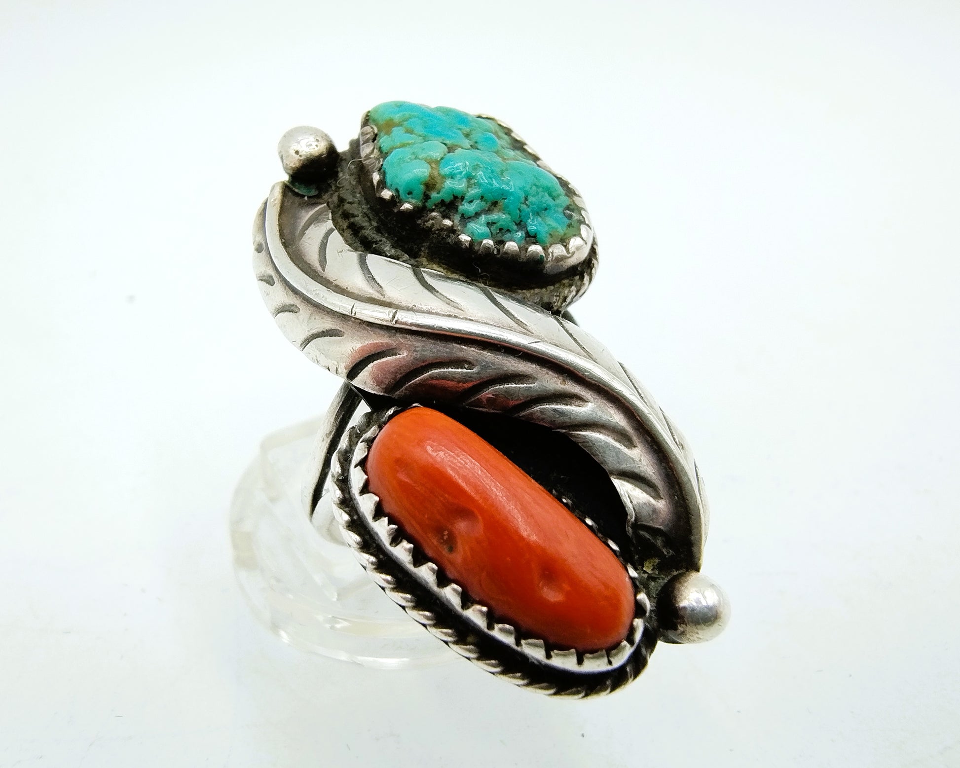 Vintage Navajo-Ring aus Sterlingsilber aus dem Südwesten der USA mit Koralle und Türkis.