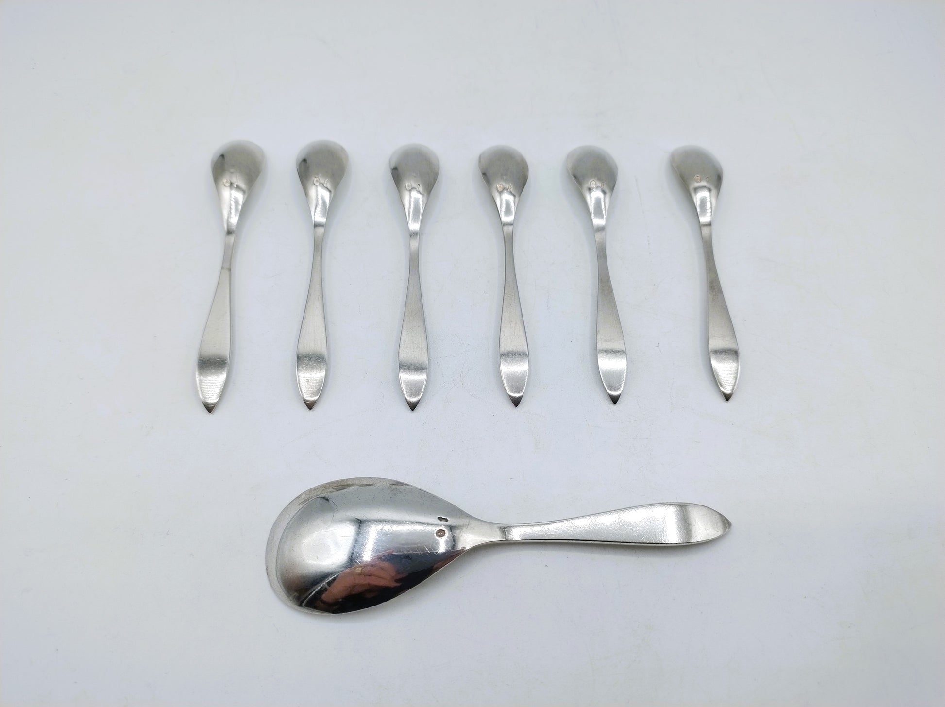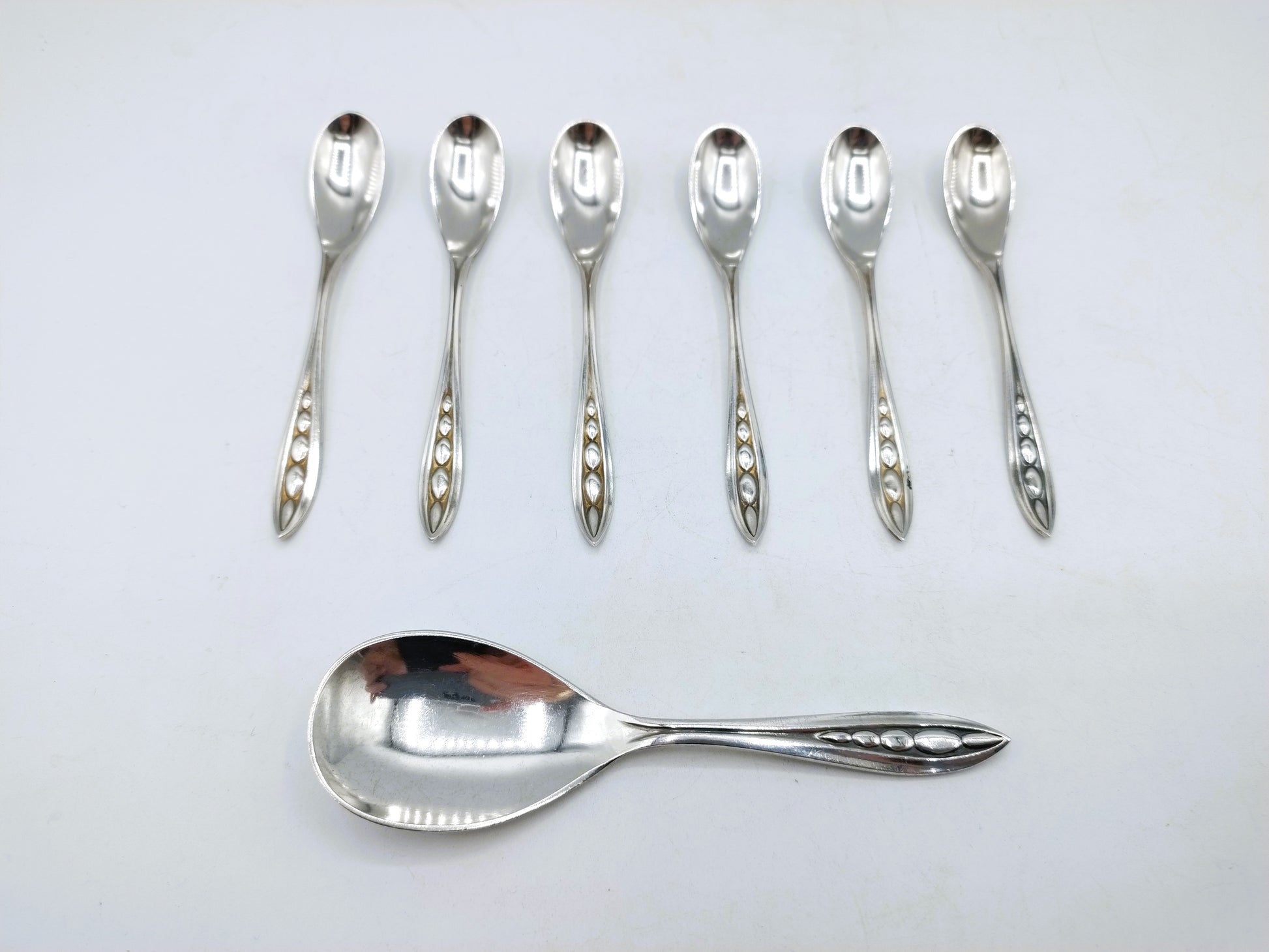 Set aus silbernen Teelöffeln (6) und einem Zuckerlöffel, Gerritsen, van Kempen, Zeist, 20. Jahrhundert