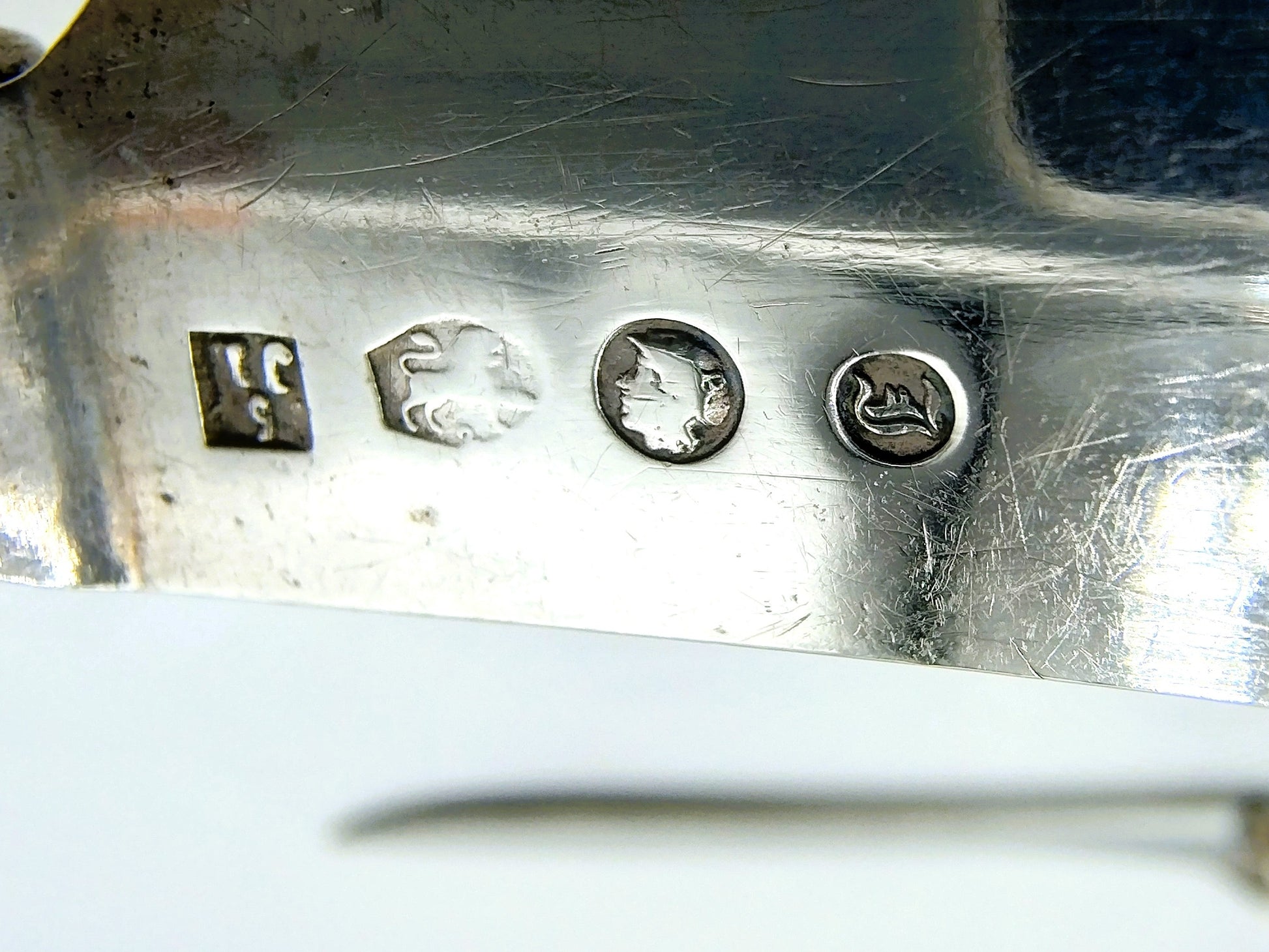 Sie sind mit dem zweiten Gütezeichen, dem Meisterzeichen 5JL, dem Bergmannskopf und dem Jahresbuchstaben I für 1893 versehen.