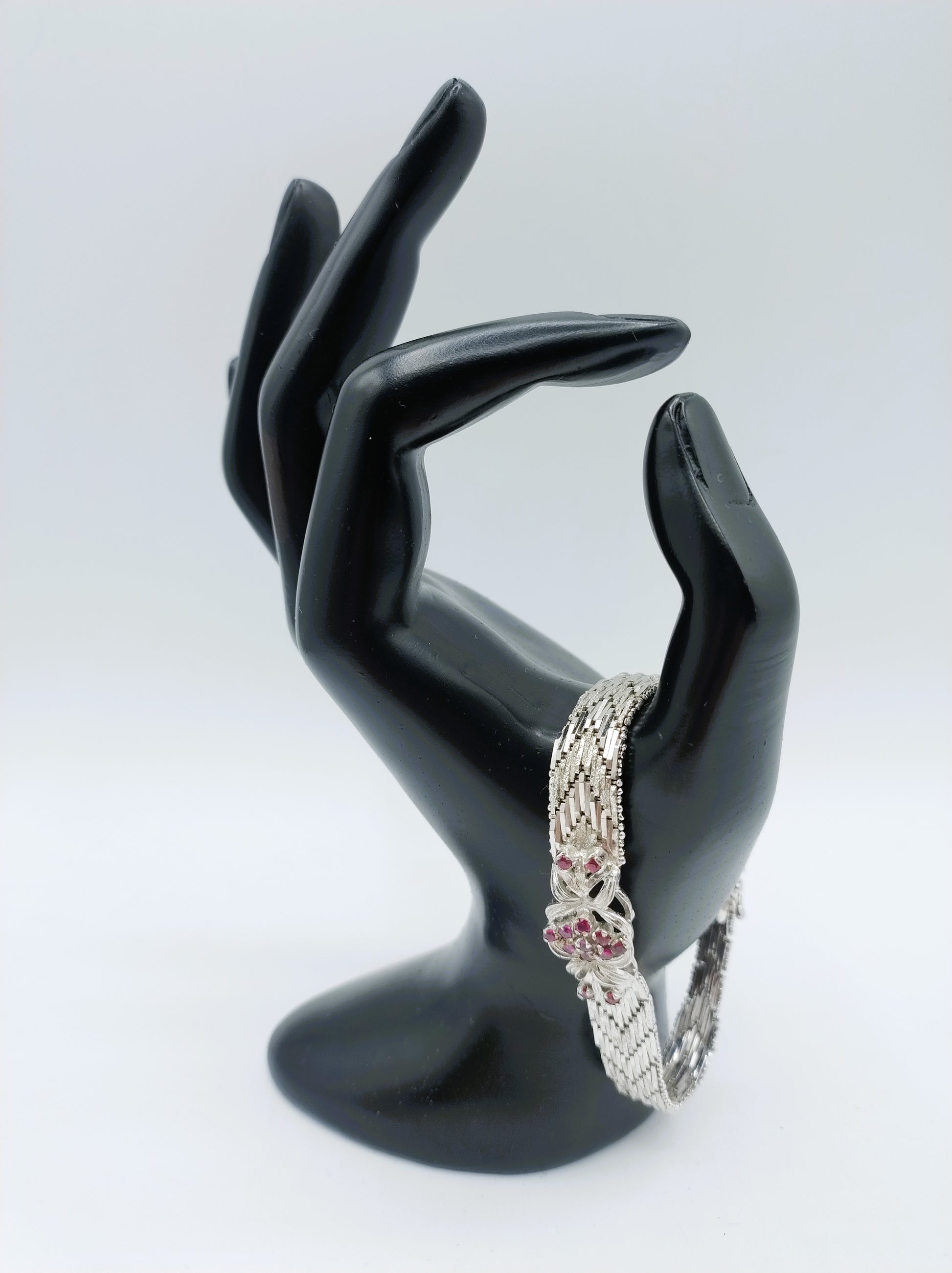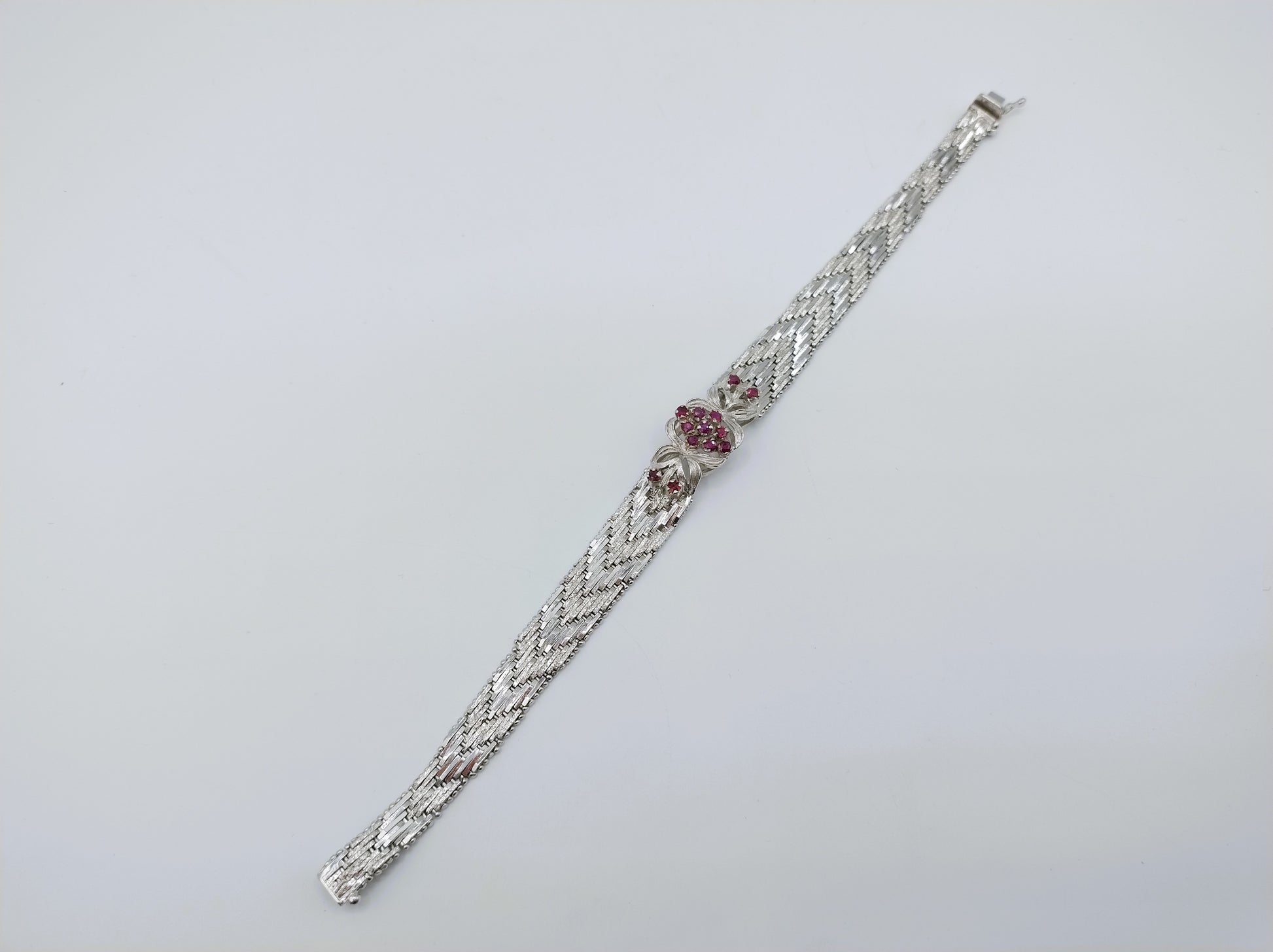 Vintage-Silberarmband mit roten Steinen, 18,5 cm.