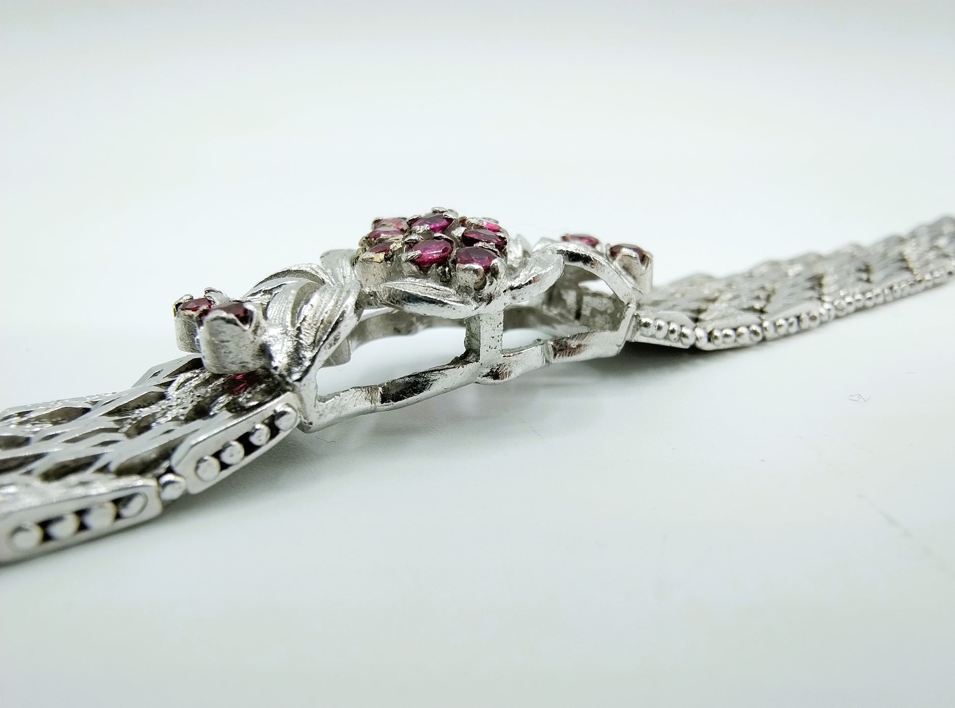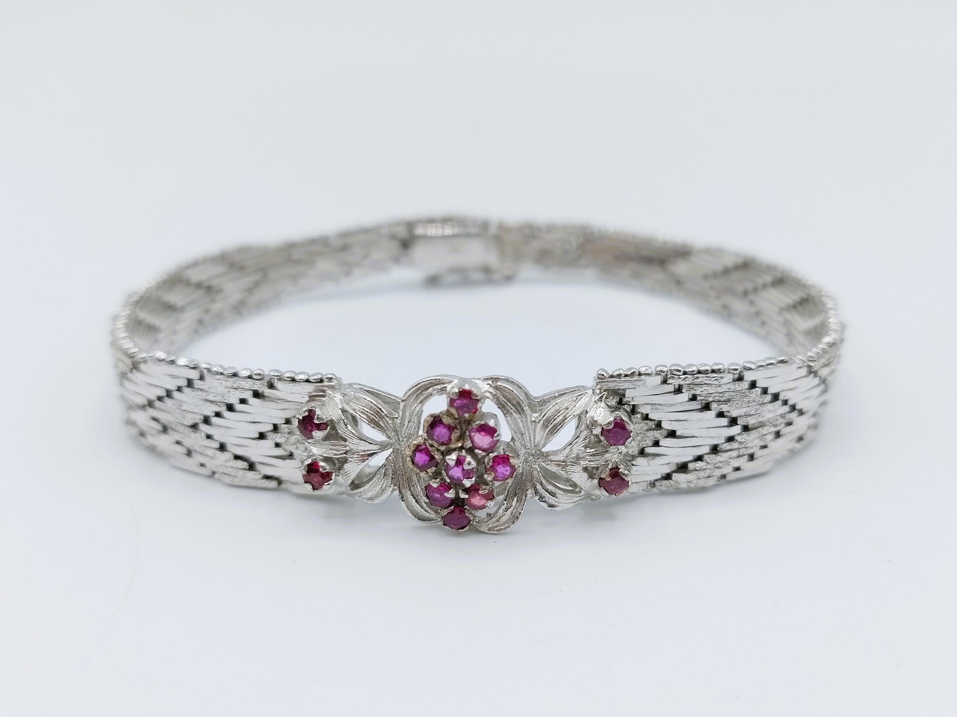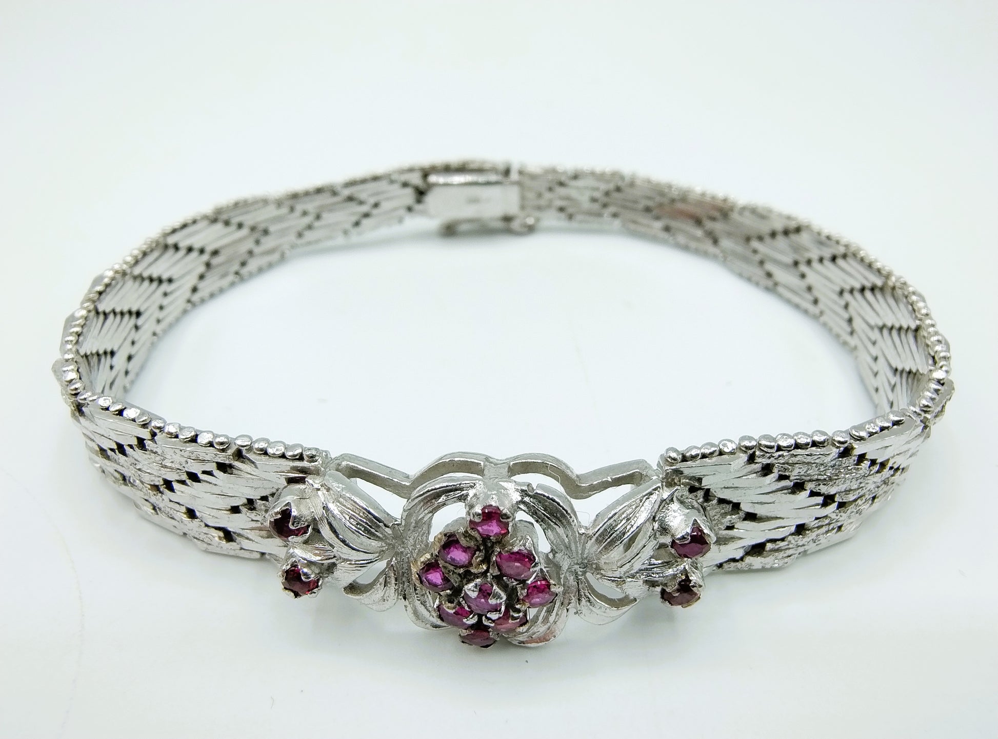 Vintage-Armband aus Silber, besetzt mit 13 roten Steinen.