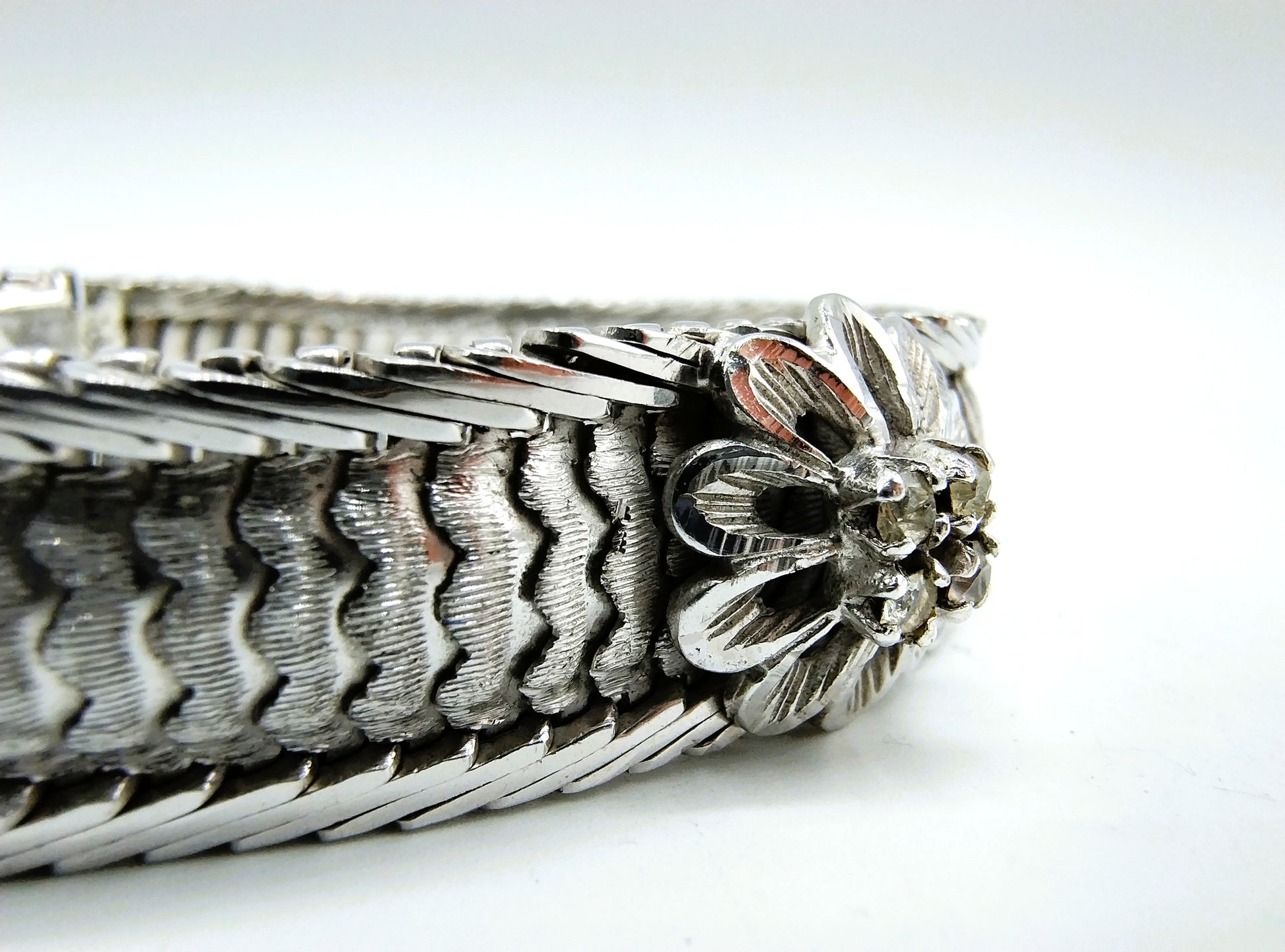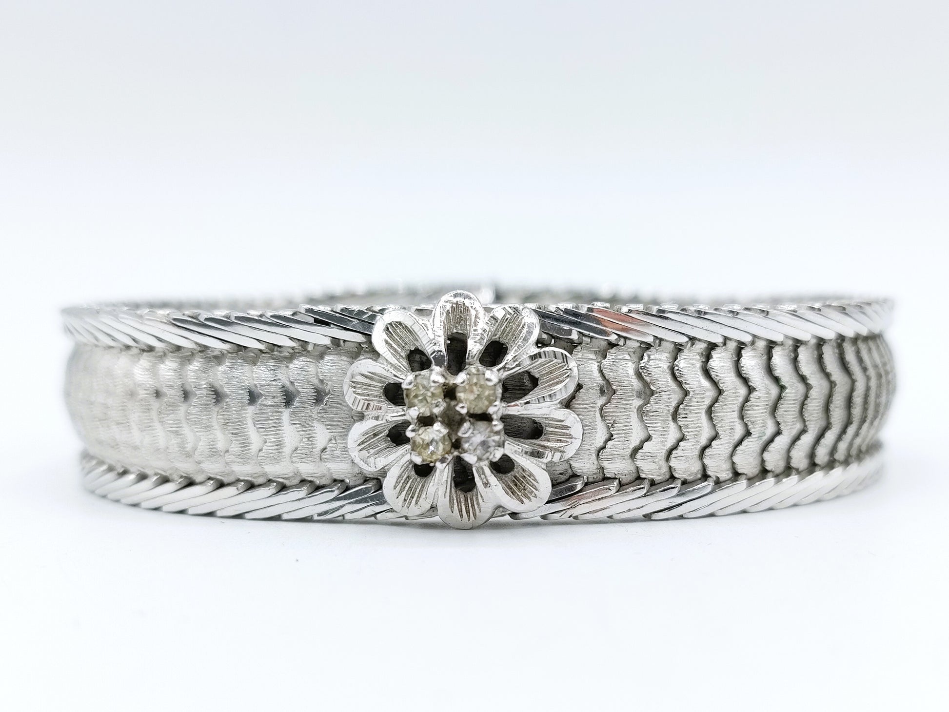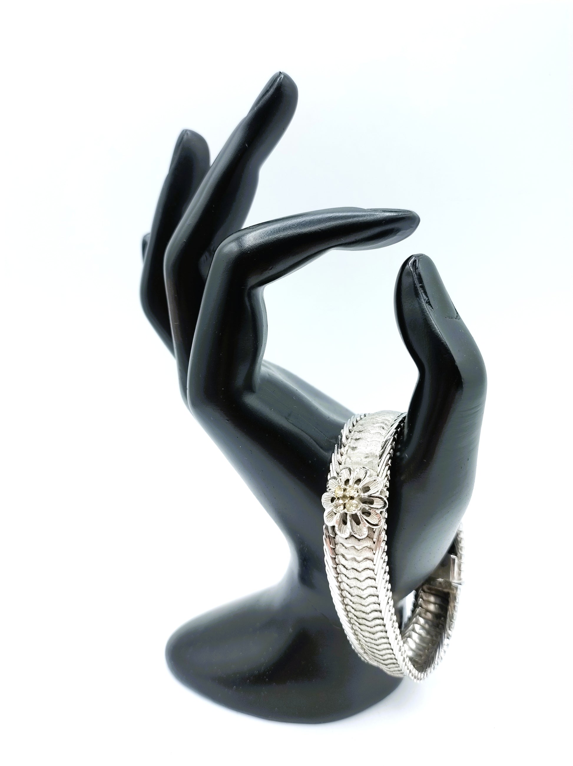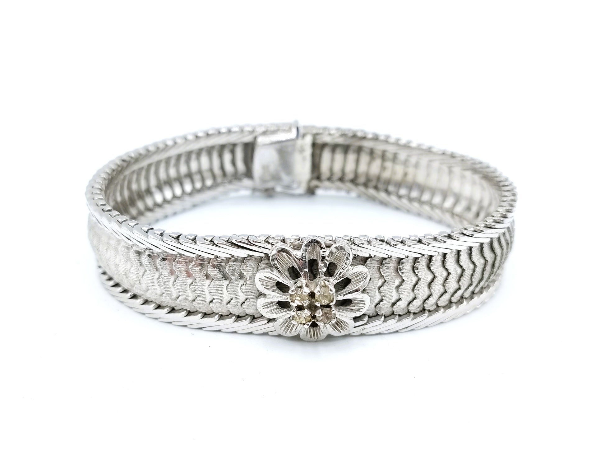 Vintage-Armband aus Silber mit einer Rosette und 4 Steinen in Chaton-Fassung.