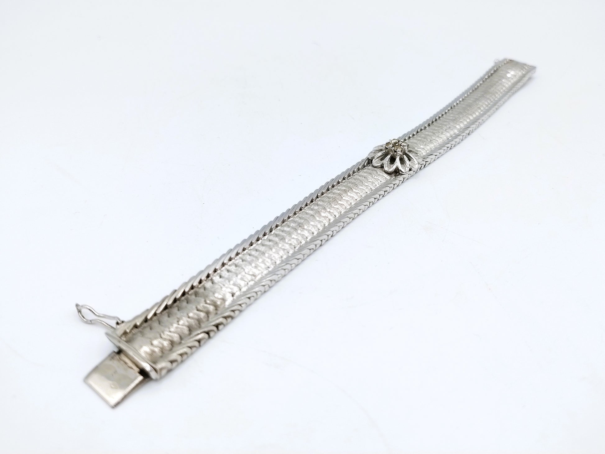 Vintage Silberarmband mit Rosette und Steinen, 19 cm.