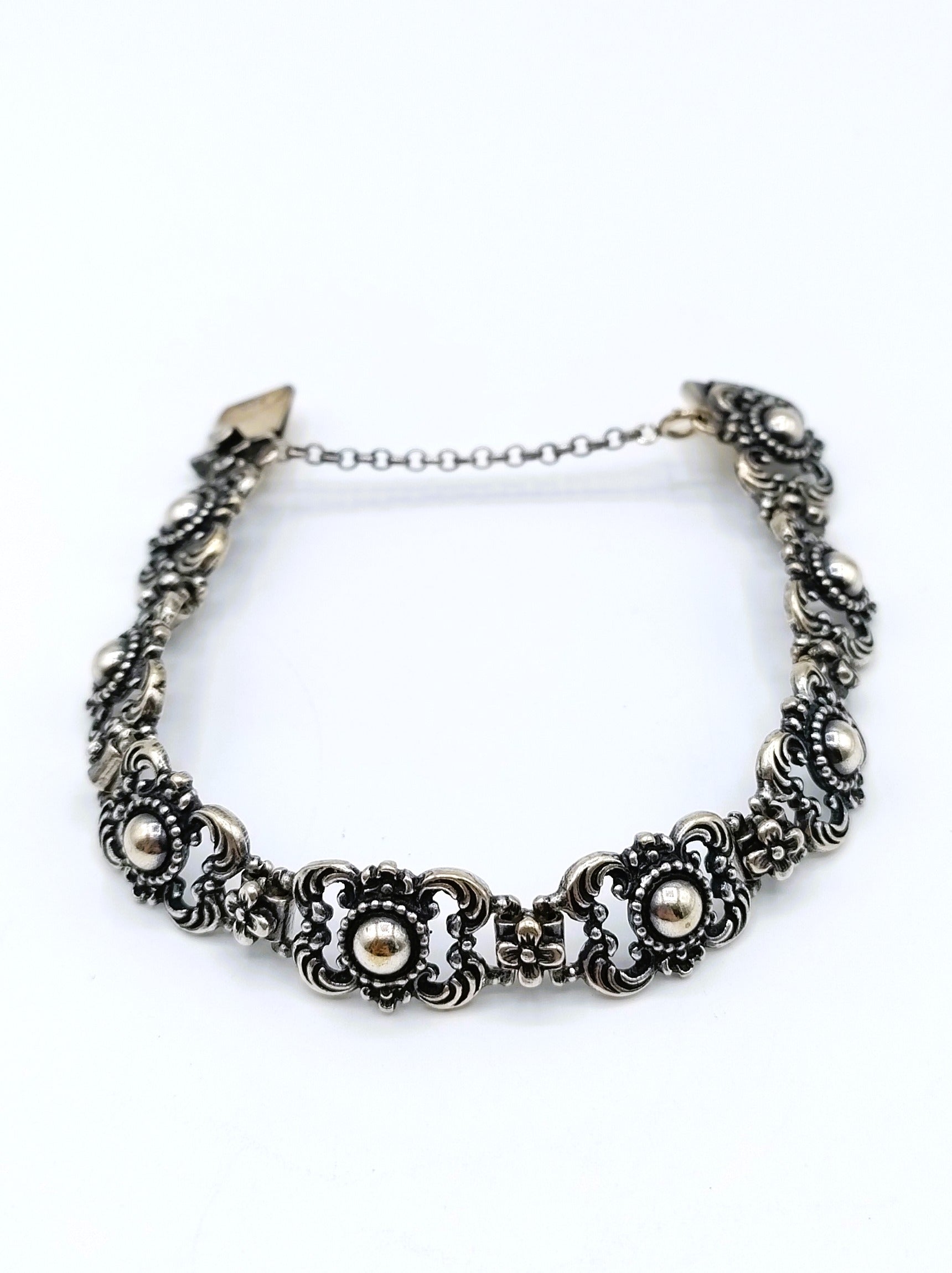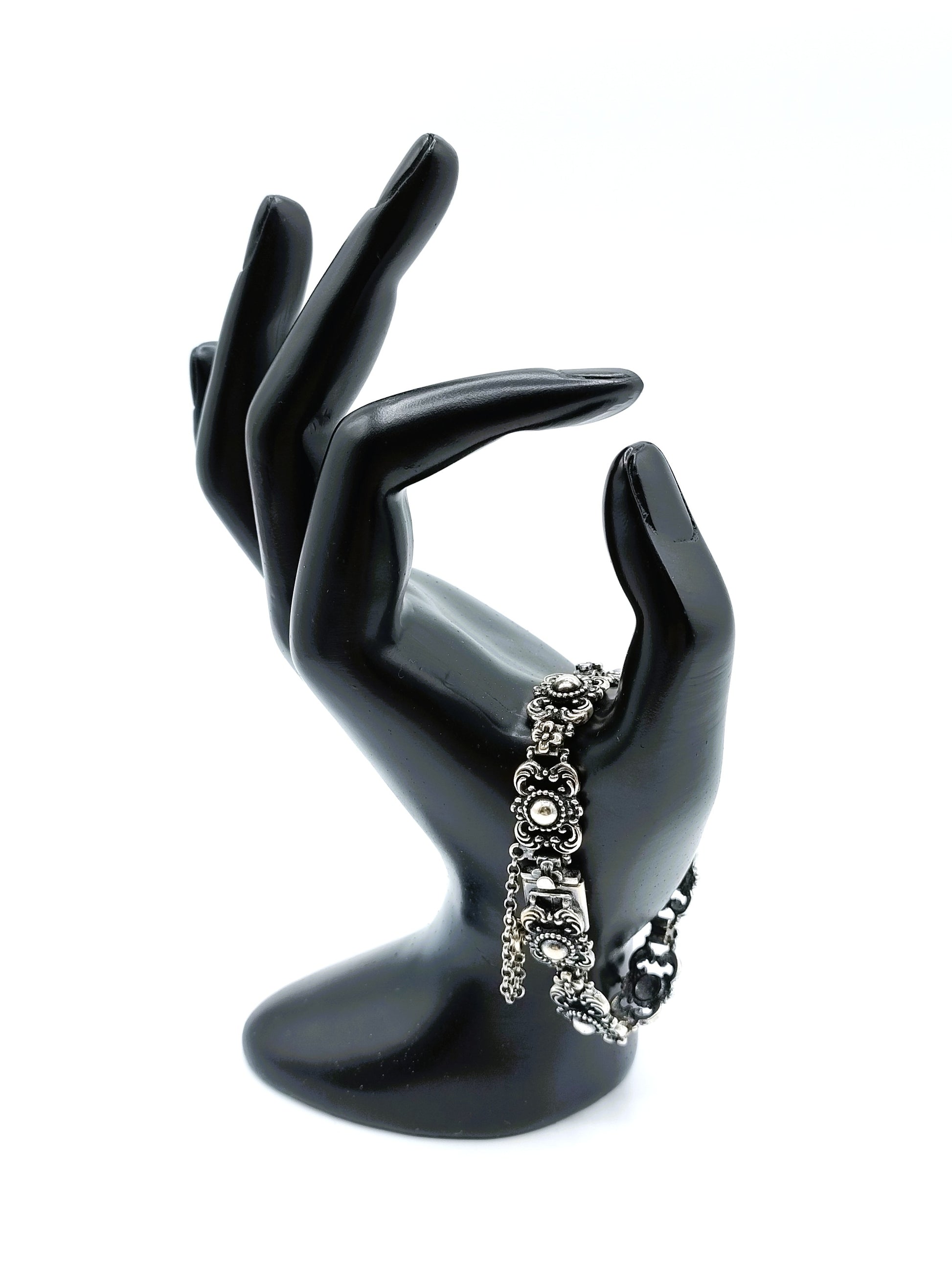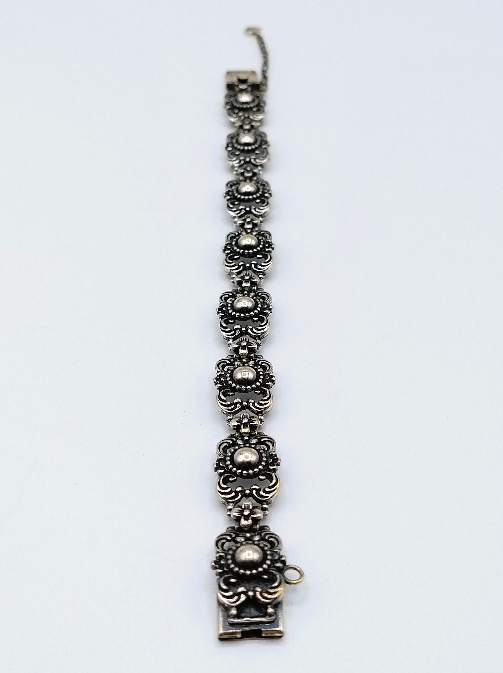 Vintage-Gliederarmband aus Silber mit Blumen, 17 cm