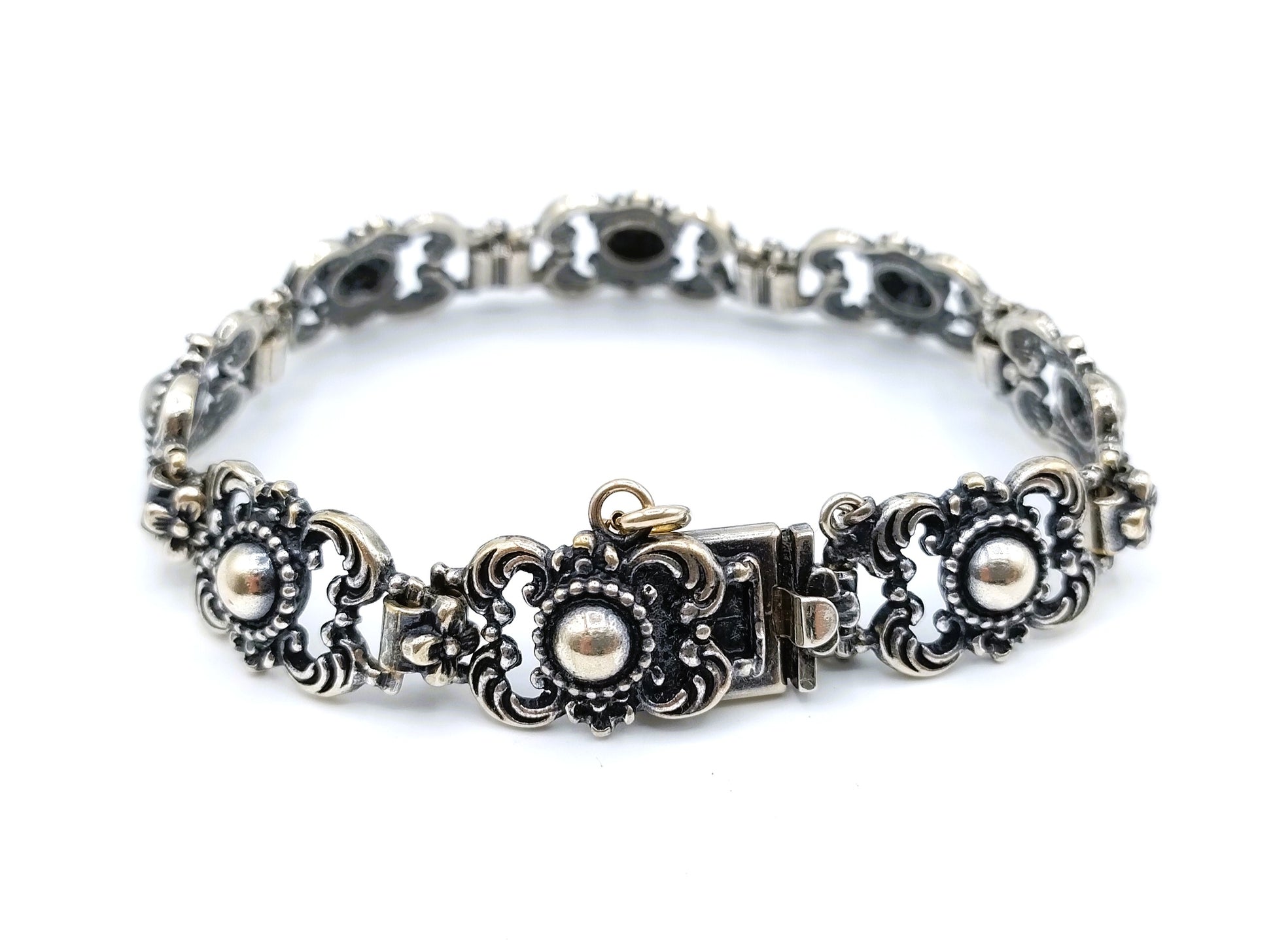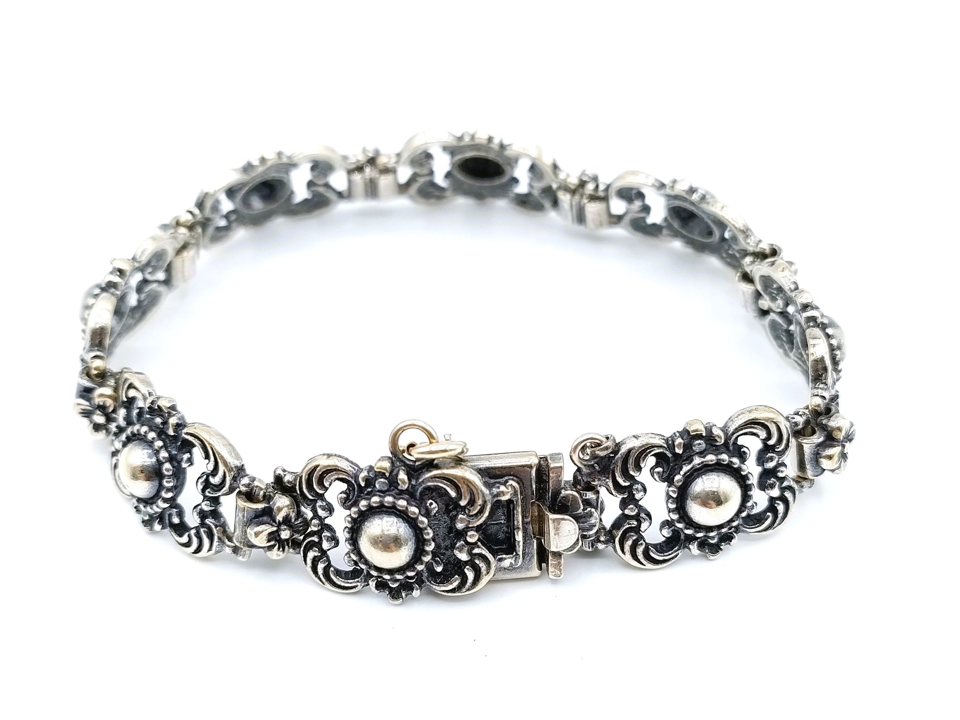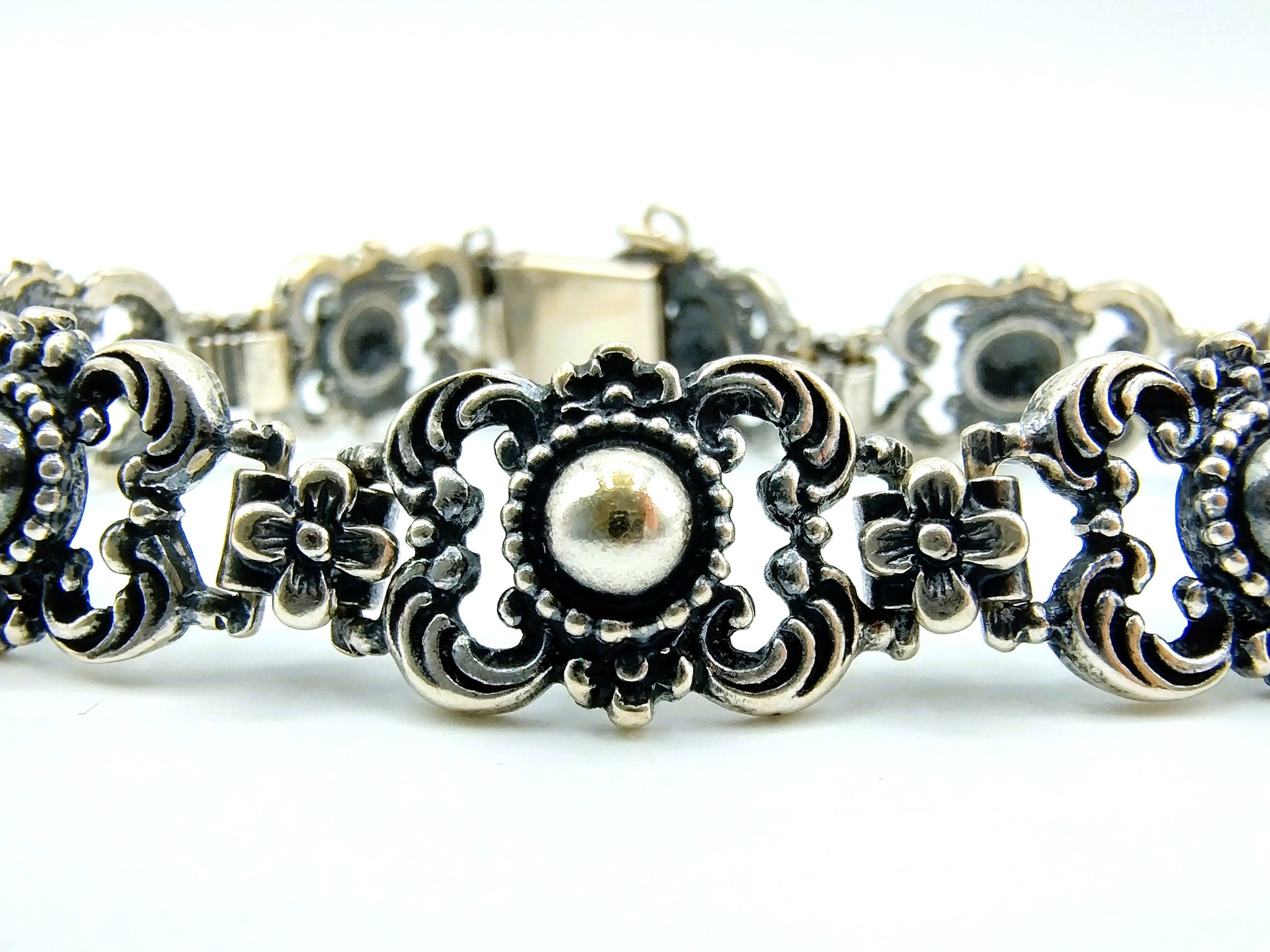 Vintage-Gliederarmband aus Silber mit Blumen, 17 cm