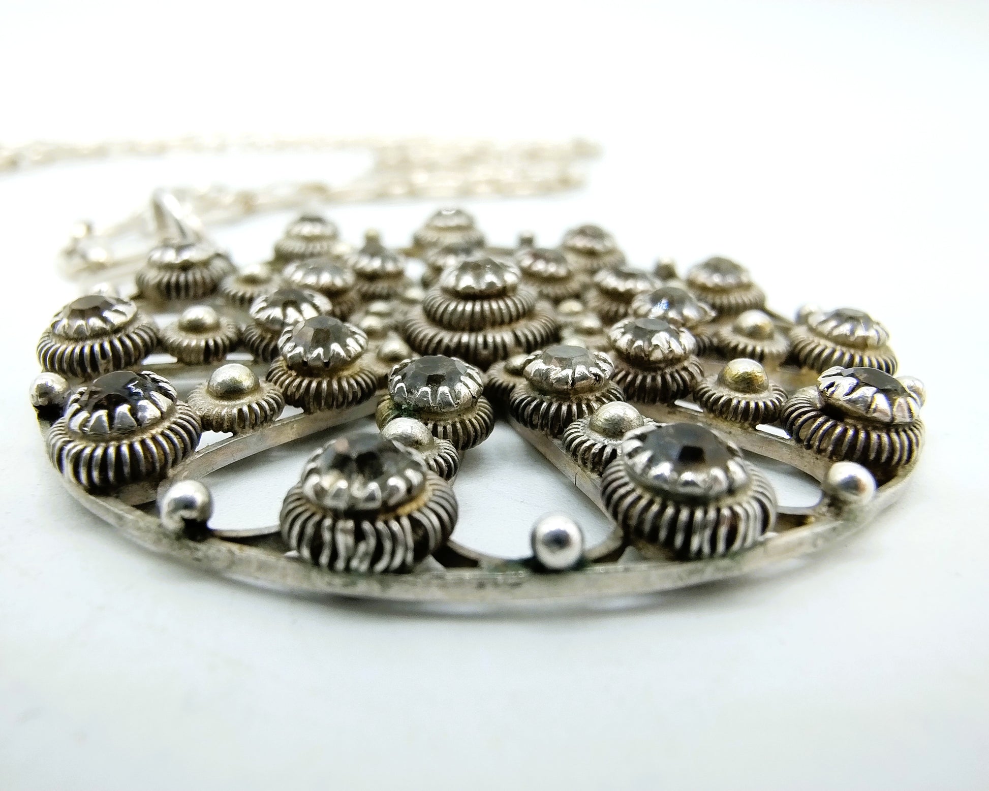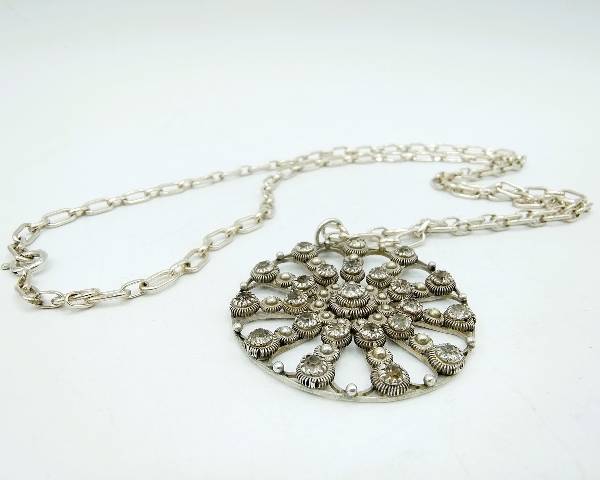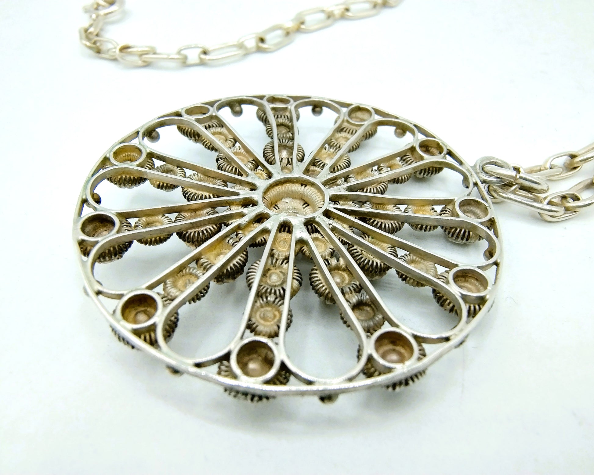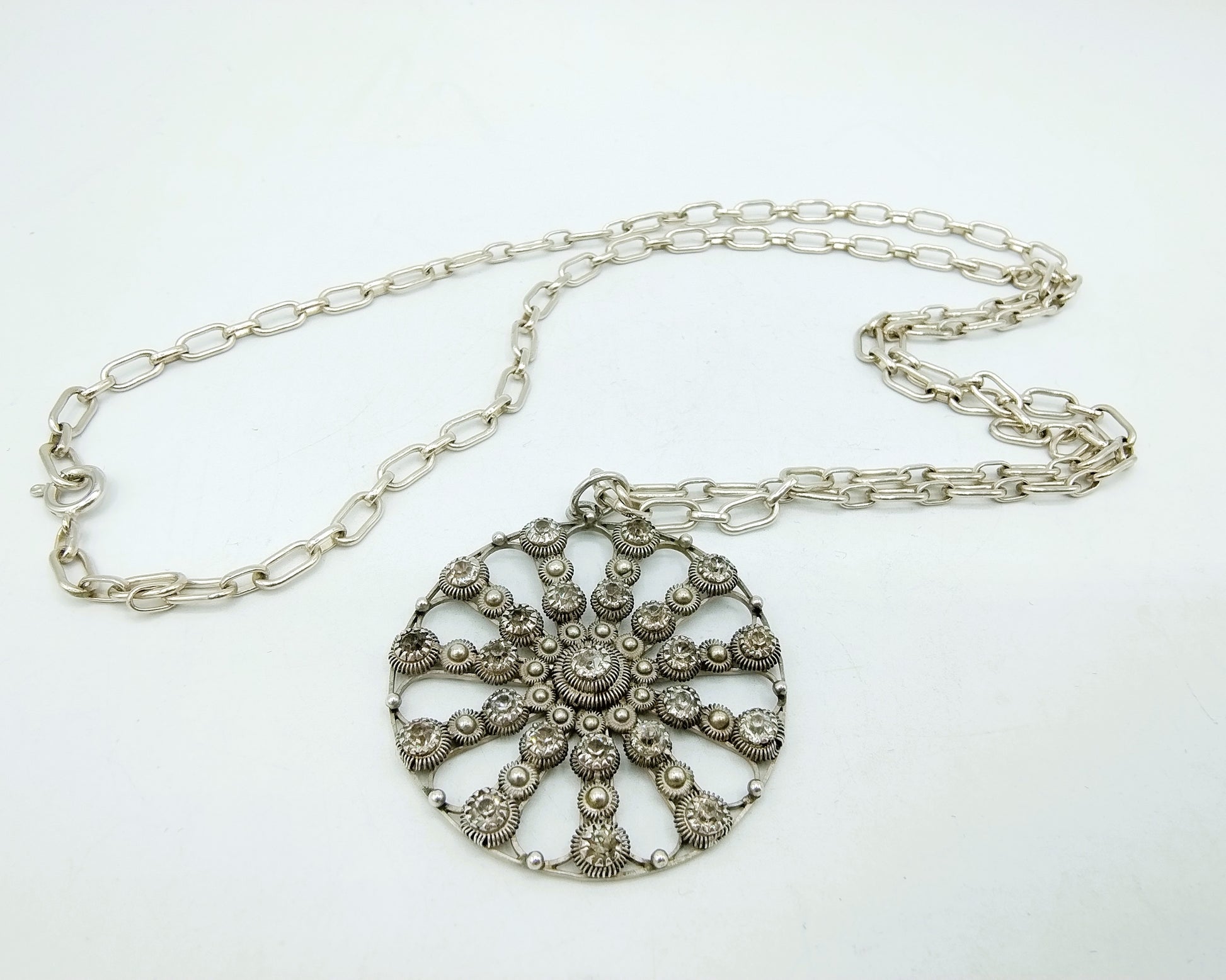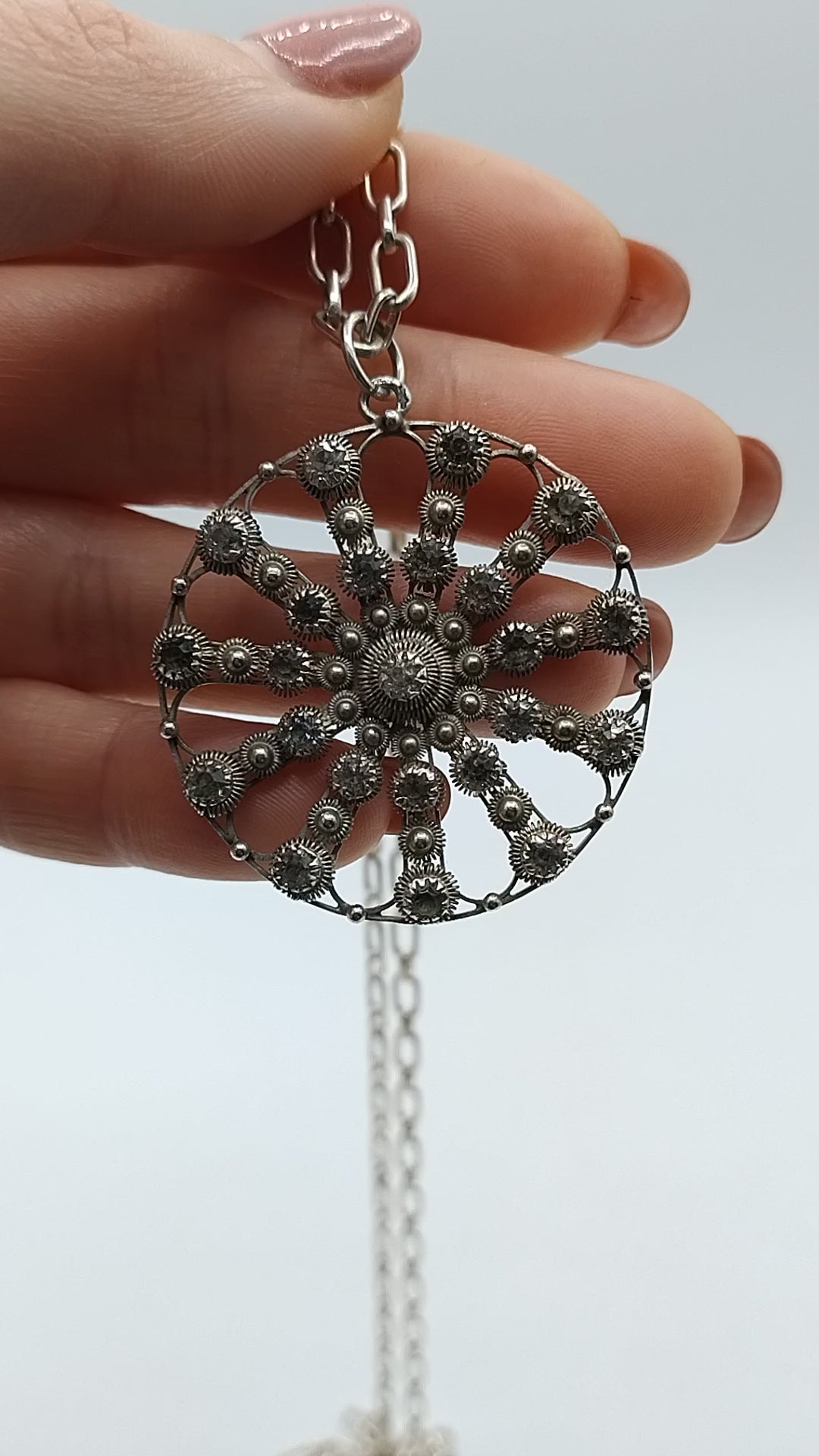 Wunderschöner Silberanhänger an Kette, der Durchmesser des Anhängers beträgt 4 cm.