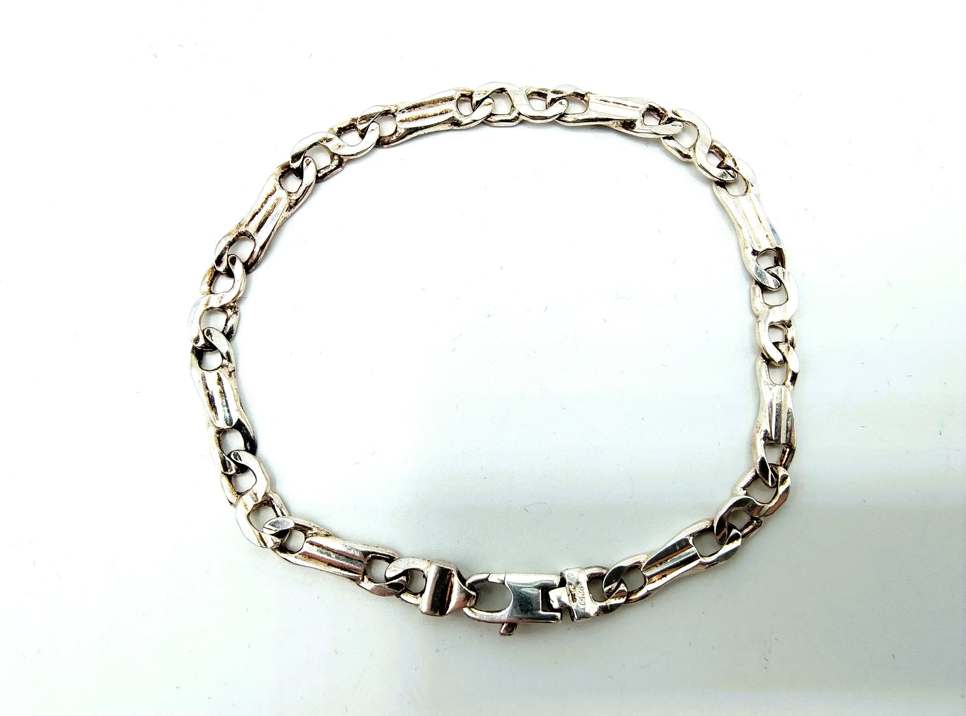 Stabiles Armband mit Silberverschluss. Breite des Glieds: 0,5 cm.