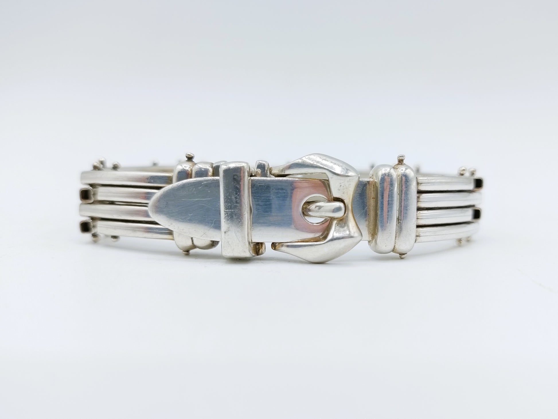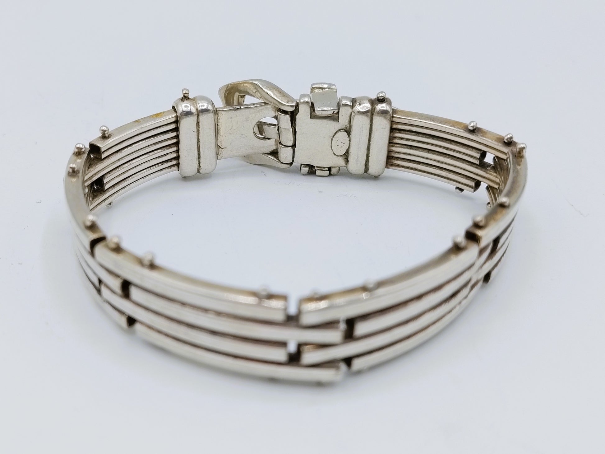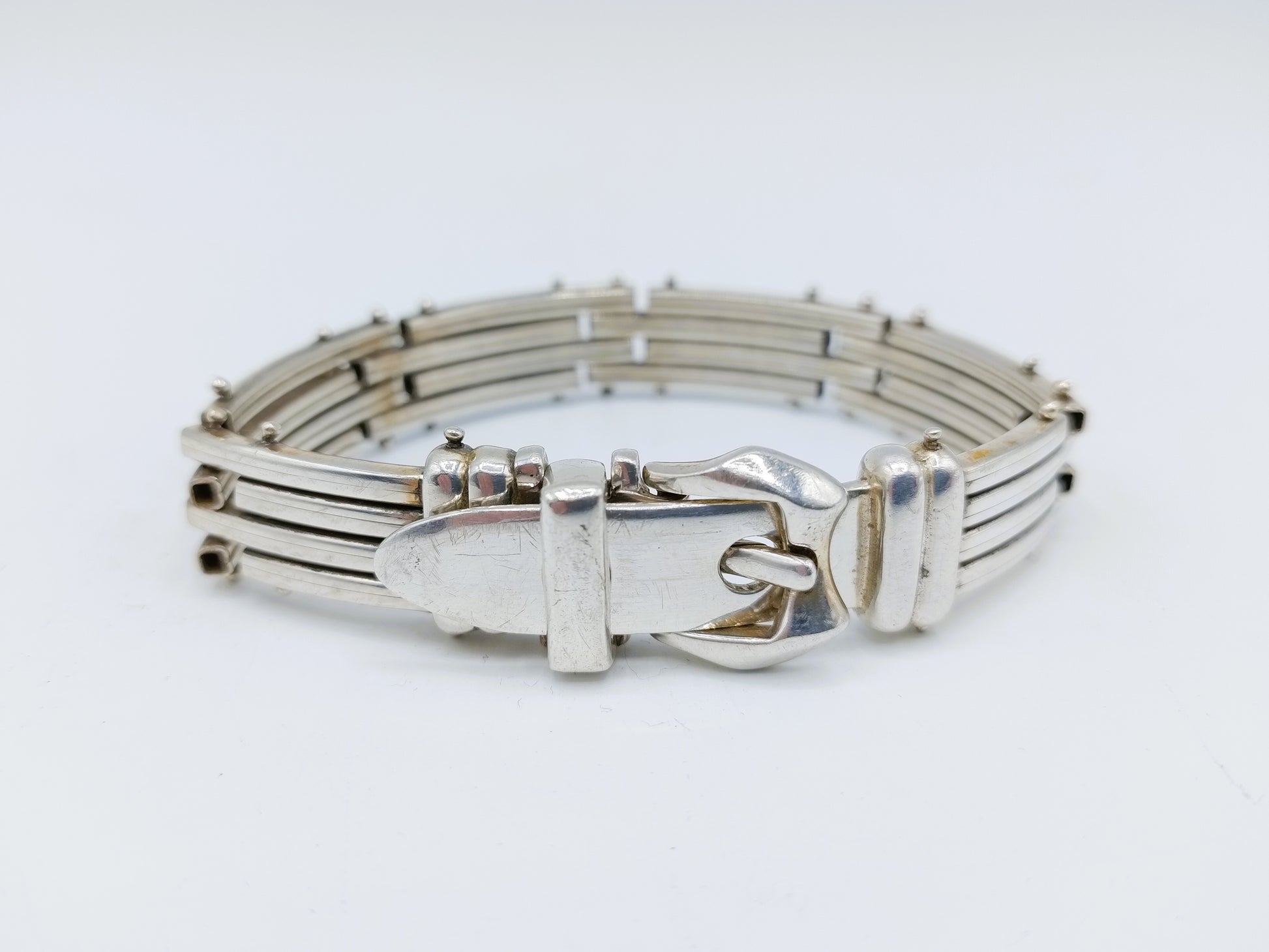 Vintage-Silberarmband aus ineinandergreifenden Designergliedern mit Schnallenverschluss.
