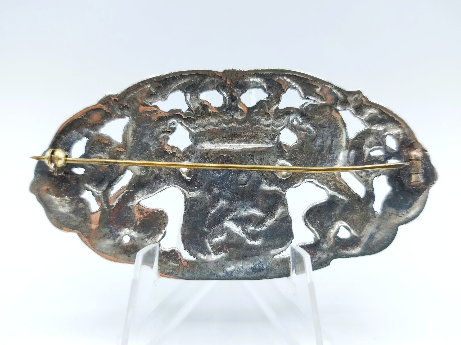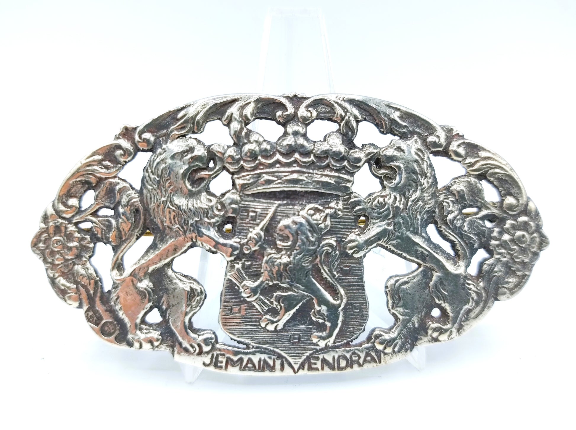 Silberne Vintage-Brosche mit niederländischem Wappen, hergestellt von der Fa. Dahlie aus Amsterdam. Die Meistermarke wurde zwischen 1920 und 1958 verwendet.
