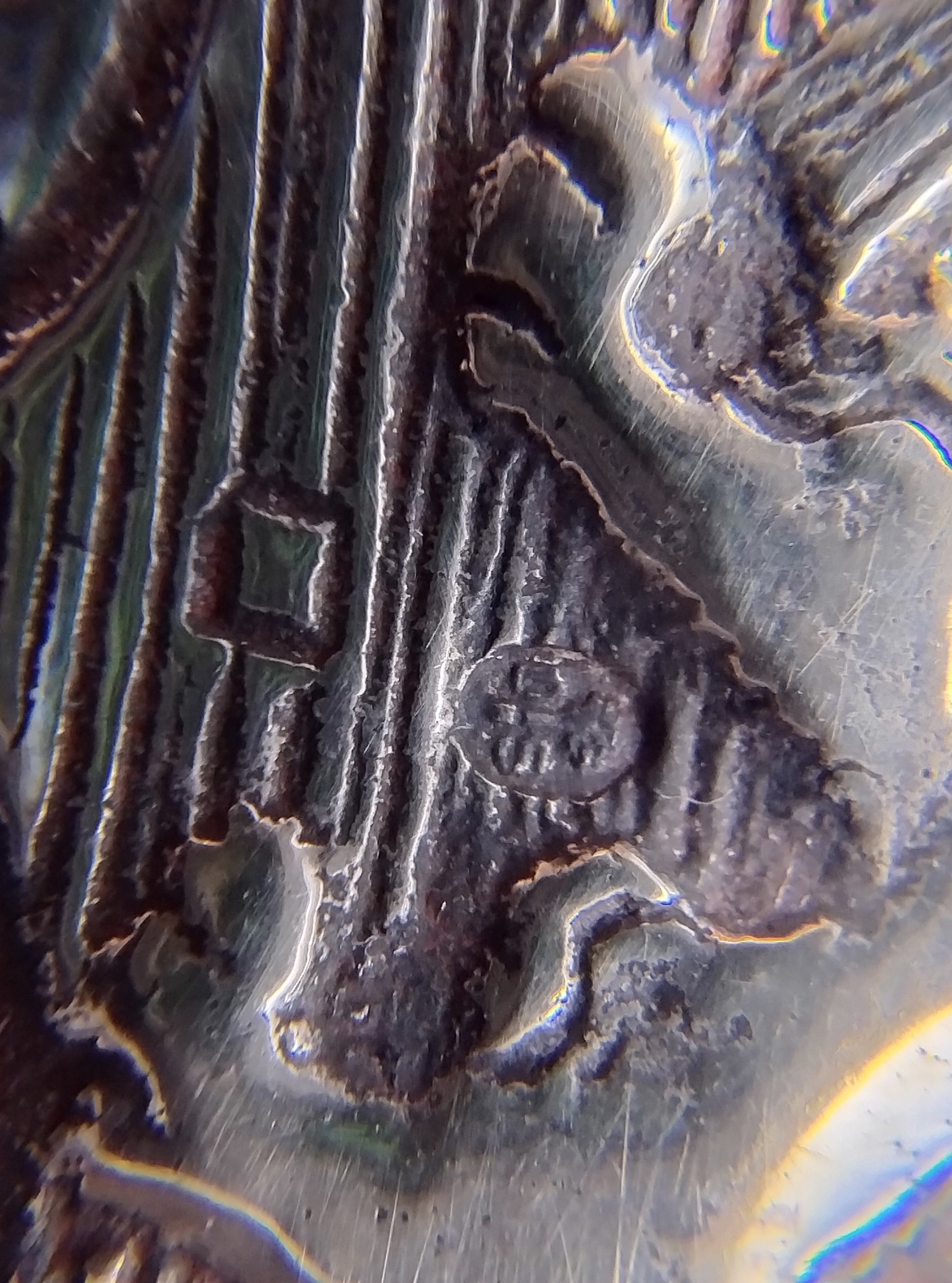 Die Brosche ist mit der Meistermarke D Baum S, dem zweiten Gütezeichen (835/1000), dem Minerva-Kopf und dem Jahresbuchstaben i für 1943 versehen. (Mitten im Zweiten Weltkrieg und somit ein Akt des Widerstands)