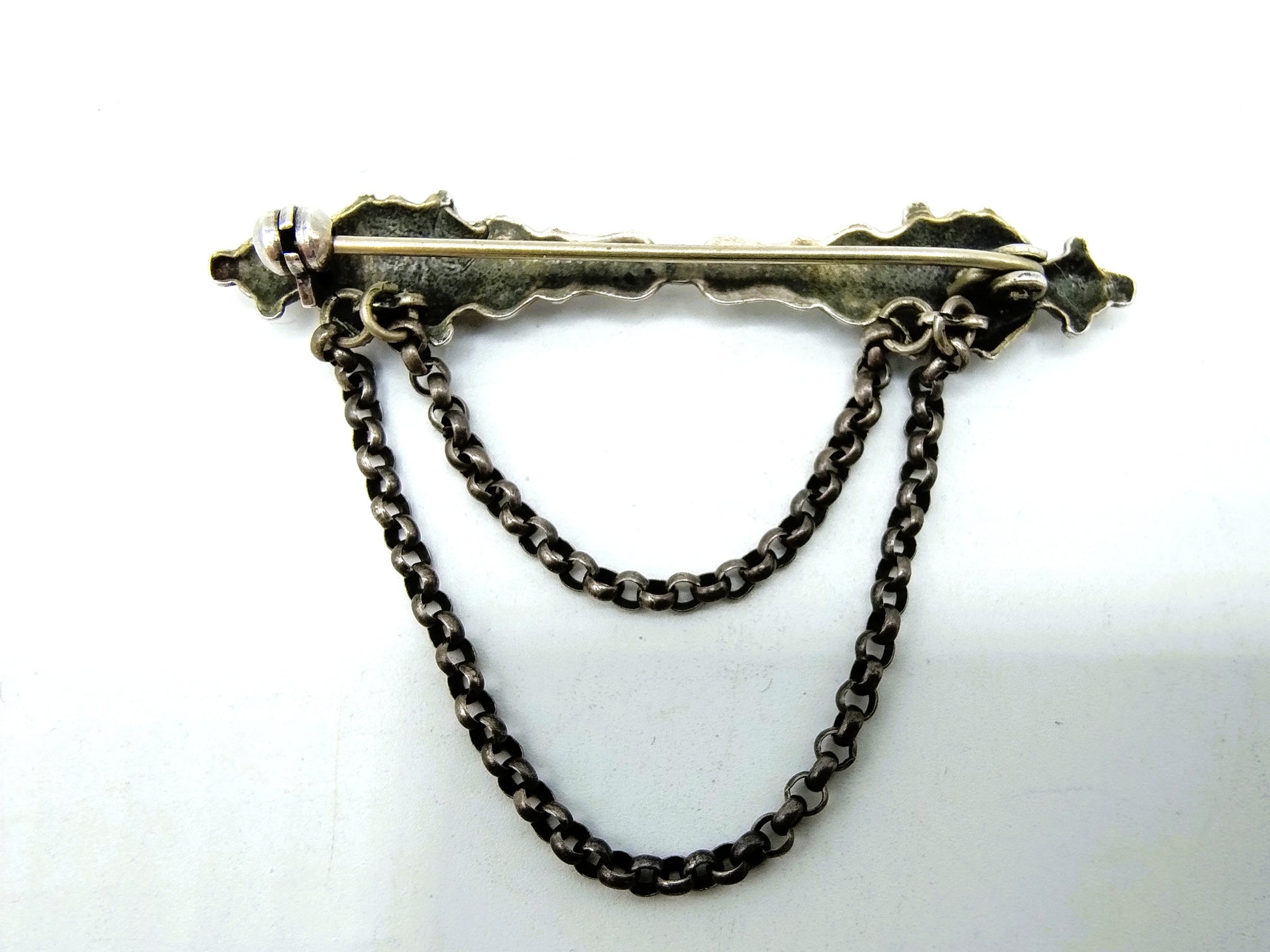Die Brosche ist punziert mit Meistermarke, Krone N10 und einem Schwert.