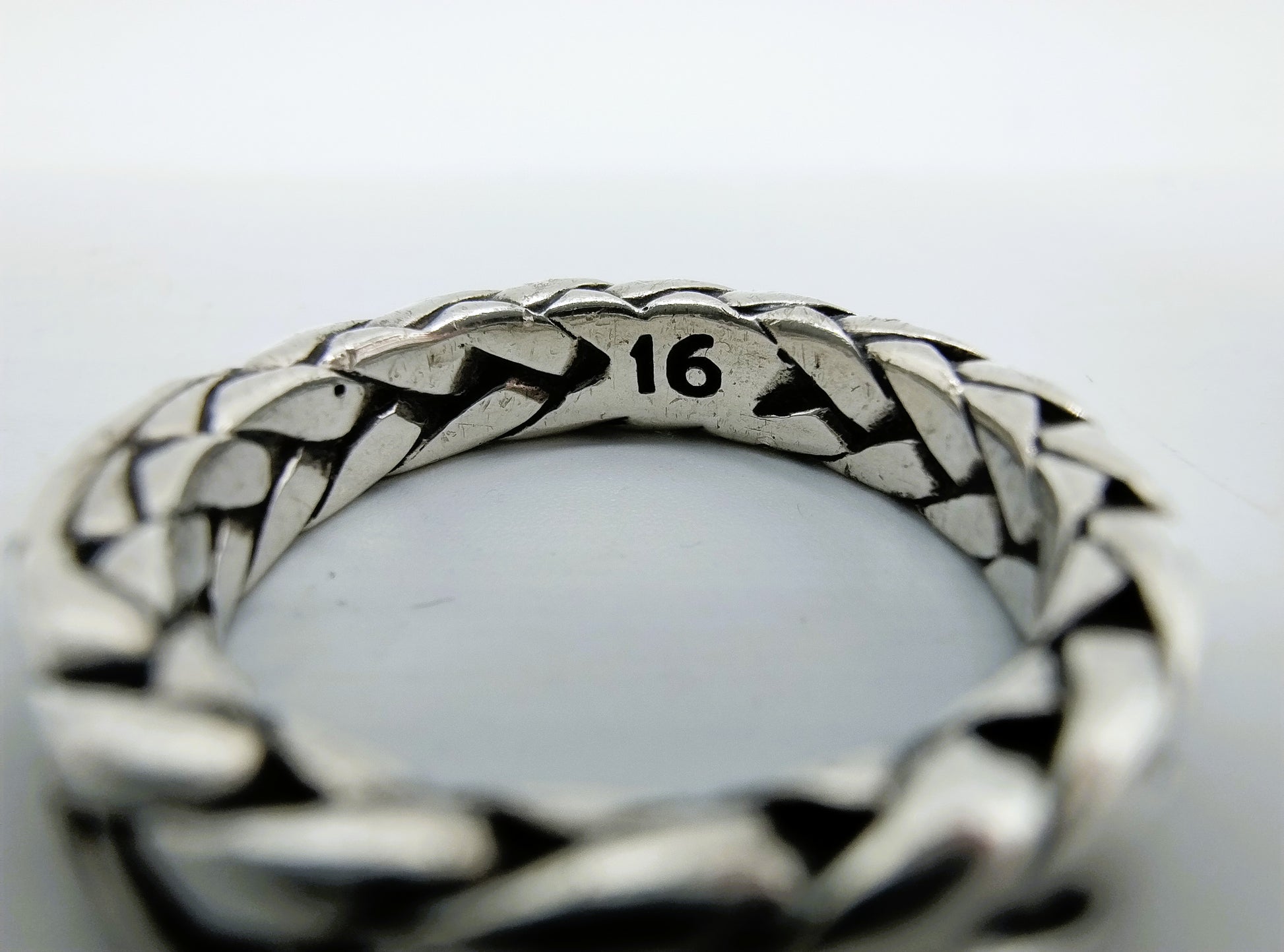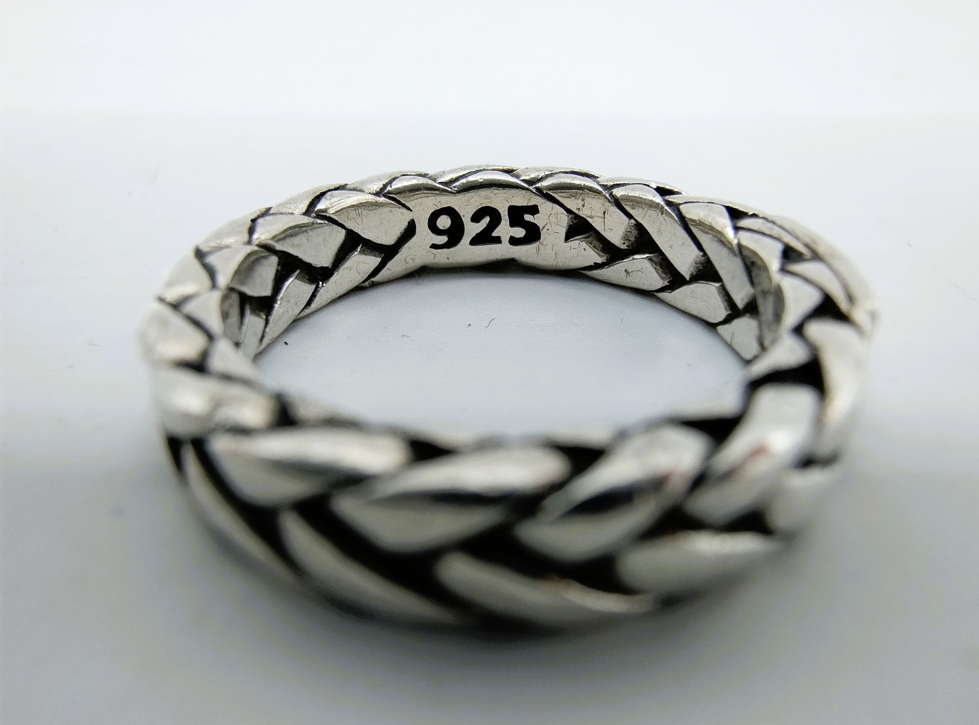 Der Ring ist mit 925 für Silber 1. Güteklasse und 16 für die Ringgröße gekennzeichnet.