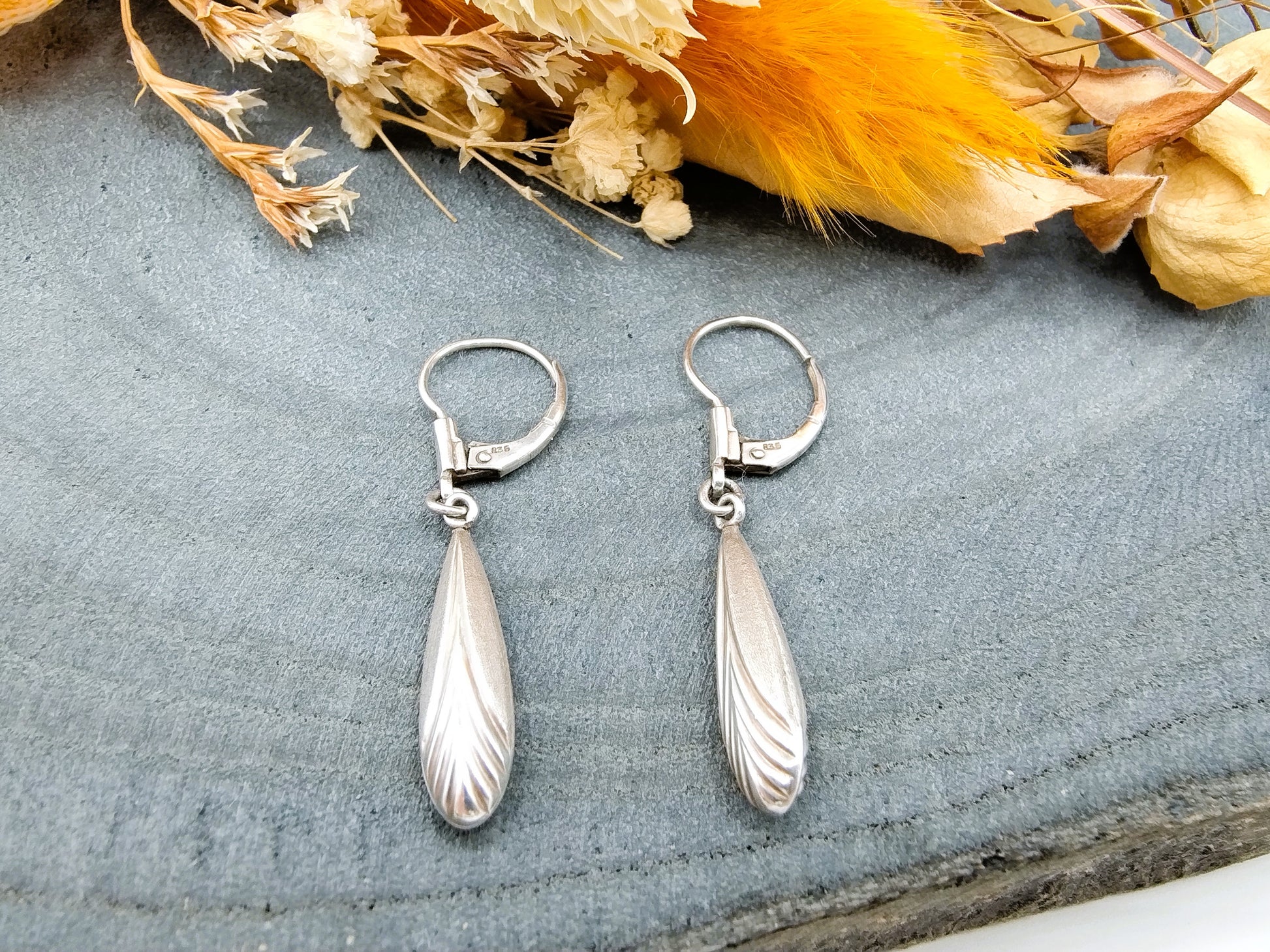 Silberne Ohrringe mit filigraner Metallarbeit.