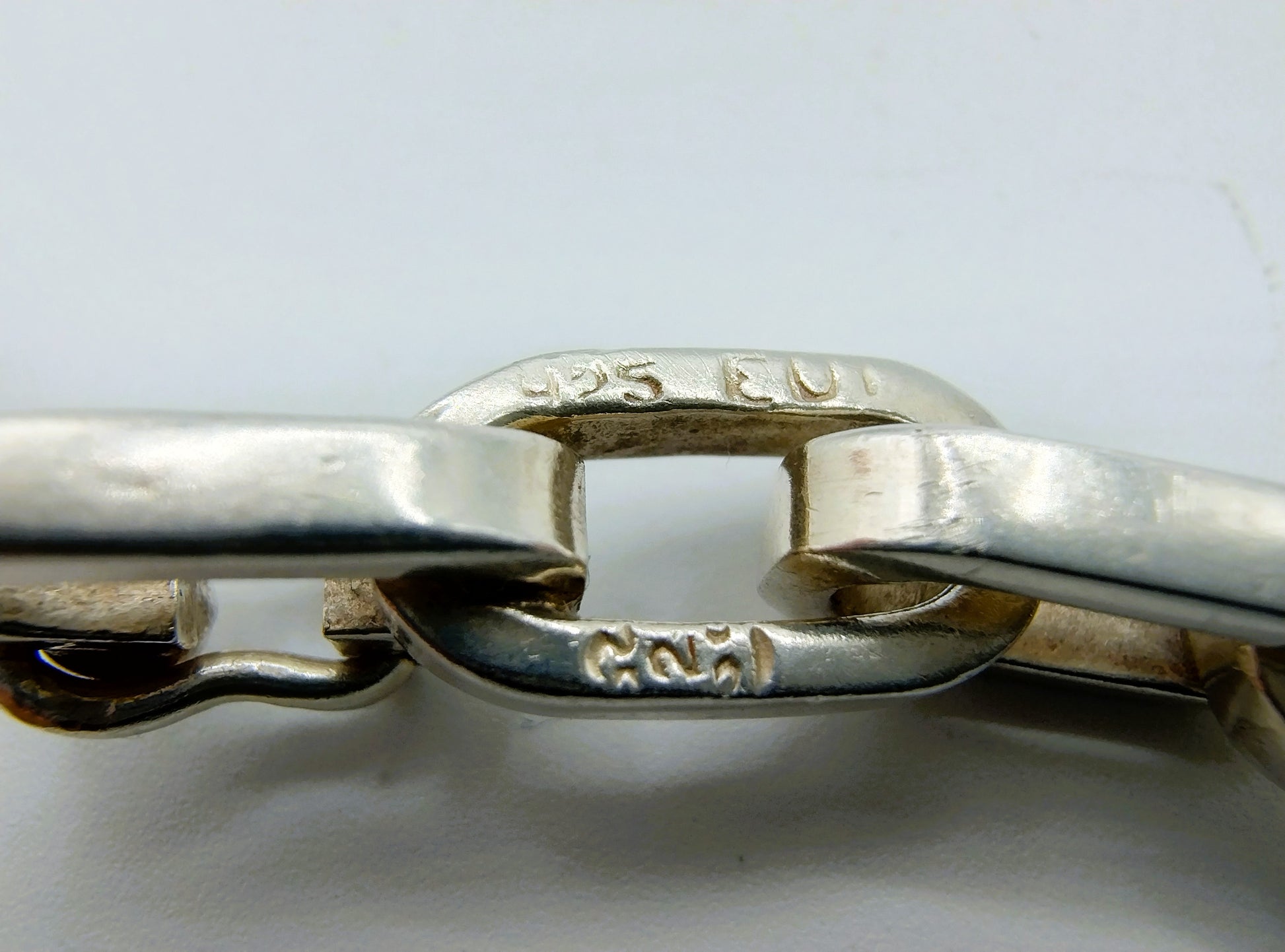 Gekennzeichnet mit 925 für Silber erster Güteklasse. Auch geprüft mit IGH-Meisterzeichen (?)
