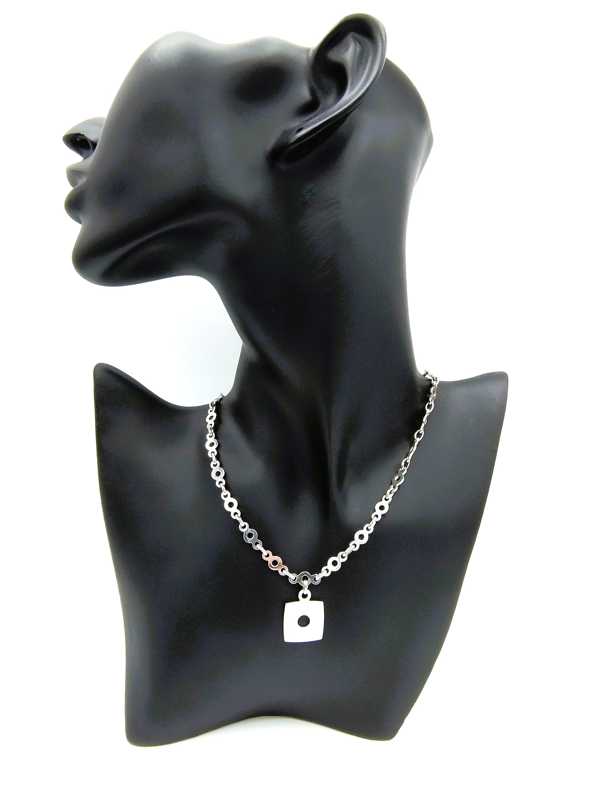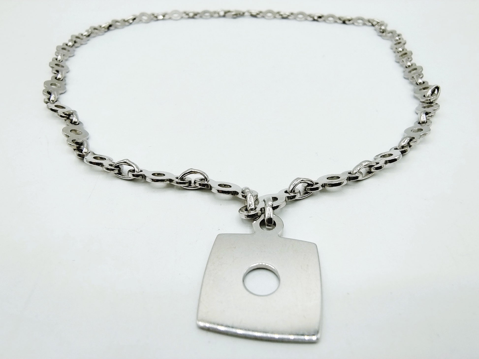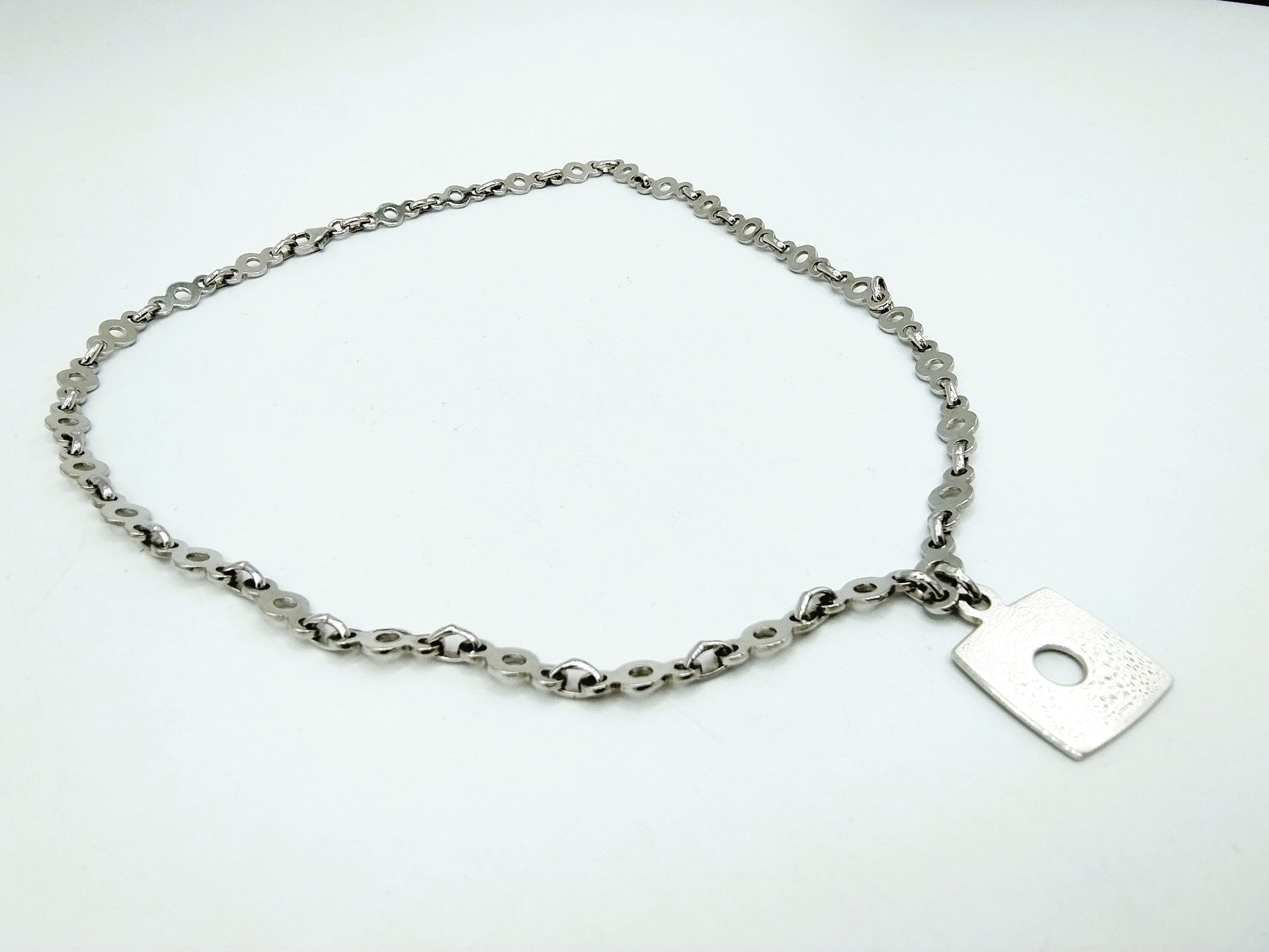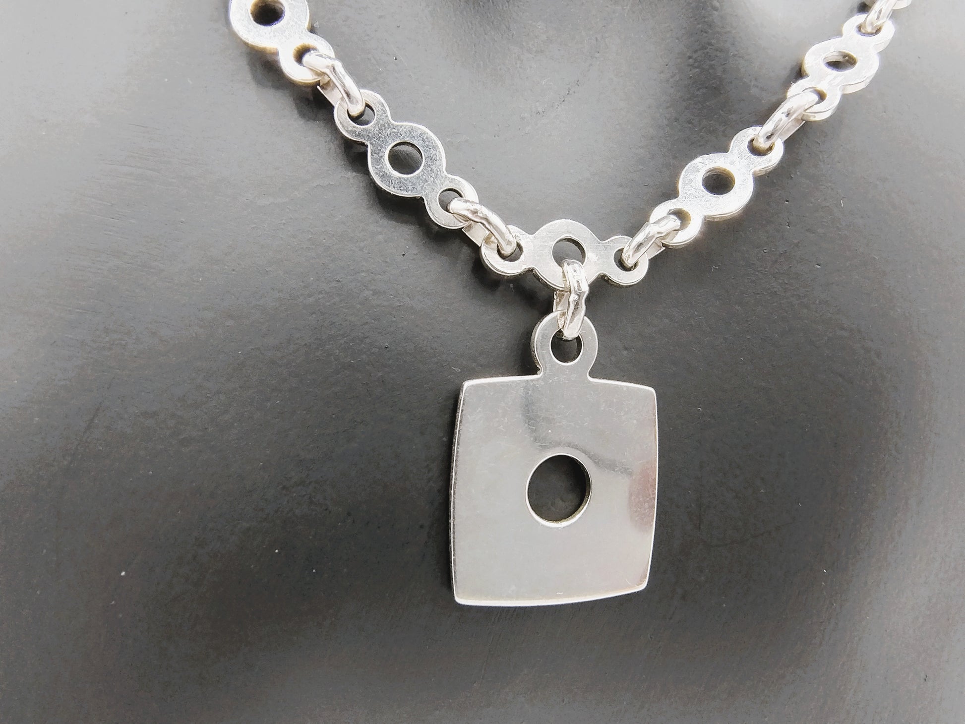 Silberne Designer-Halskette mit Anhänger. Minimalistisches Design.