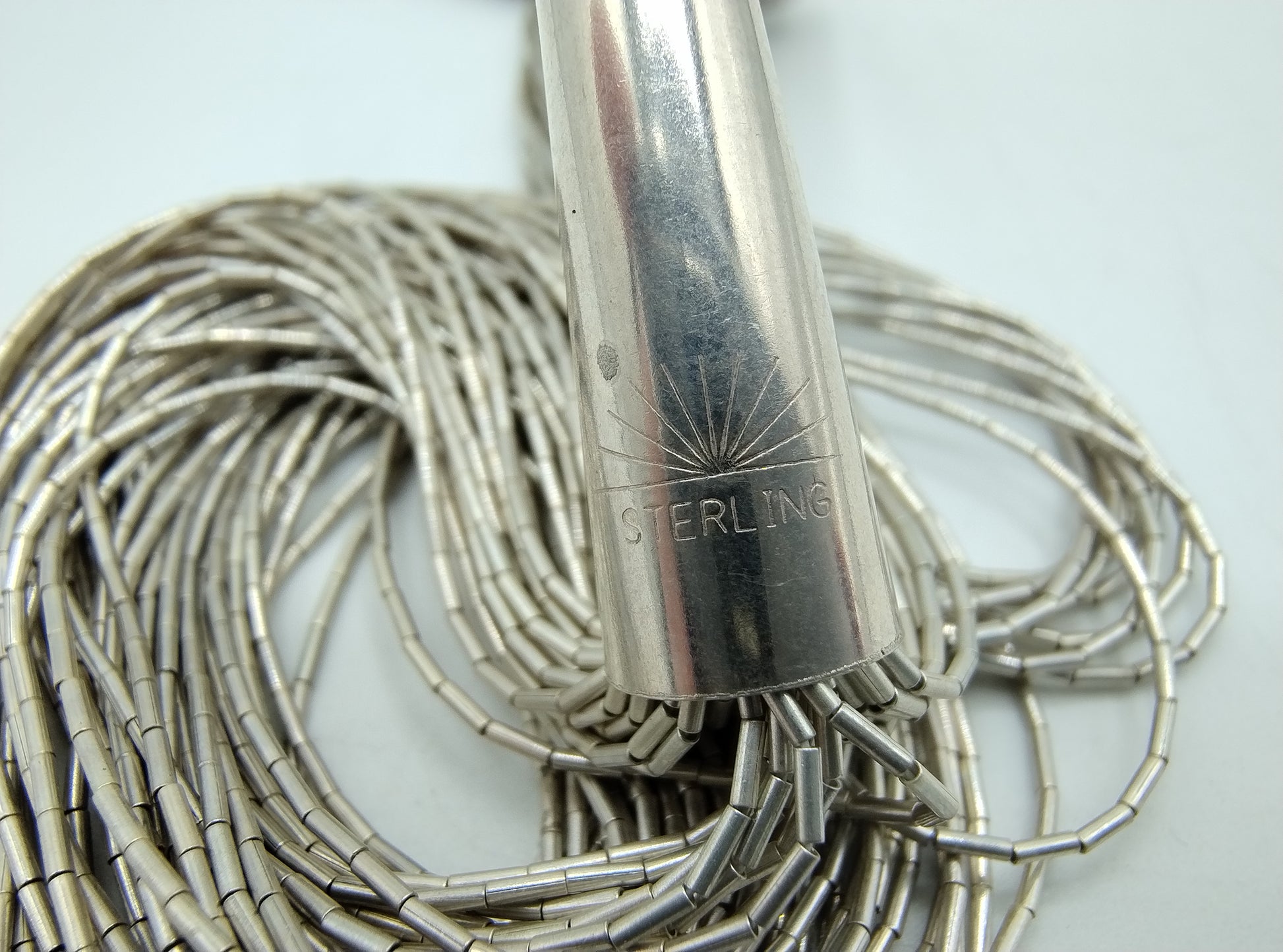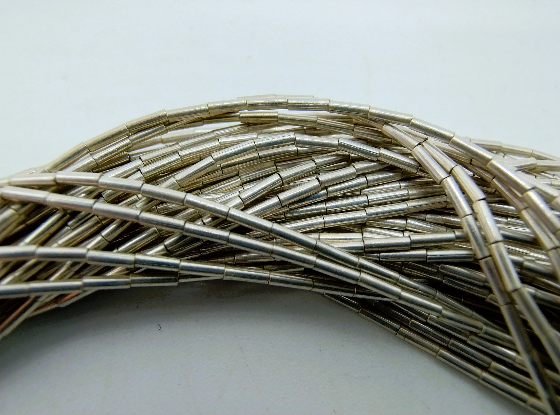 Silberne Designerkette aus 50 Strängen Silberperlen. Handgefertigt.